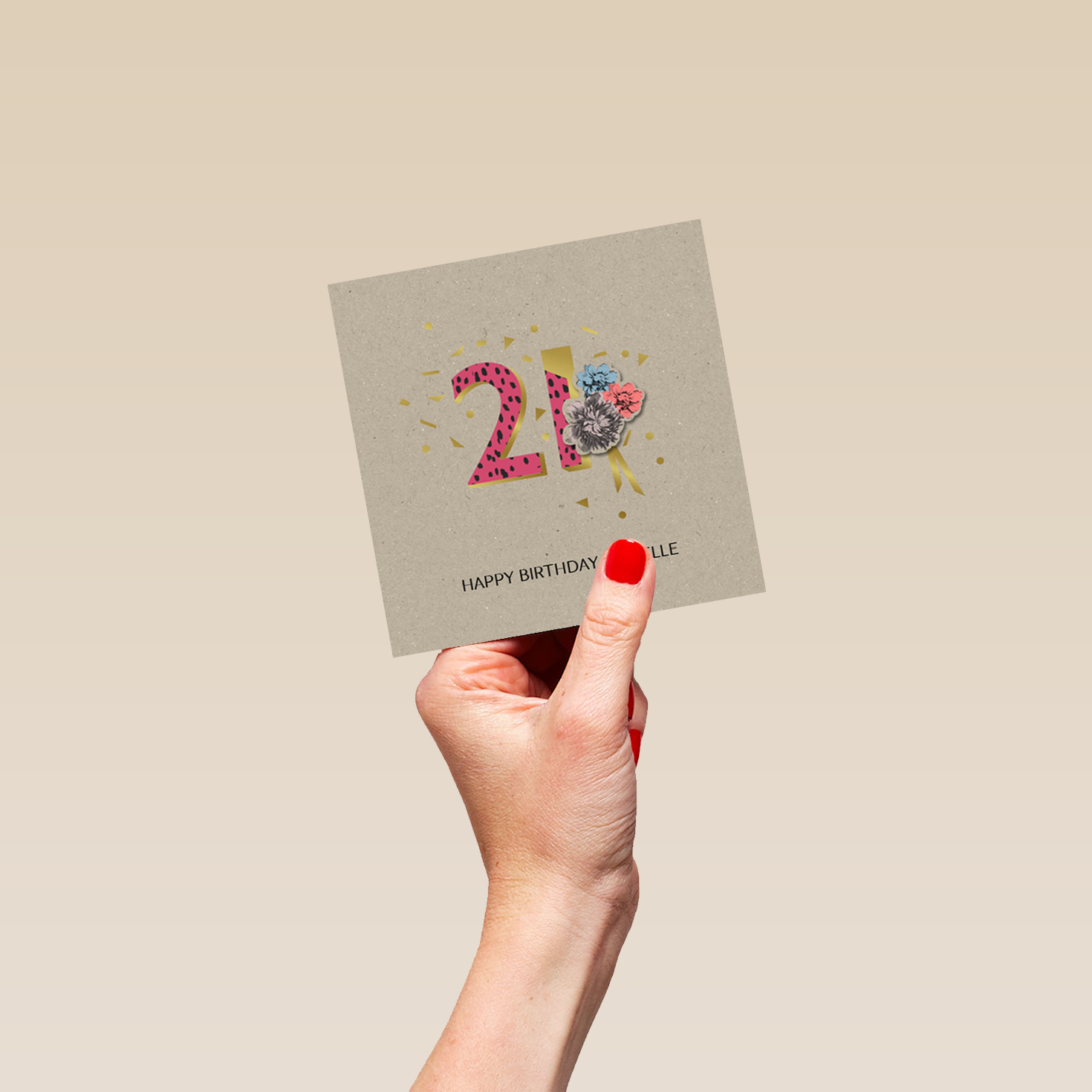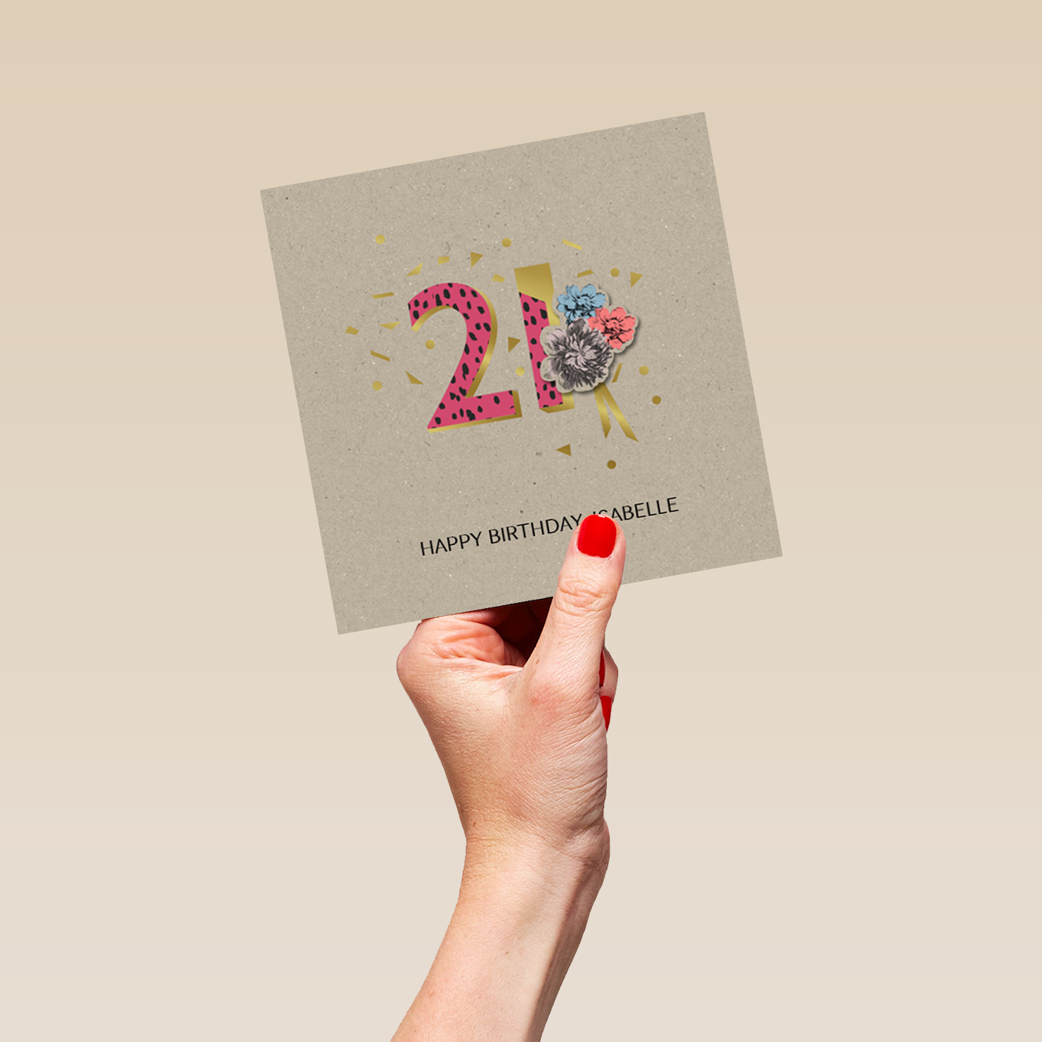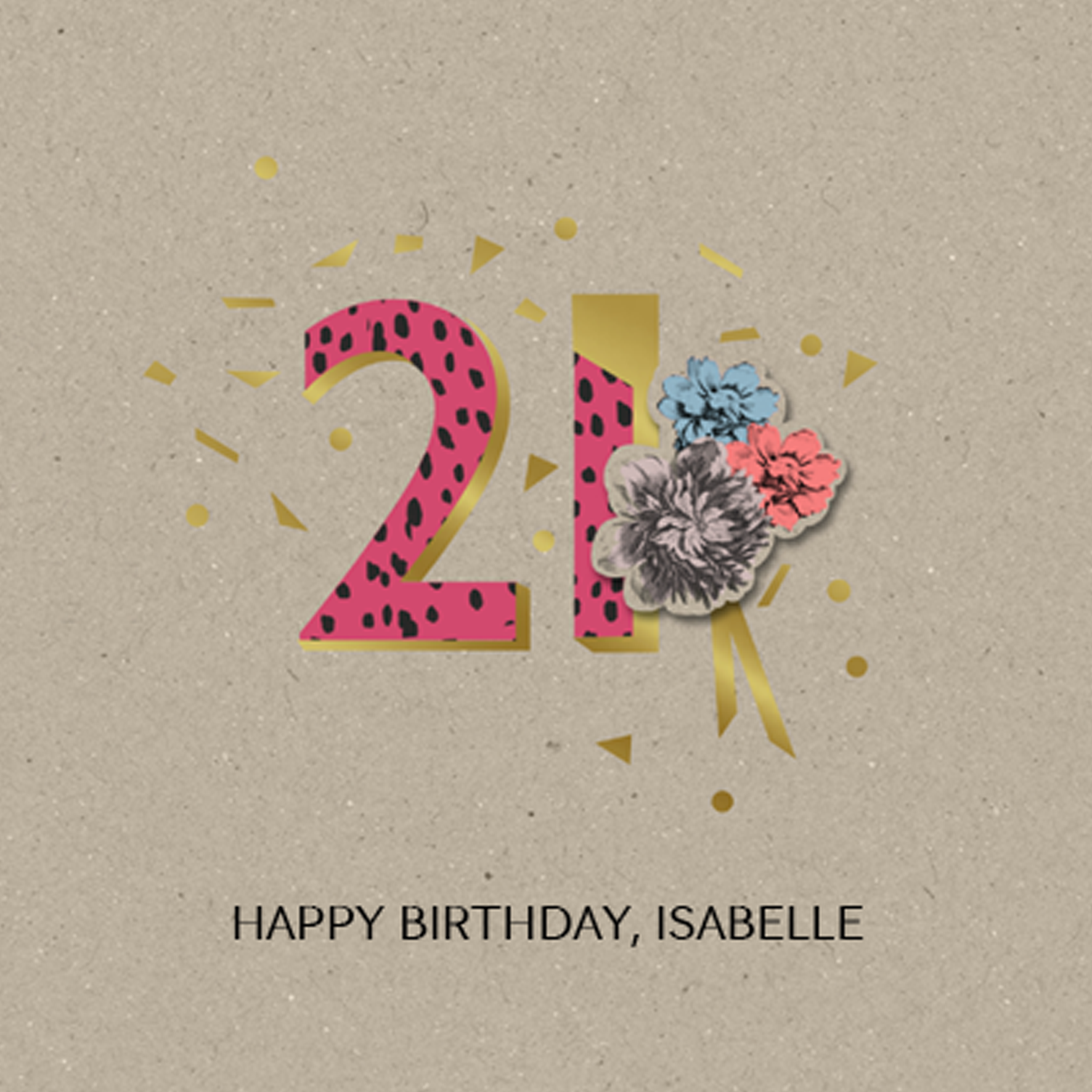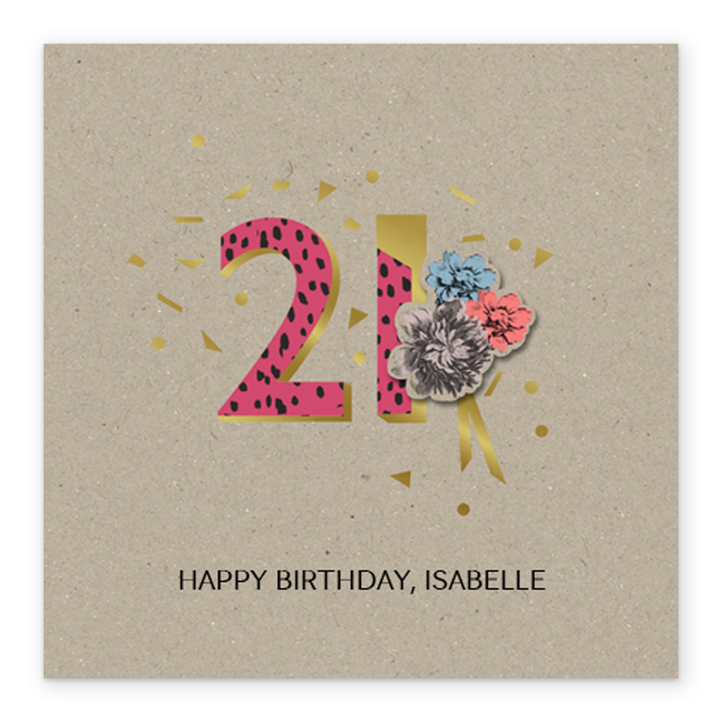 Show them you care with a personalised floral 21st birthday card from Hallmark. Our greetings cards are printed on premium quality, FSC®-certified card & delivered nationwide. Standard Card Measures: 12cm by 12cm, Large Card Measures: 15cm by 15cm.