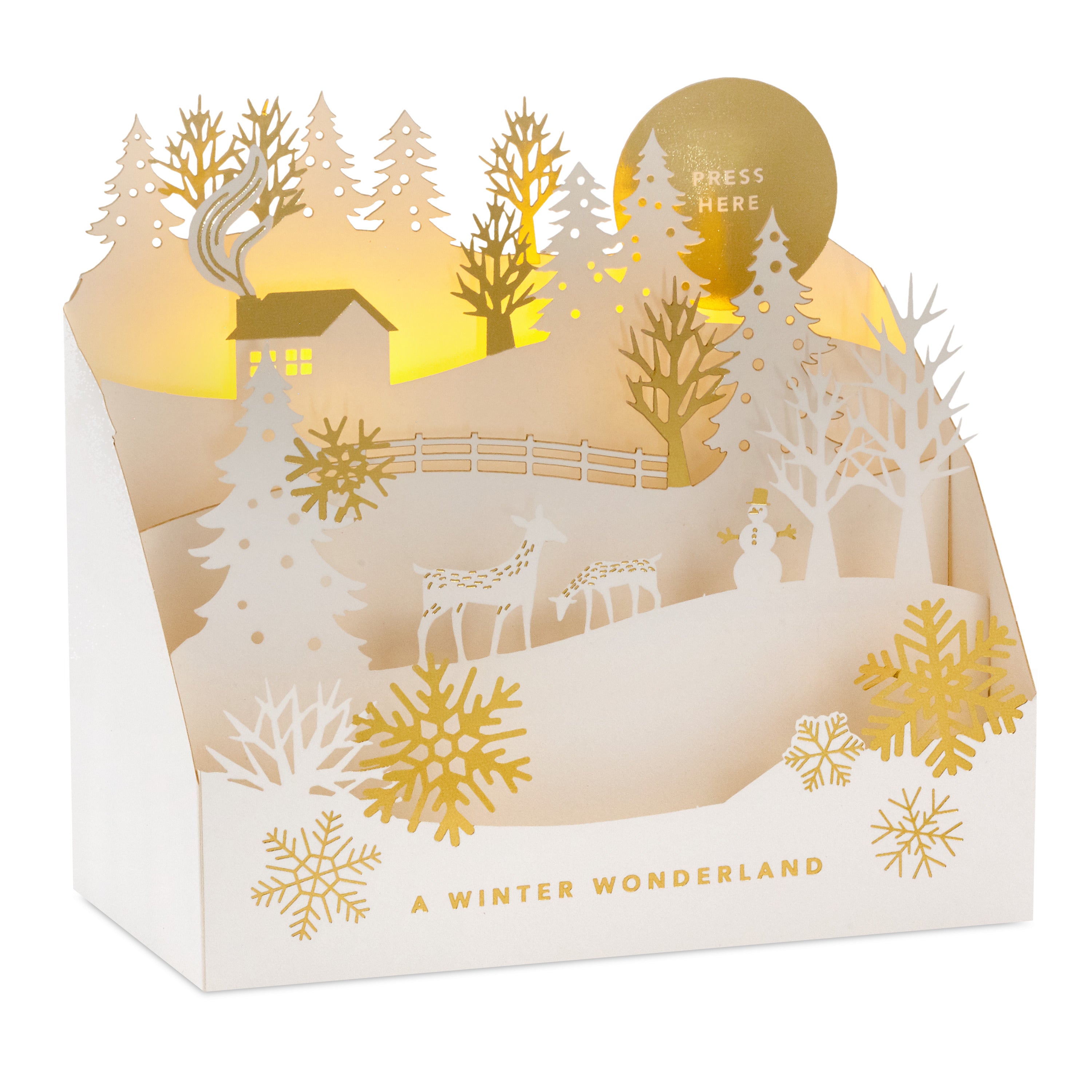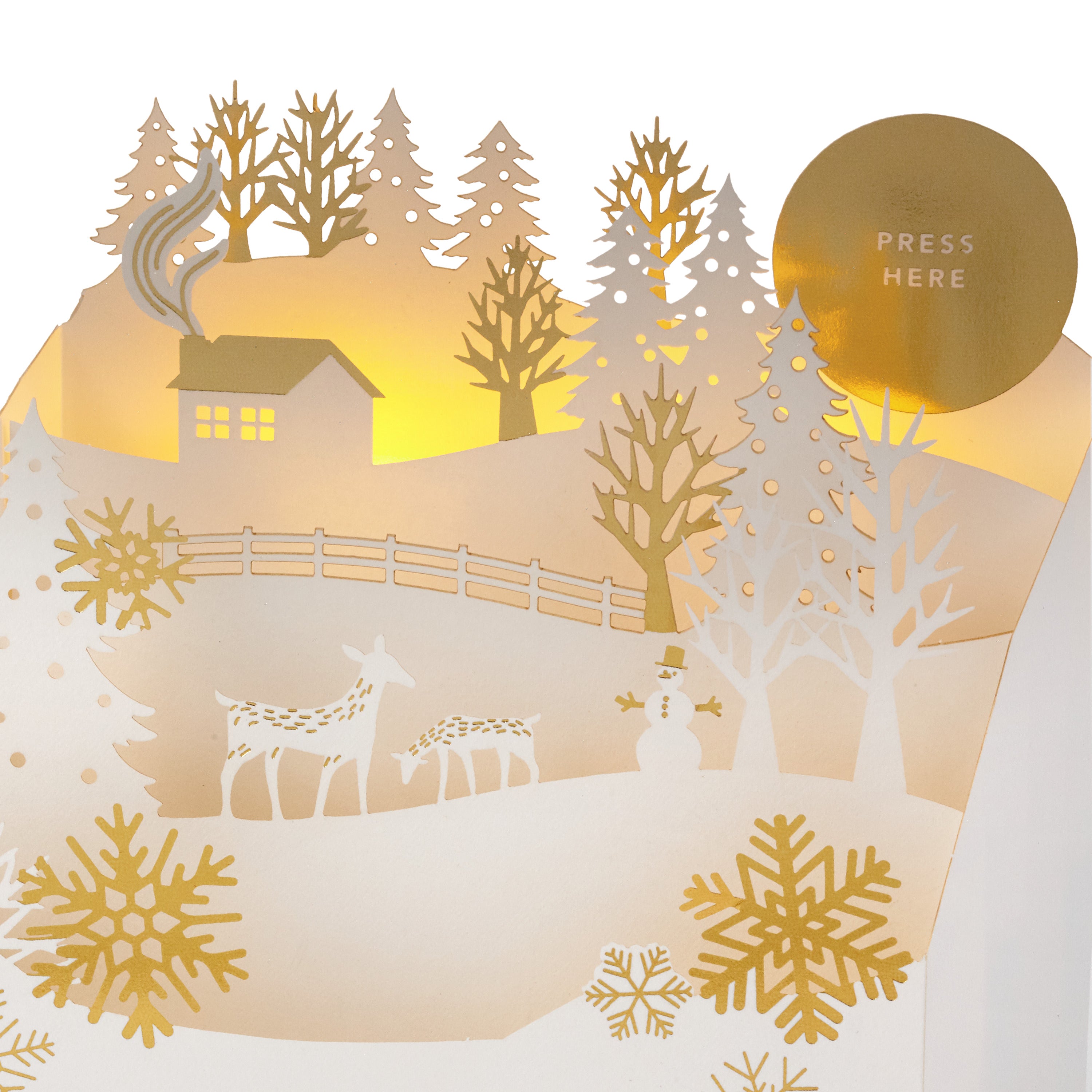 Musical Christmas Card - 3D & Pop-Up White Winter Woodland Design with Light