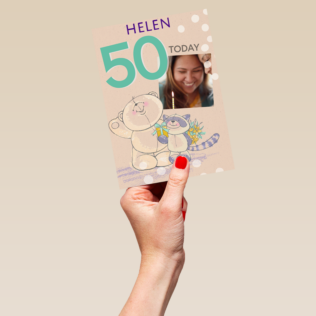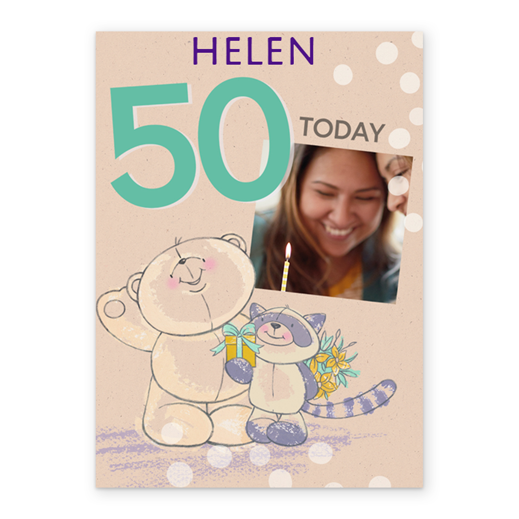 Personalised Forever Friends Bear 50th Photo Birthday Card