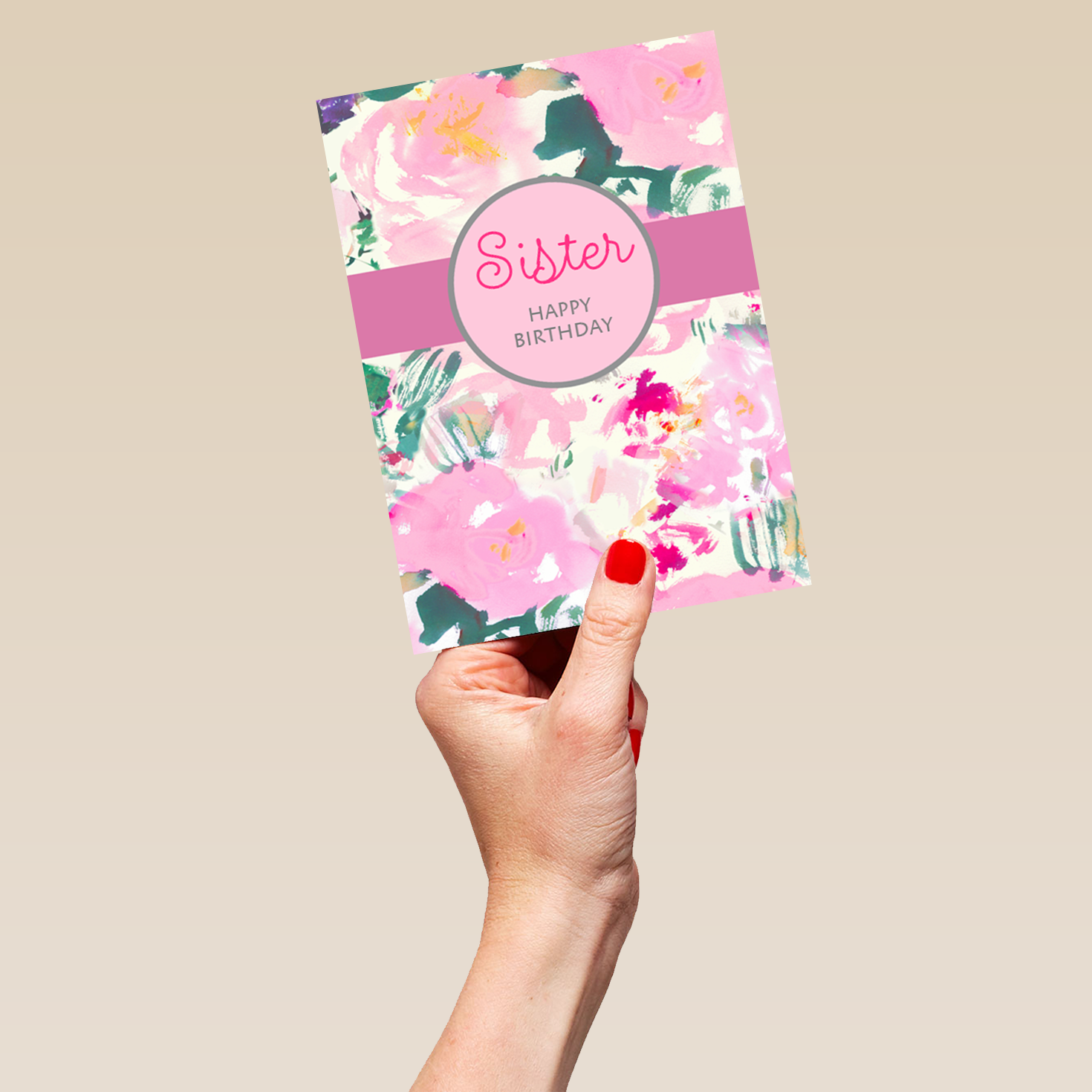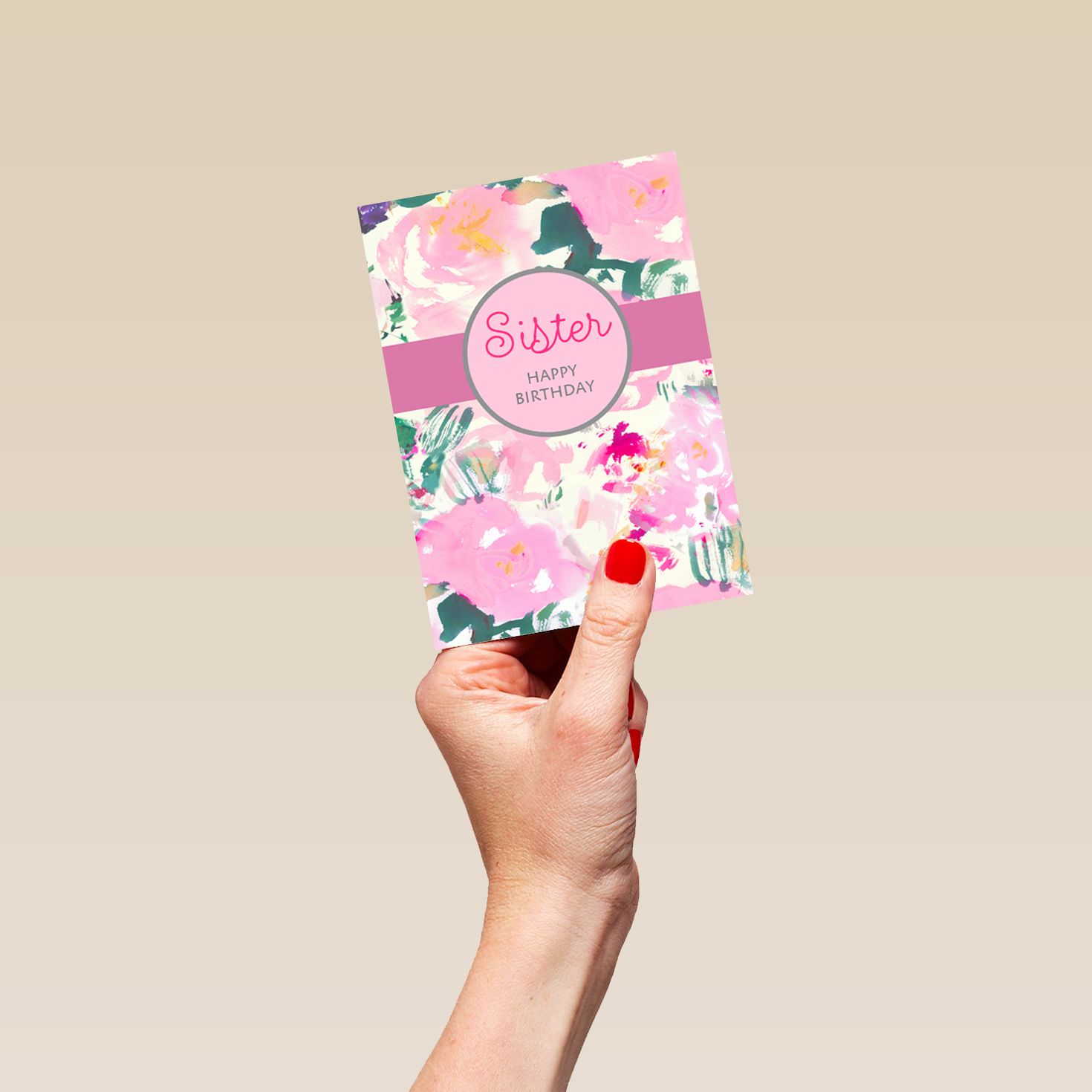 Show them you care with a personalised floral design birthday card for sister from Hallmark. Our birthday cards are printed on premium quality, FSC®-certified card & delivered nationwide. This card is available as standard 12cm by 16.7cm and large 15.5cm by 21.6cm.
