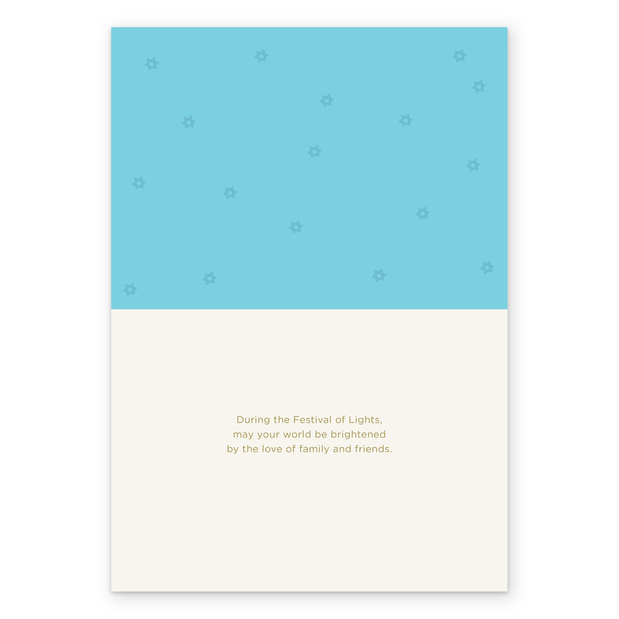 Message inside reads: During the Festival of Lights, may your world be brightened by the love of family and friends.