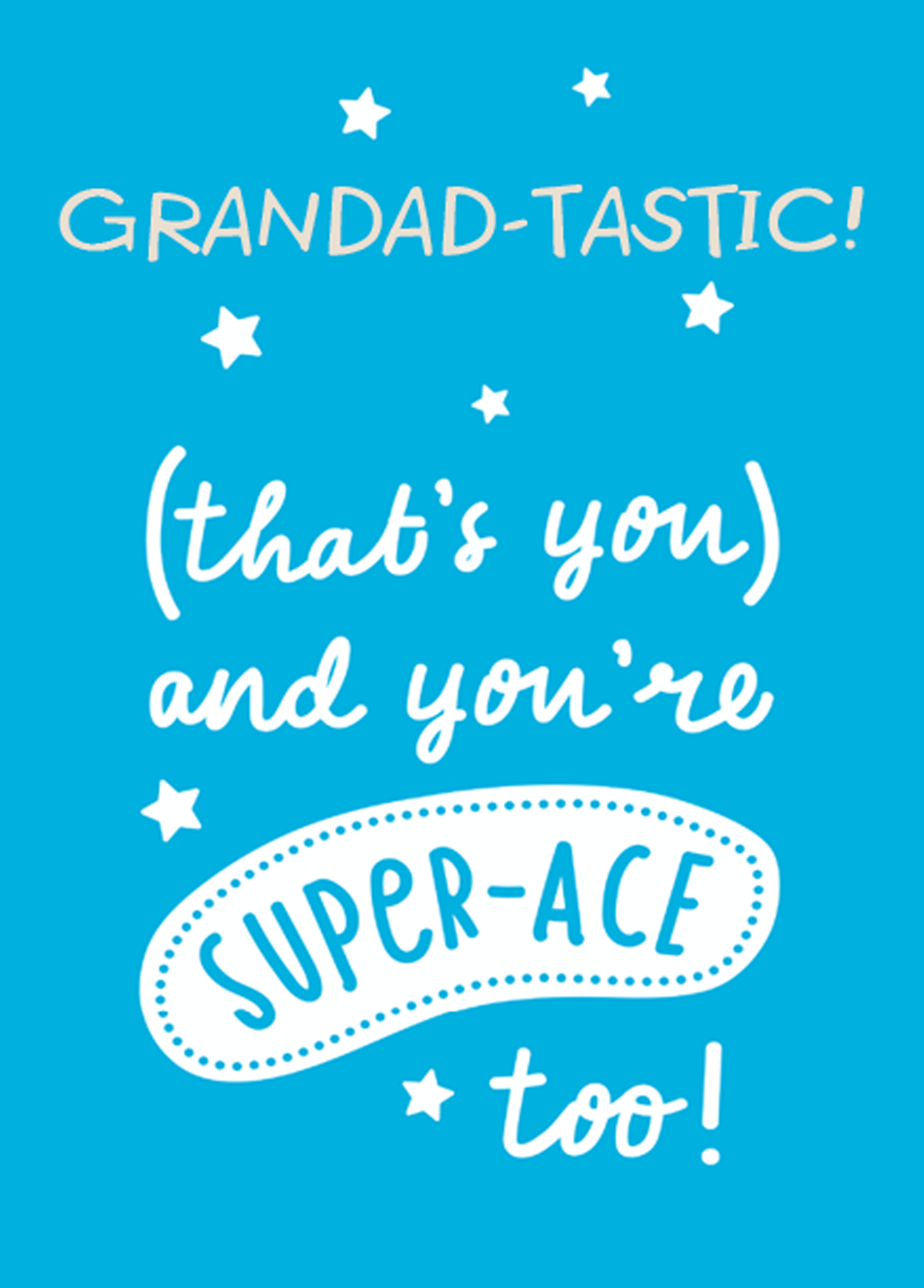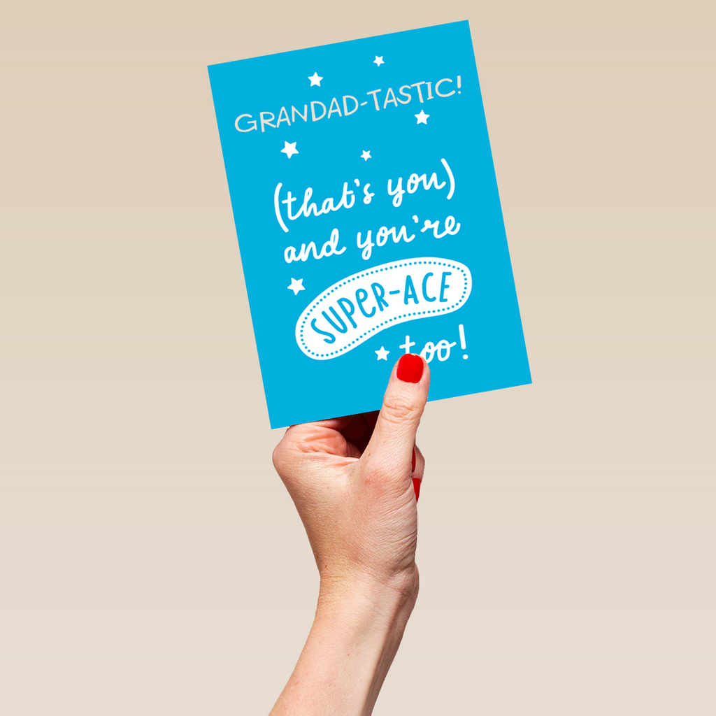 Show them you care with a personalised super ace grandad Father's Day card from Hallmark. Our Father's Day cards are printed on premium quality, FSC®-certified card & delivered nationwide.This card is available as standard 12cm by 16.7cm and large 15.5cm by 21.6cm.