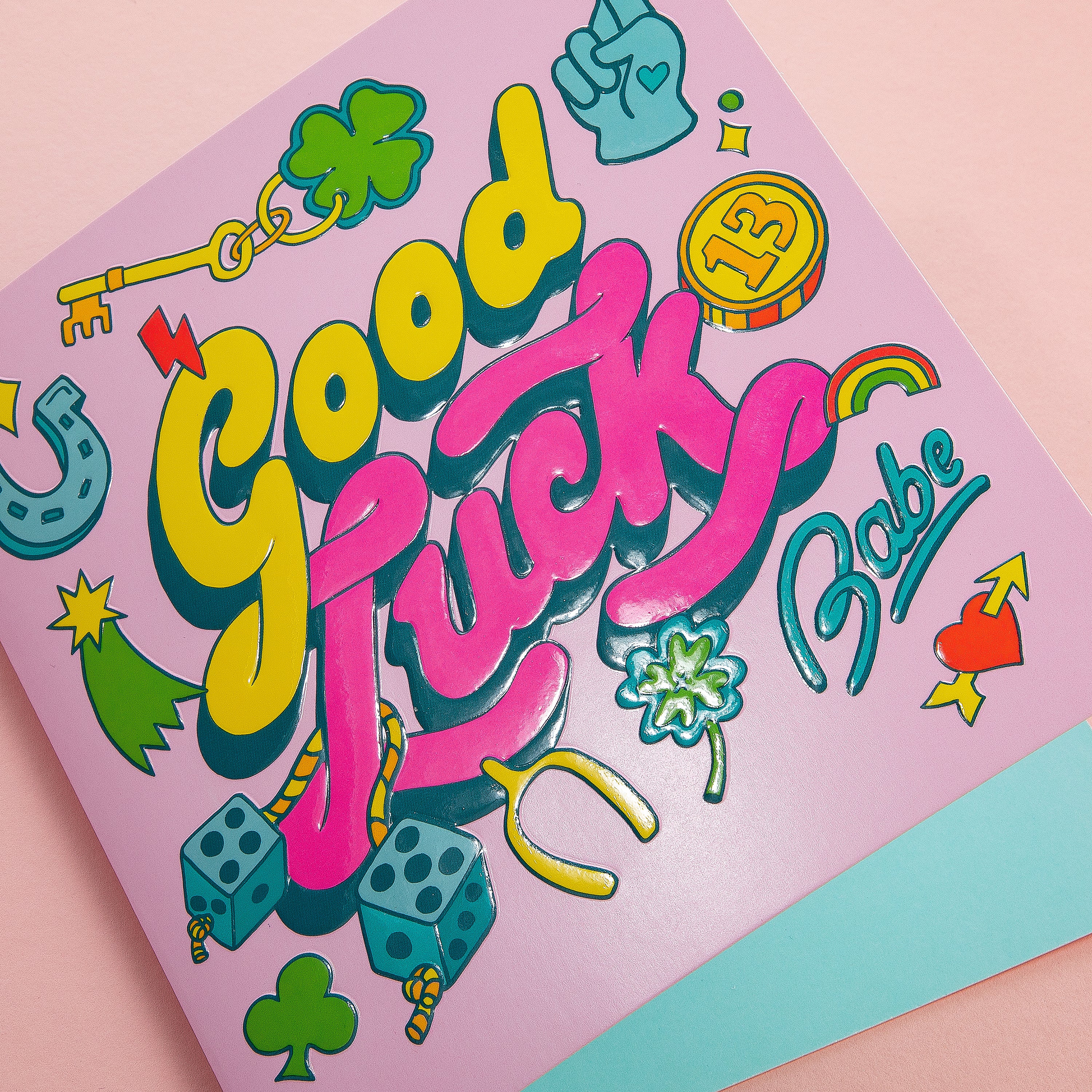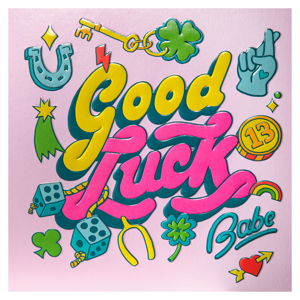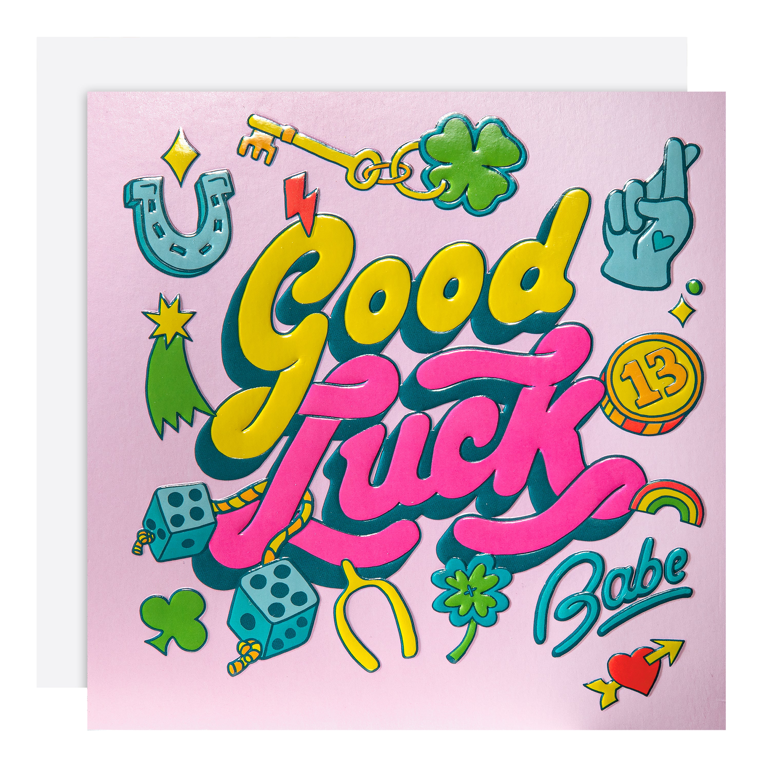 Send all the good vibes and loads of luck wherever they're needed, with this vibrant and fun good luck card from the exclusive Liz Harry collection.