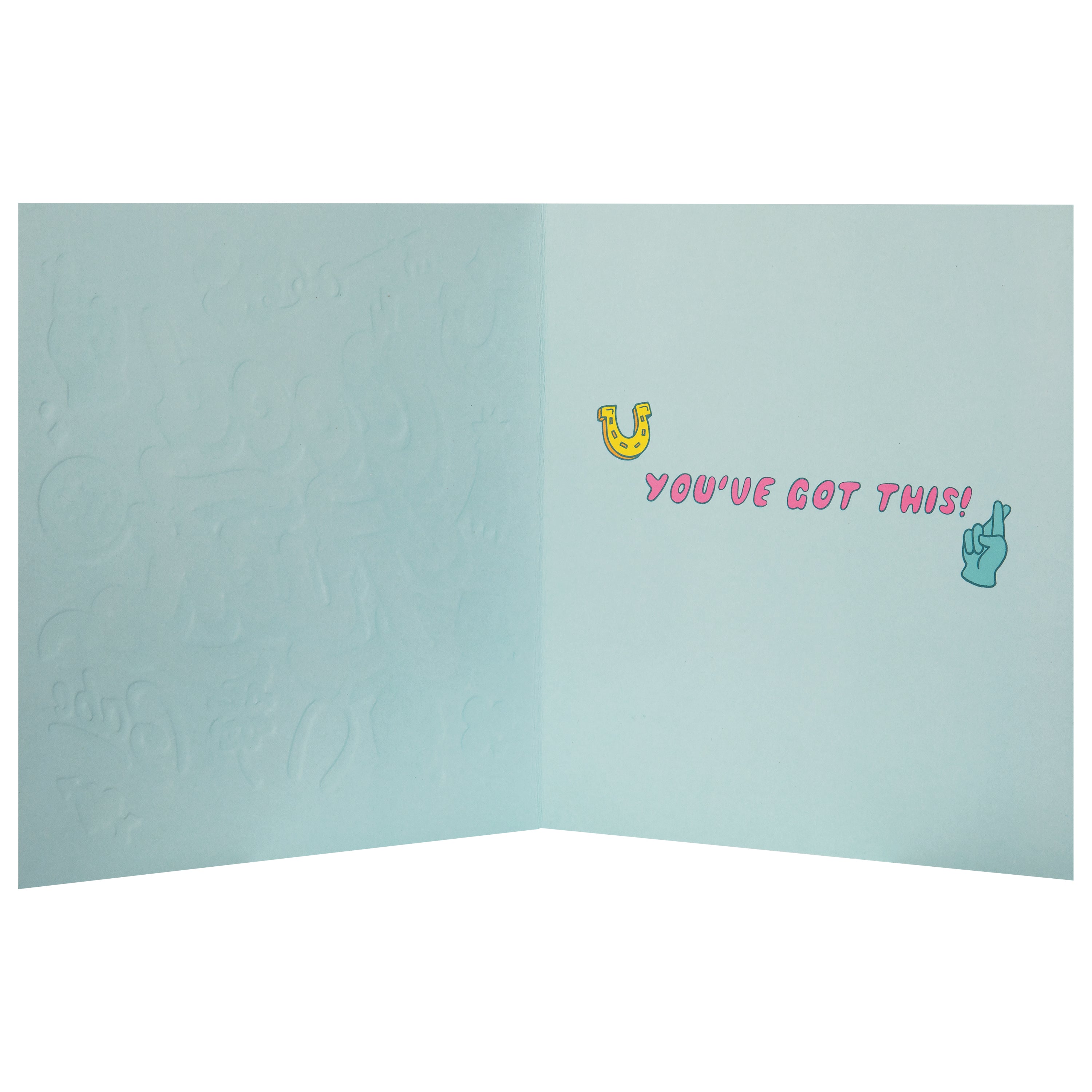 Featuring eye-catching neon inks, embossed elements and clear highlights paired with a fun and uplifting message, this card is a great way to let someone know you've got everything crossed for them.