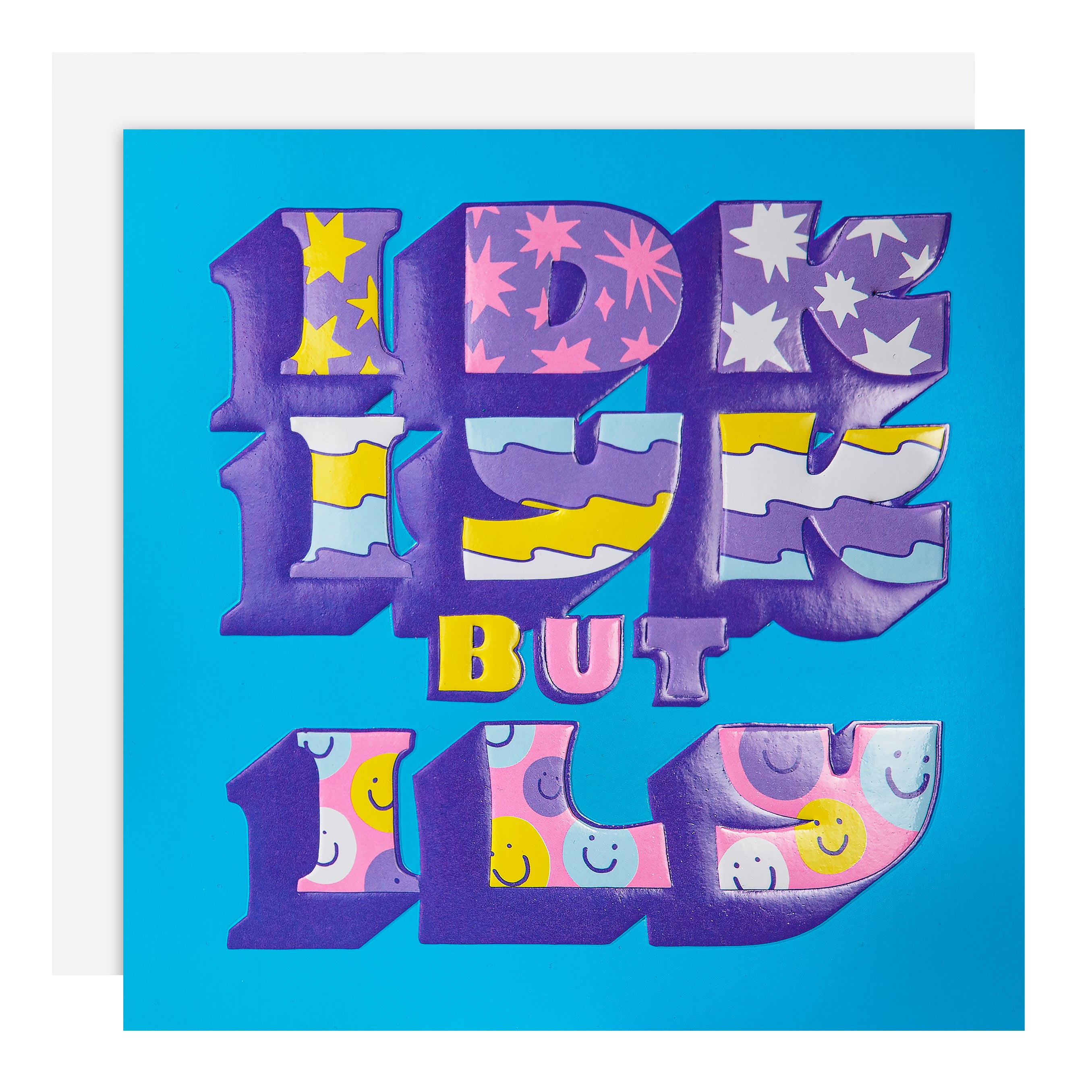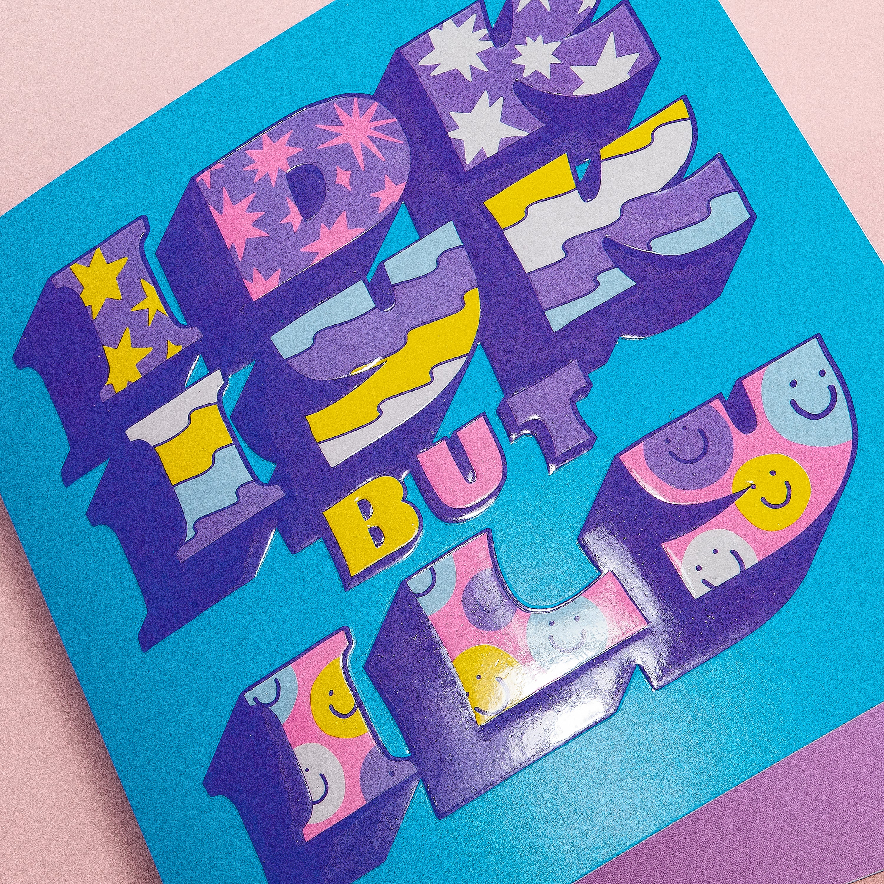 Make sure they know you love them, on any day of the year, with this colourful and fun text-led multi-occasion card from the exclusive Liz Harry collection.