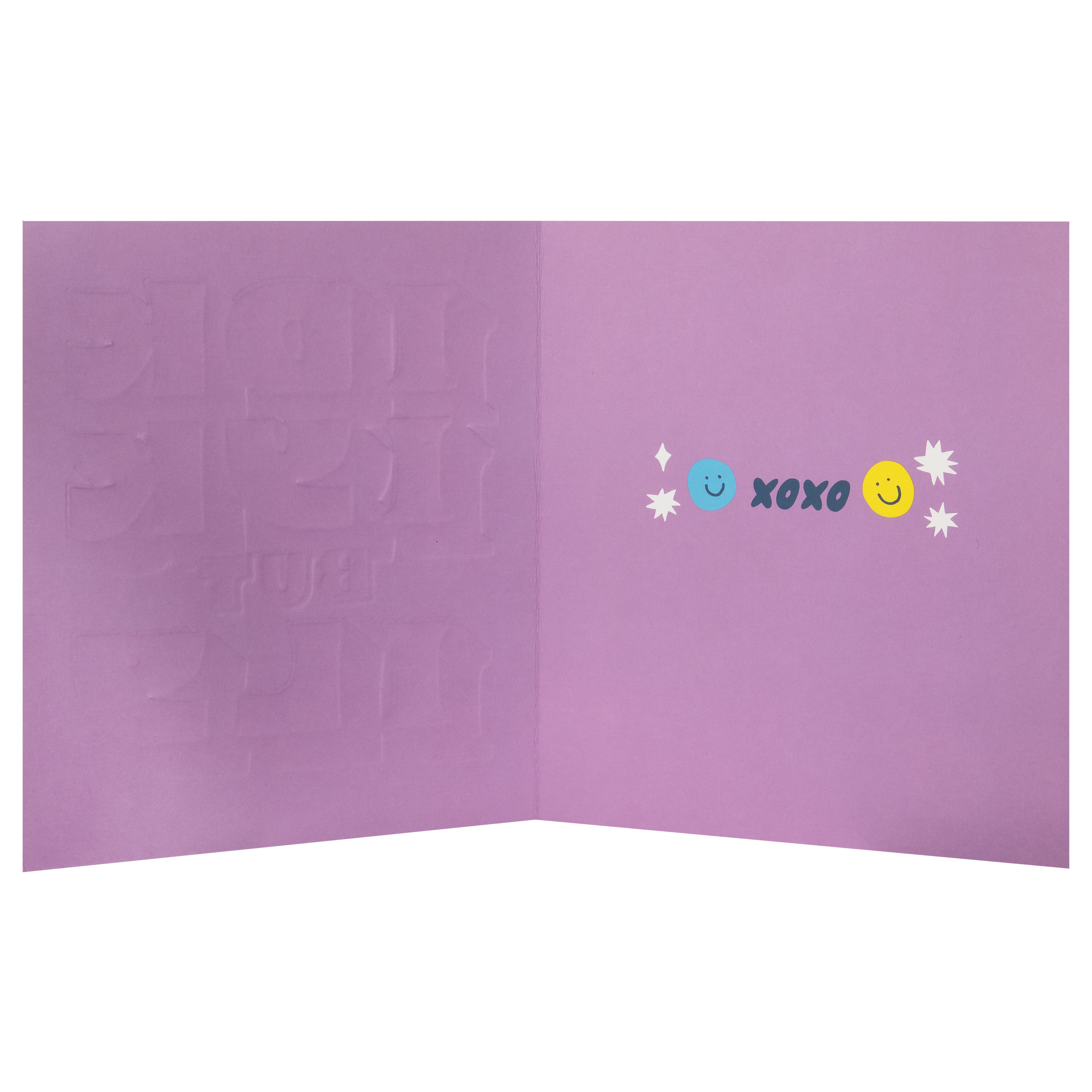 Featuring eye-catching neon inks, embossed elements and clear highlights paired with a fun celebratory message this card is a fun way to make certain that they know how they feel.