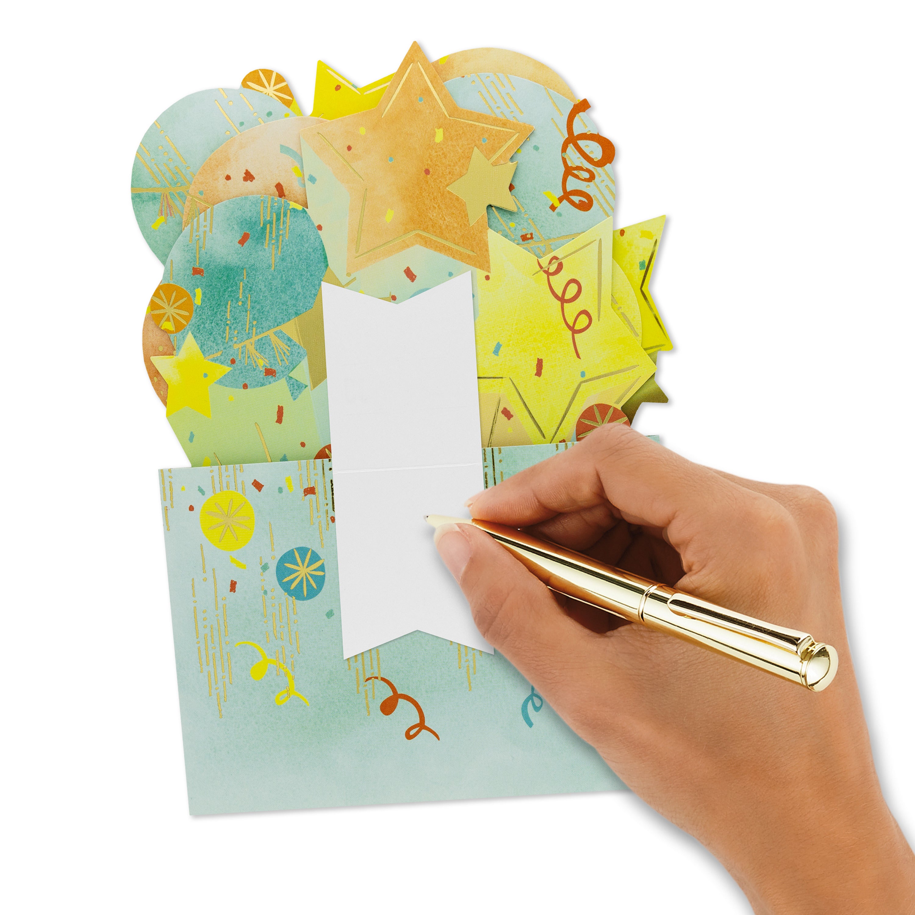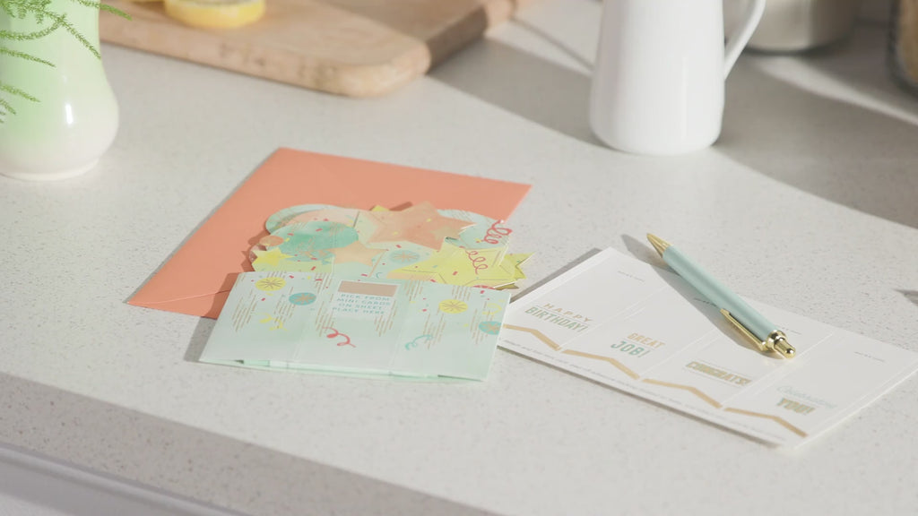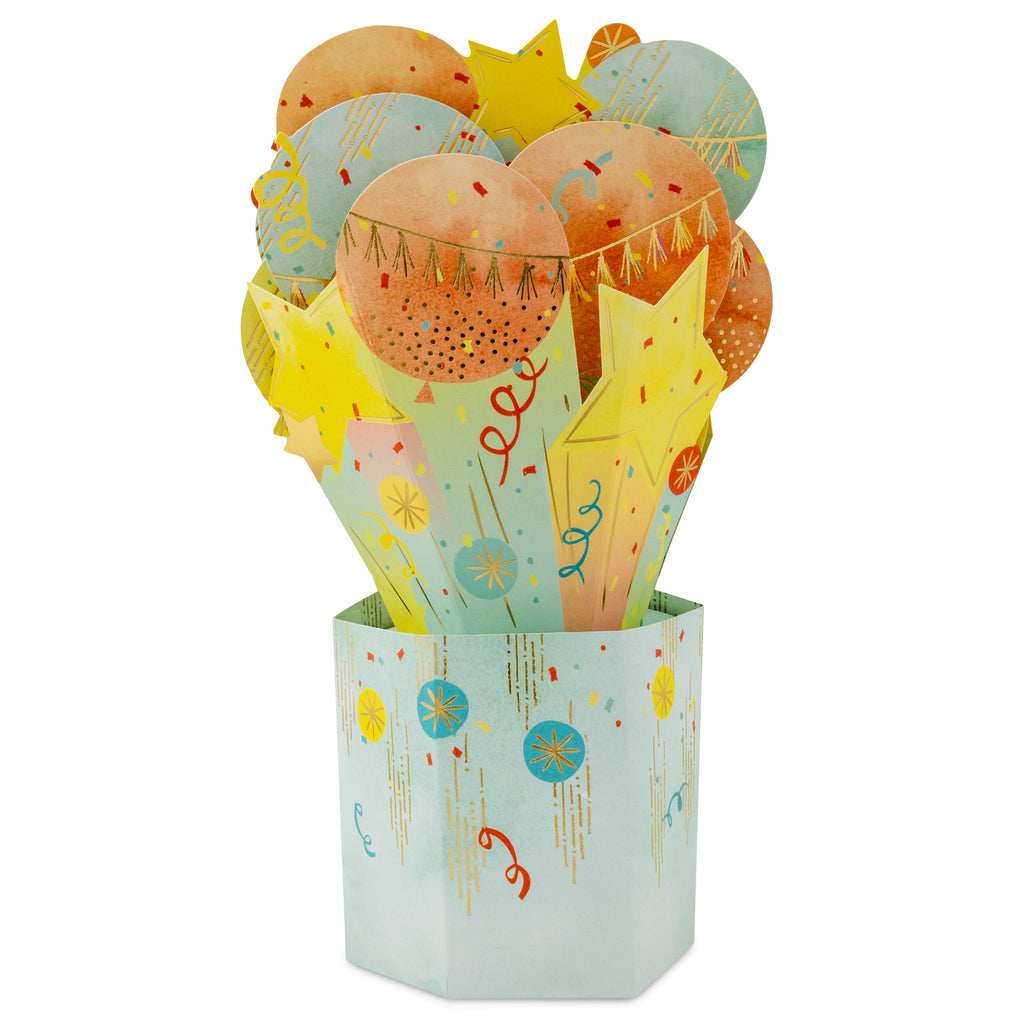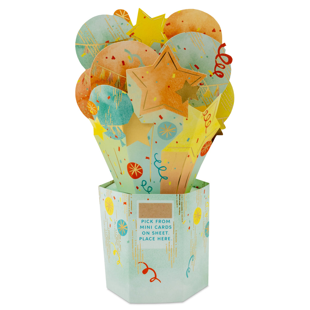 Celebrating happy news, a big success, a birthday or simply someone amazing, this fantastic 3D pop-up Paper Wonder celebration card is a brilliant and customisable way to make their day even more special. With its eye-catching die-cut 3D balloons design and clever pop-up mechanic, it's a great way to join in with the celebrations, and the customisable caption stickers mean it's a super-handy secret weapon to have in your card stash too!