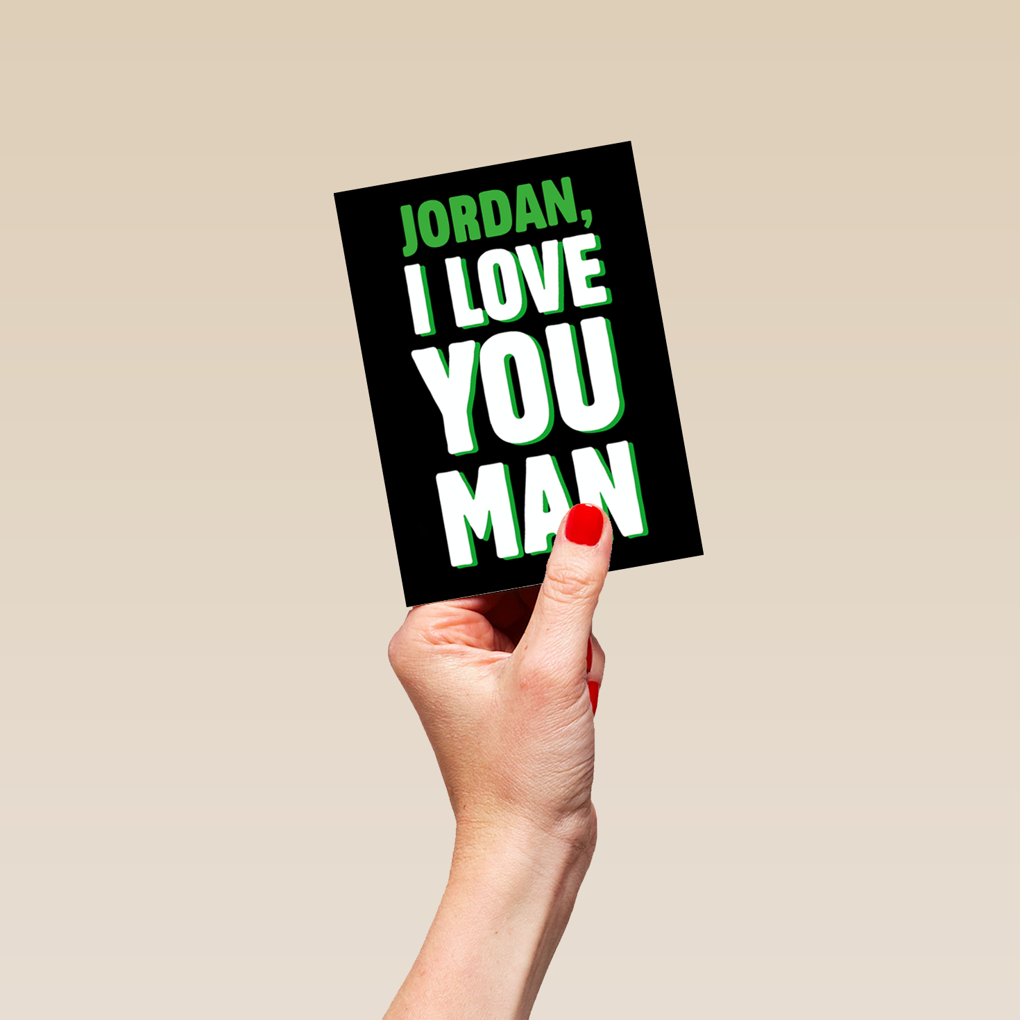 Show them you care with a personalised Andy's Man Club card from Hallmark. Our greetings cards are printed on premium quality, FSC®-certified card & delivered nationwide. This card is available as standard 12cm by 16.7cm and large 15.5cm by 21.6cm.