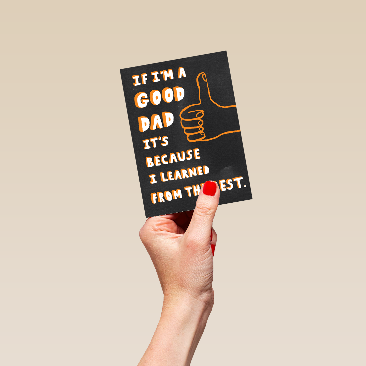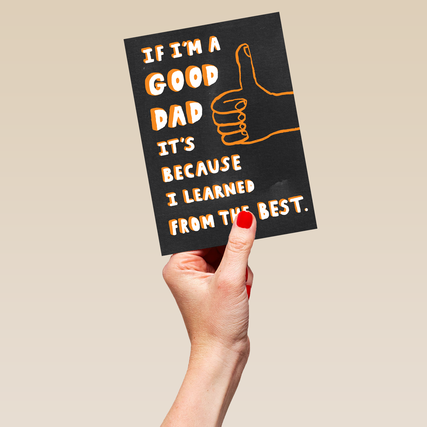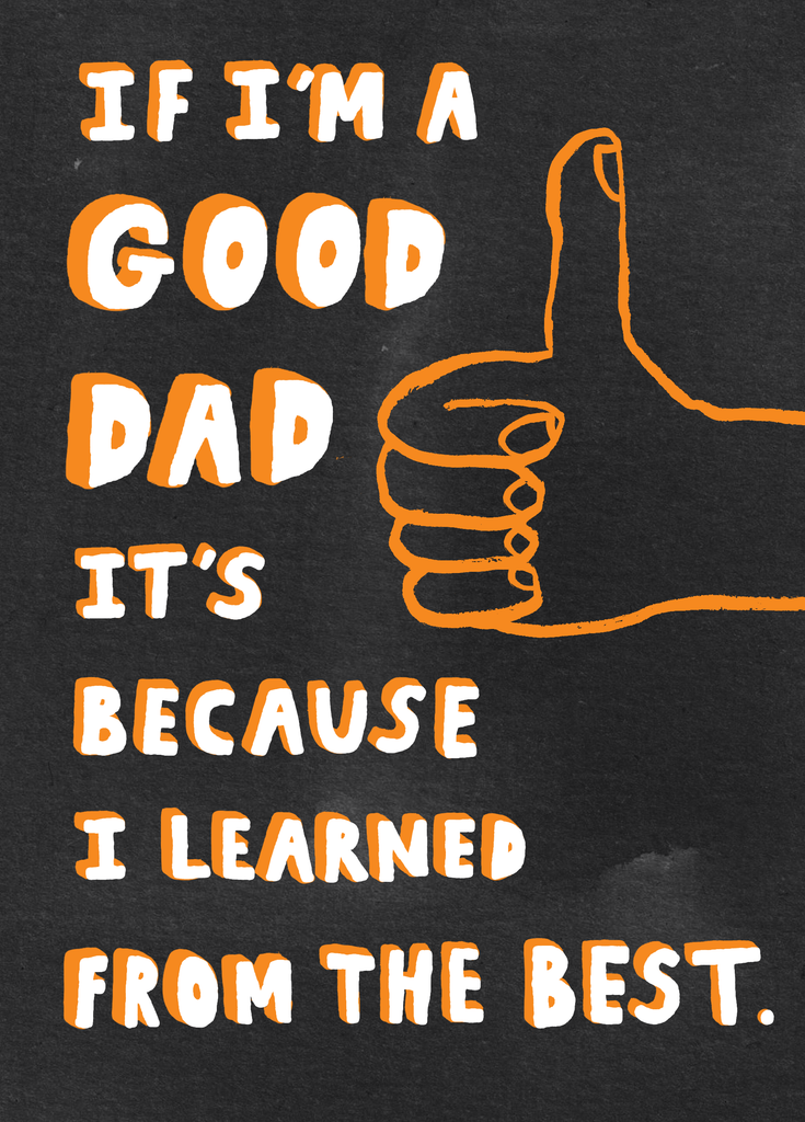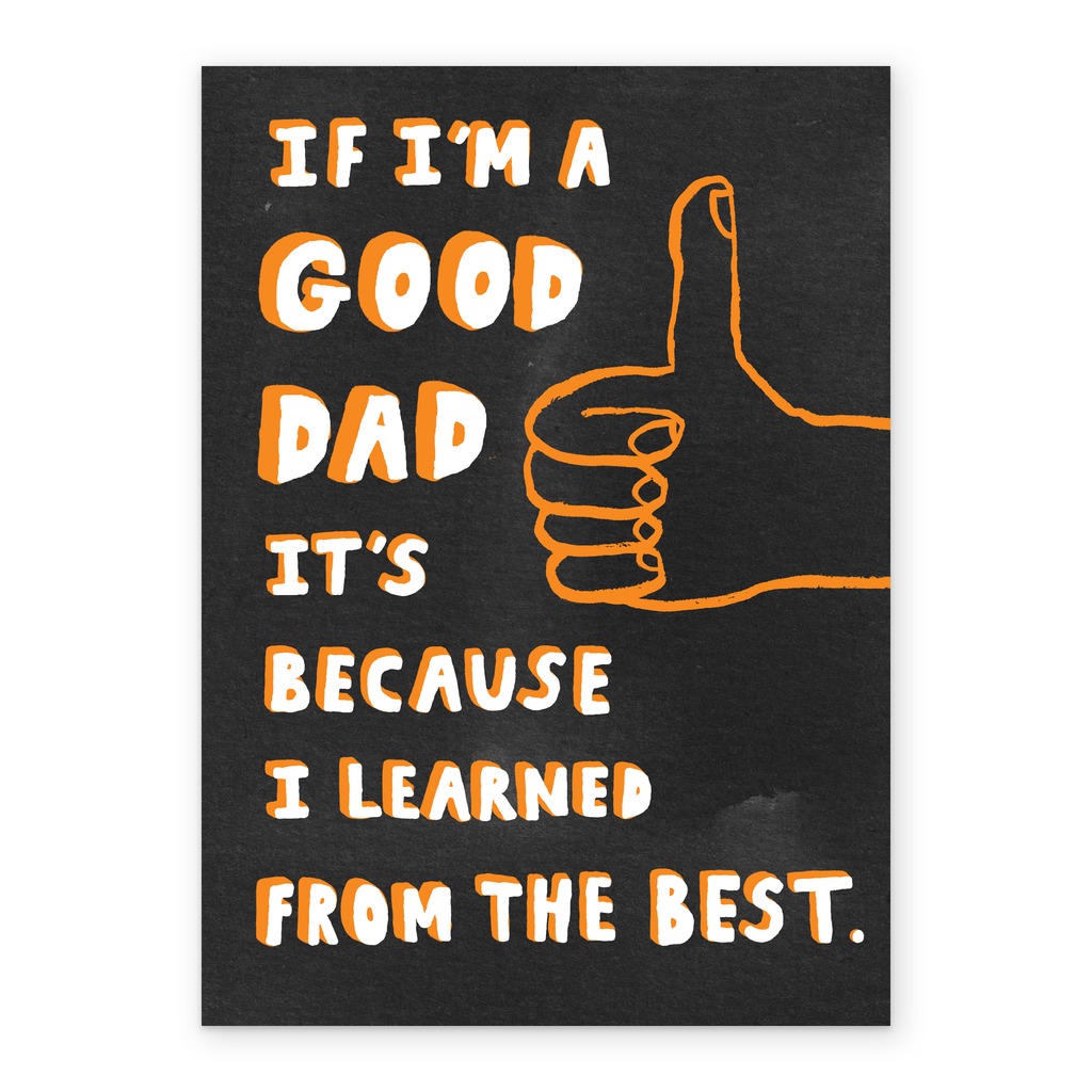 Printed on premium-quality board, this card features a big thumbs up illustration, with the message 'If I'm a good dad, it's because I learned from the best', and comes complete with a co-ordinating white envelope.