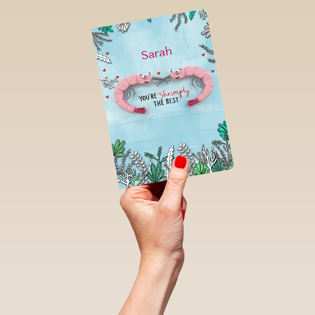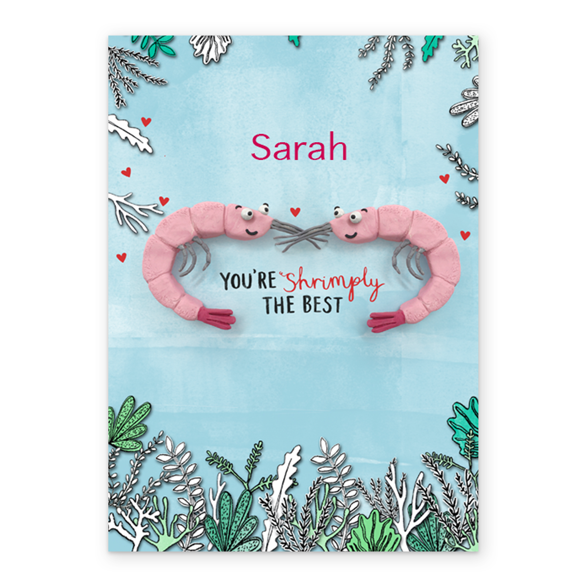 Show them you care with a personalised wife cute shrimp card from Hallmark. Our wife cards are printed on premium quality, FSC®-certified card & delivered nationwide. This card is available as standard 12cm by 16.7cm and large 15.5cm by 21.6cm.