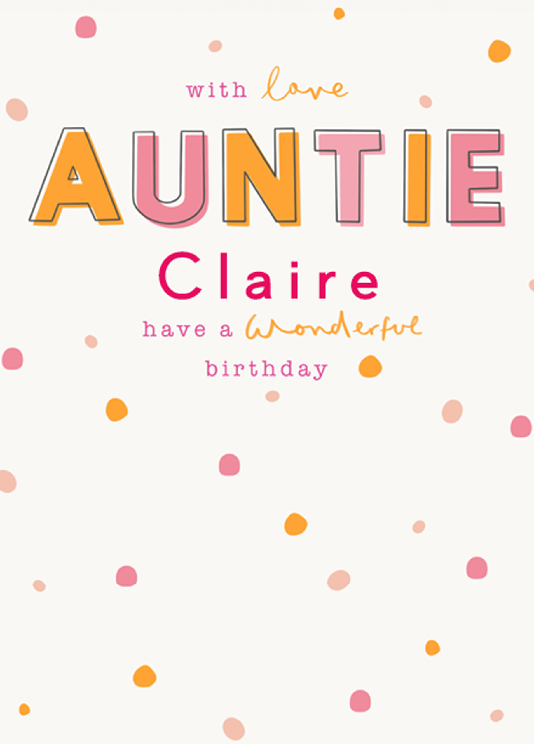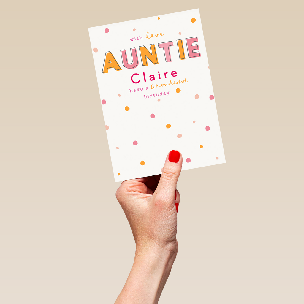 Personalised Contemporary Dotty Birthday Card for Auntie