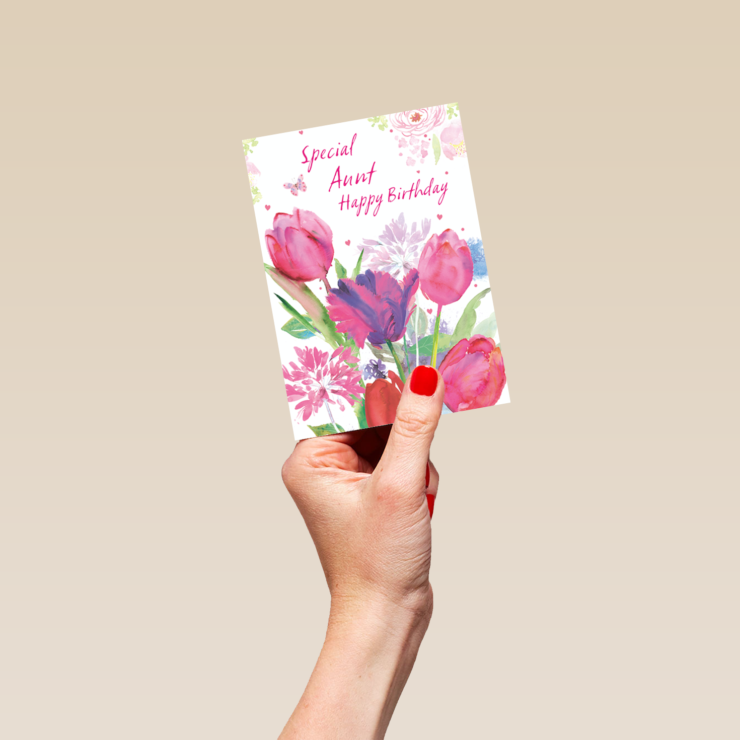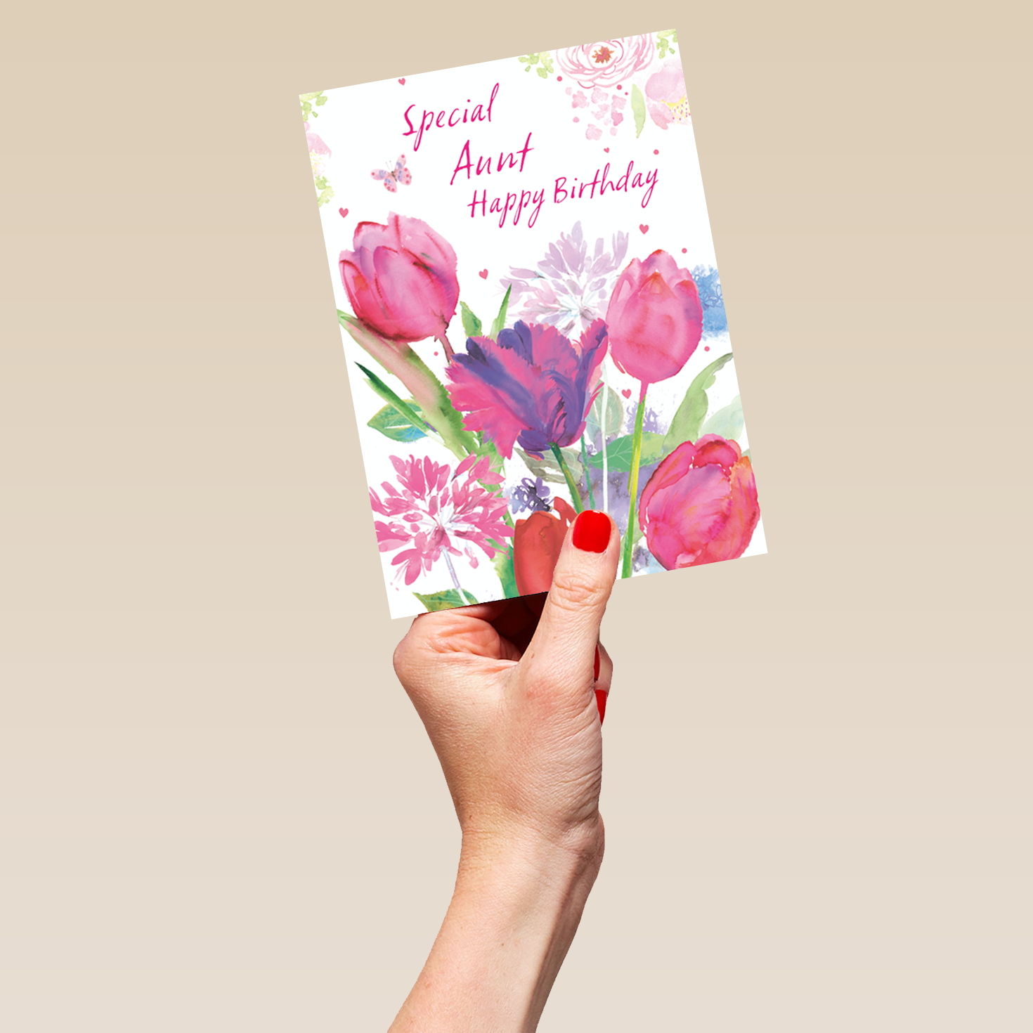 Personalised For Aunt Editable Traditional Tulips Birthday Card