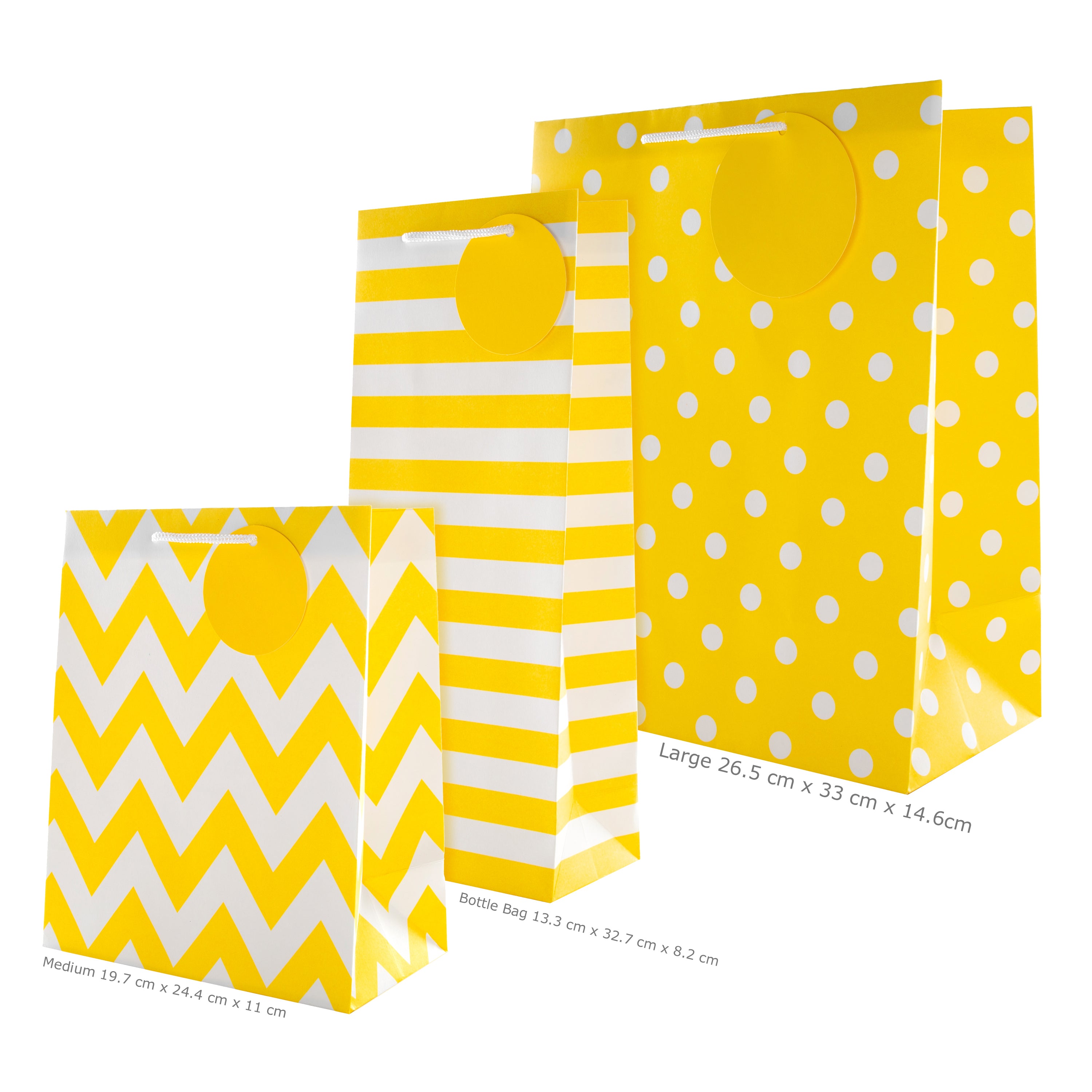 Any Occasion Gift Bag Pack - 3 Bags in 3 Yellow Patterned Designs
