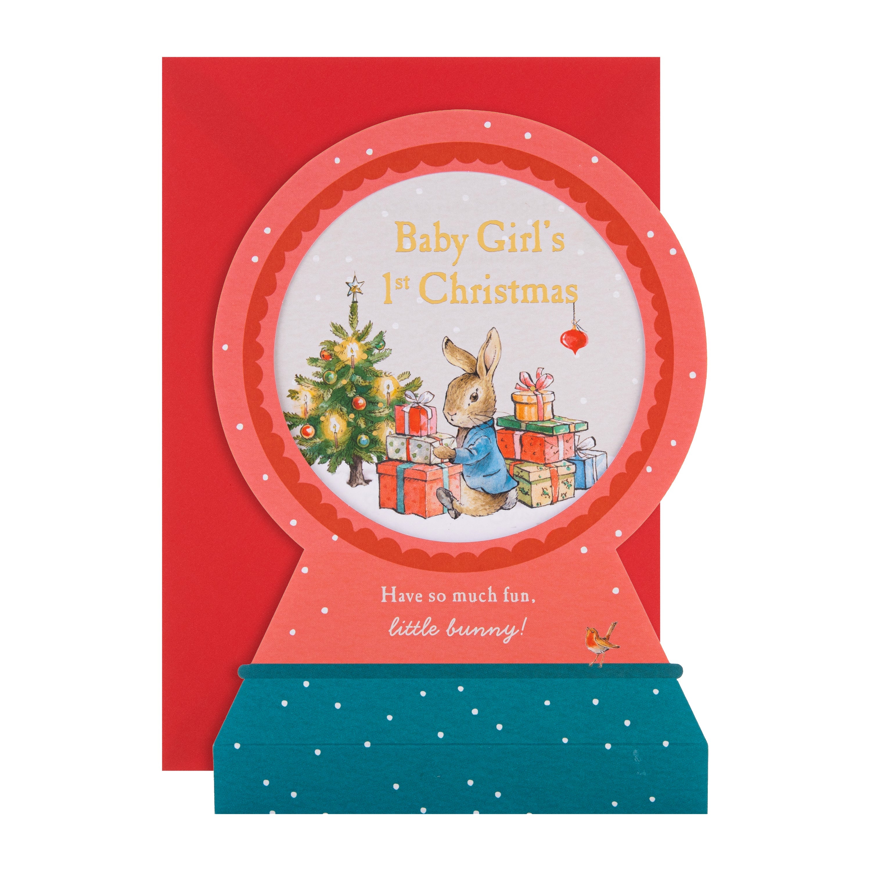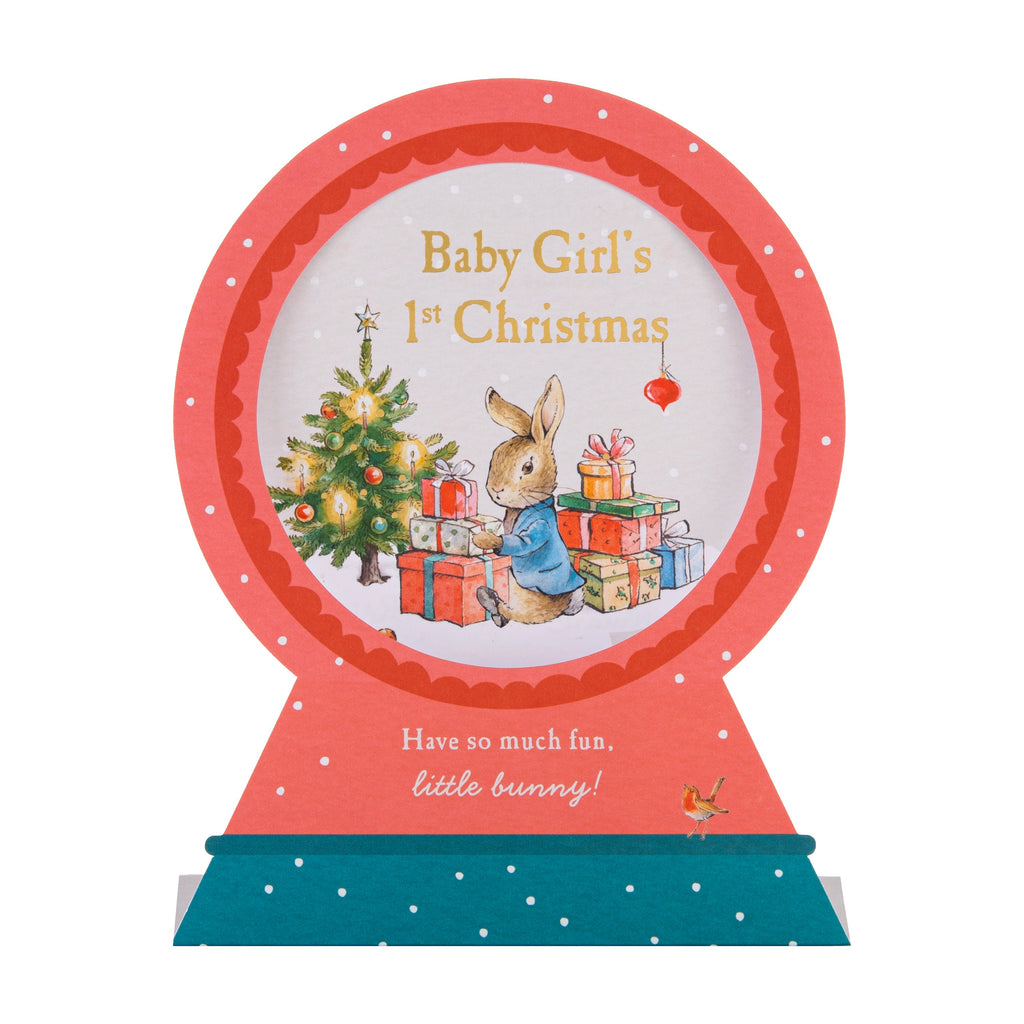 Baby Girl's First Christmas Card - 3D & Pop-Up Peter Rabbit™ Snow Globe