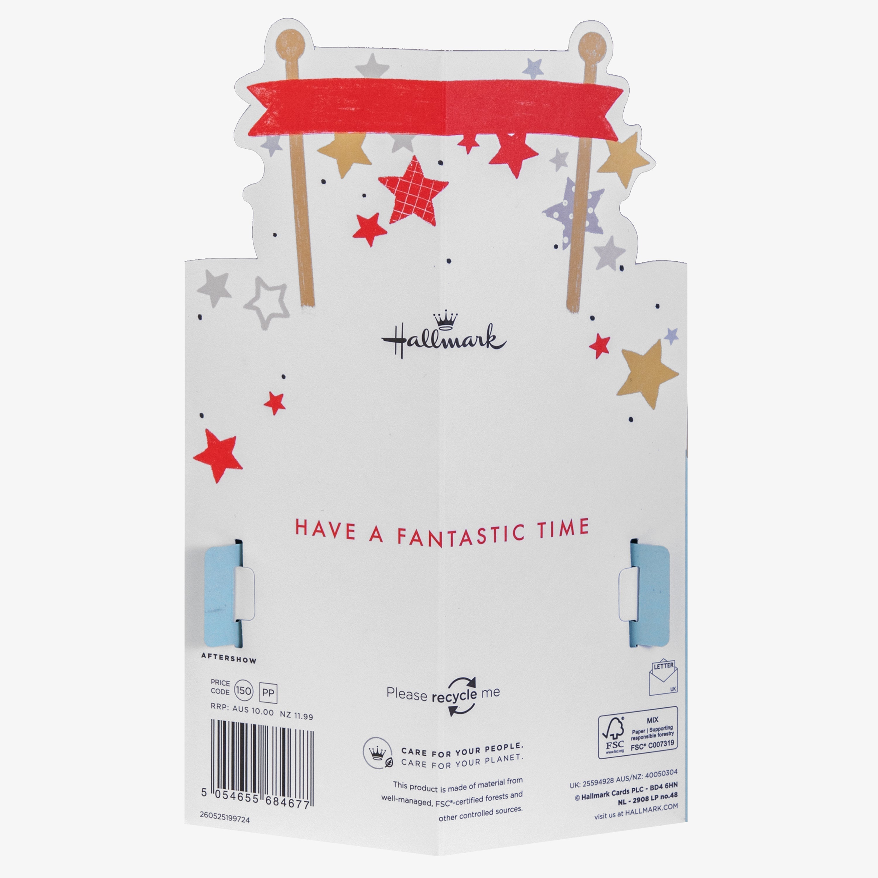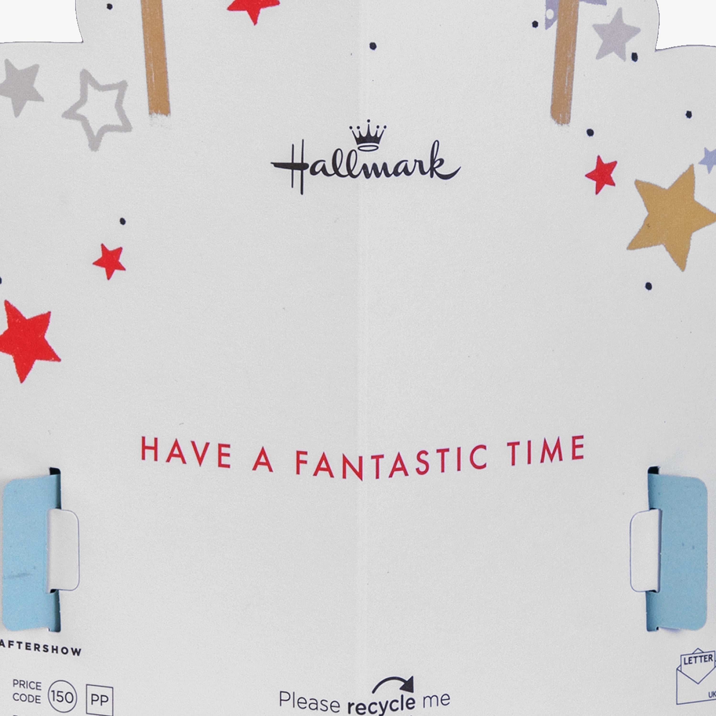 Printed on high-quality board with a die-cut, 3D, pop-up format, this eye-catching card features an illustrated Christmas Pudding, complete with a celebration banner, surrounded by sparkling stars, with gold foil lettering and gold foil design highlights, and comes complete with a co-ordinating bright red, Hallmark branded envelope.