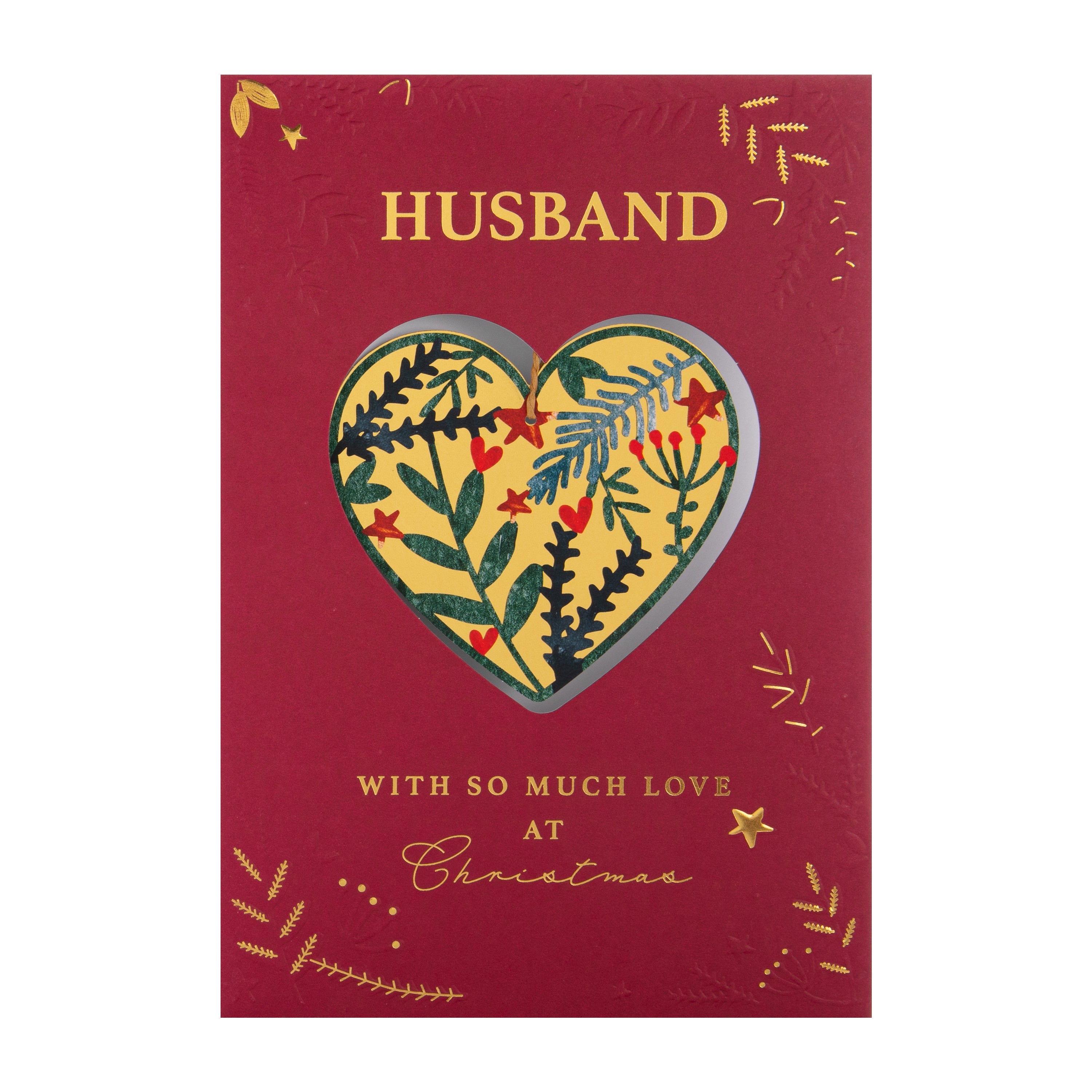 Christmas Card for Husband - Traditional Foliage & Bauble Design with Keepsake