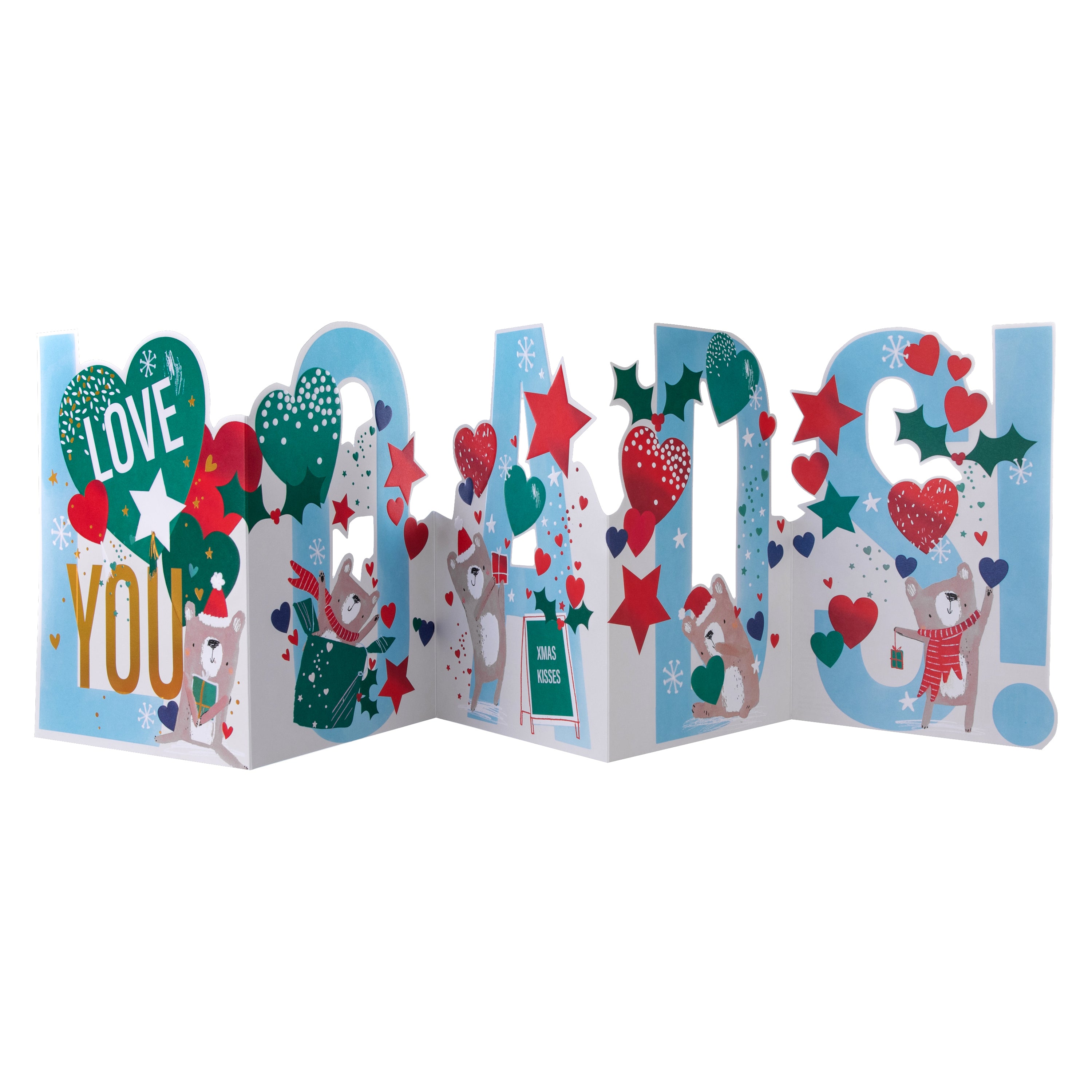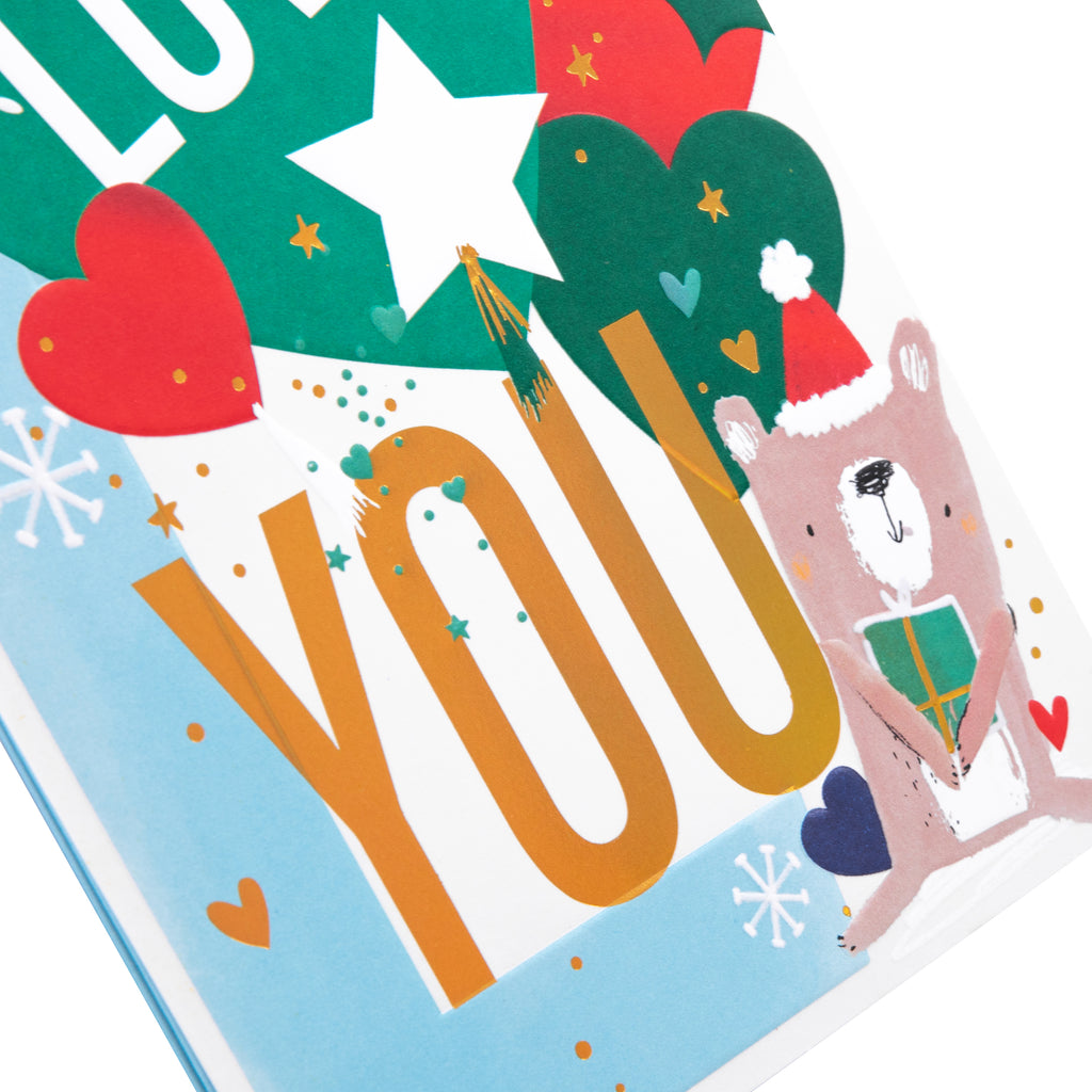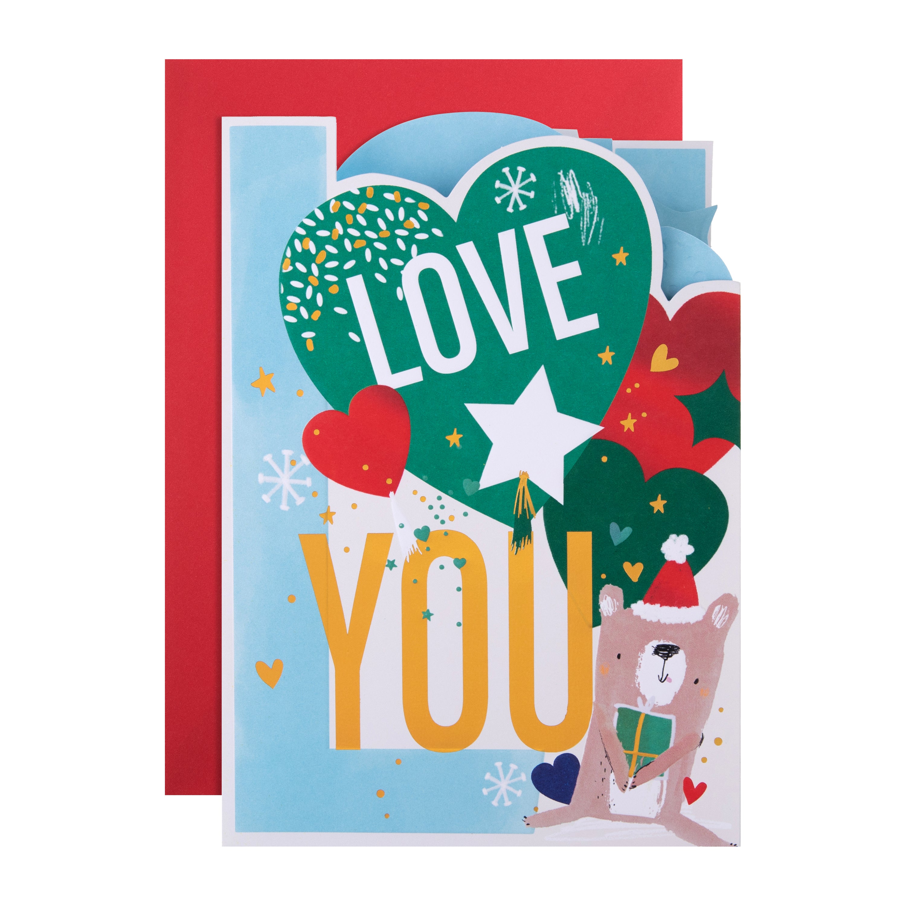 Printed on high-quality board, this card pulls out into a 3D jumbo design, features the message 'Love you loads', die-cut details, embossed elements and holographic gold foil details. This card comes complete with a co-ordinating Hallmark branded, red envelope.