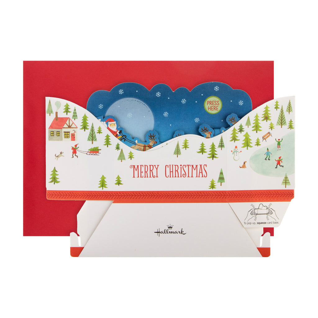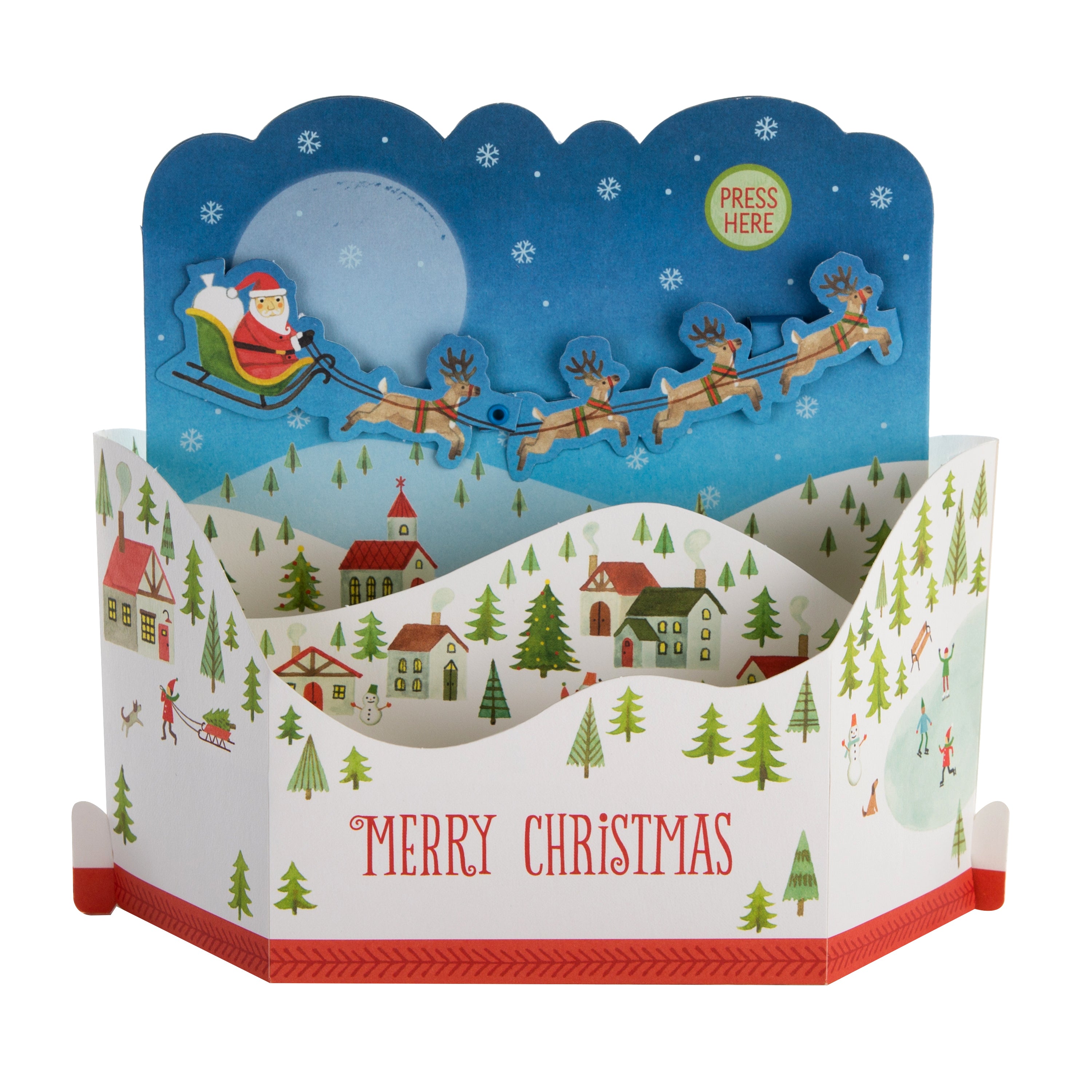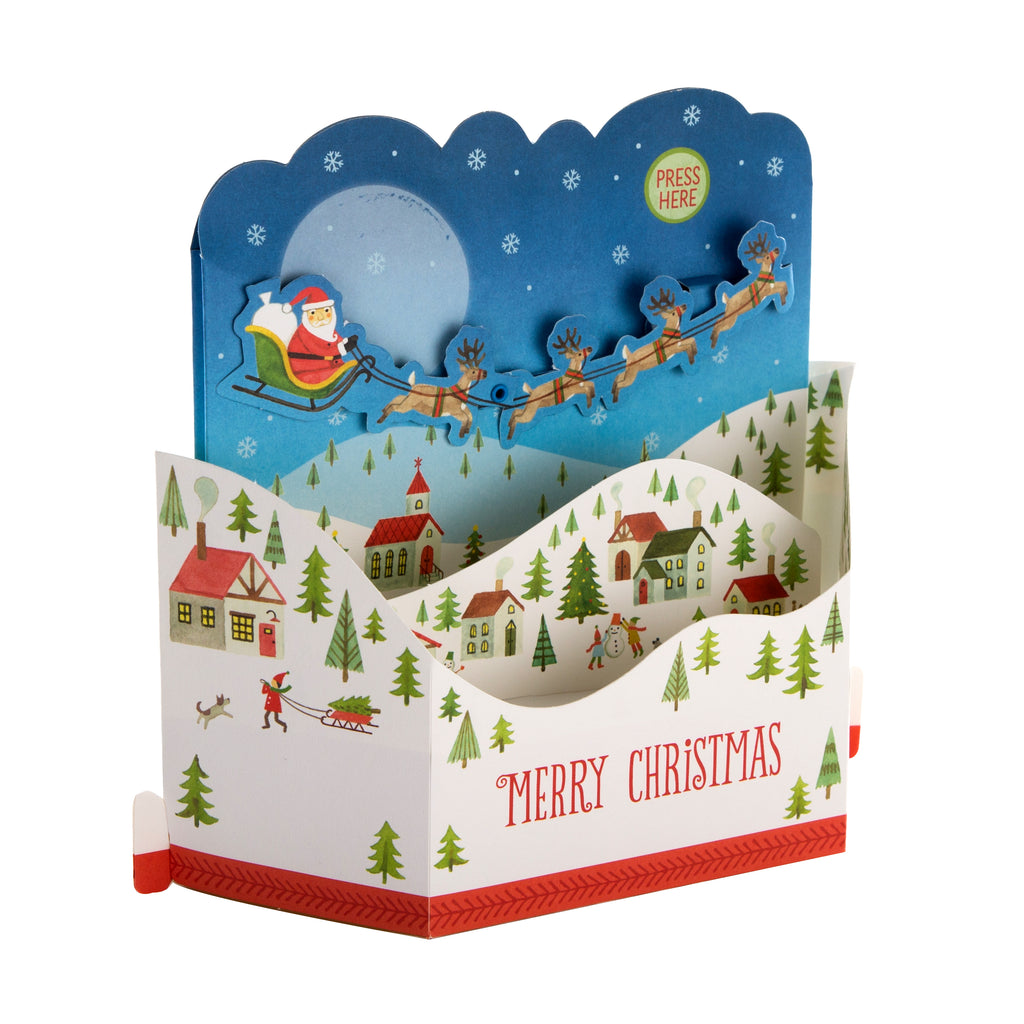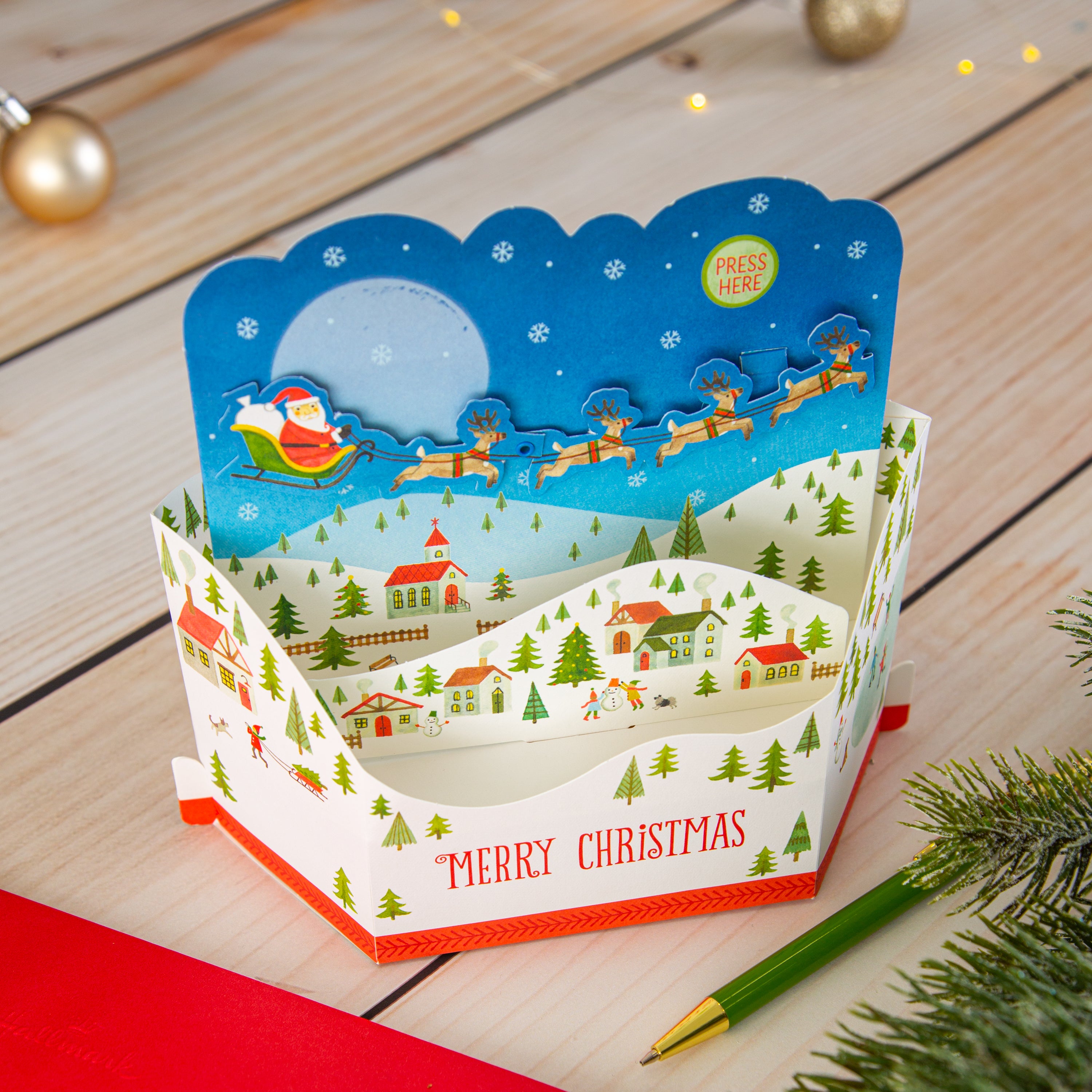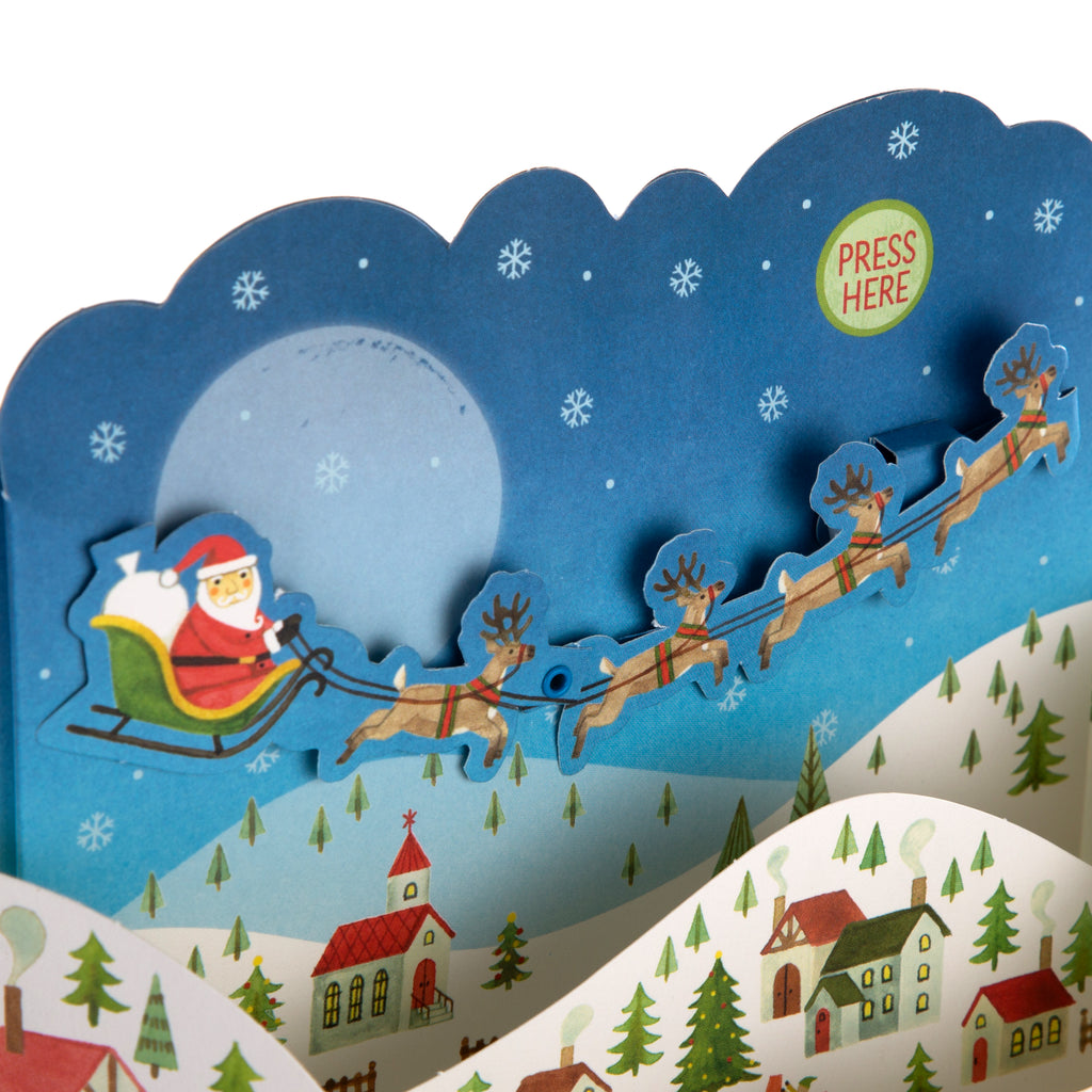 Get ready for Santa arriving on his Sleigh, with this 3D pop-up with music and motion Christmas card!