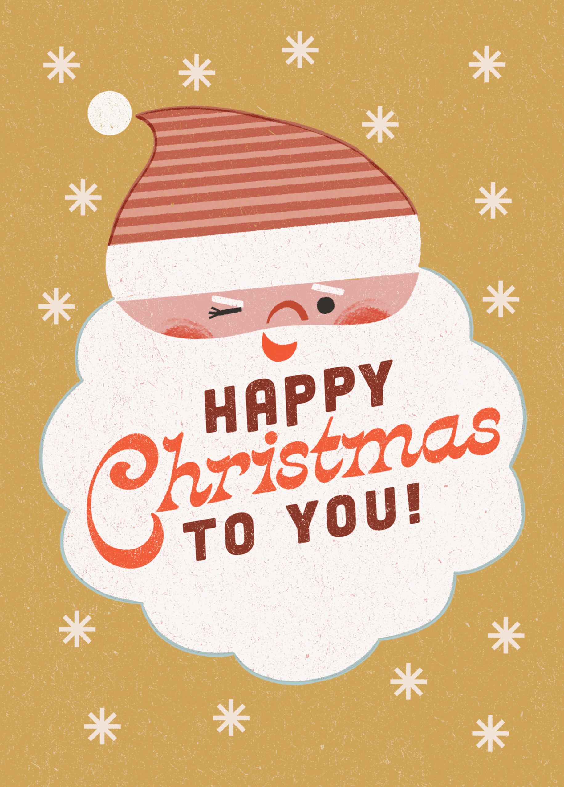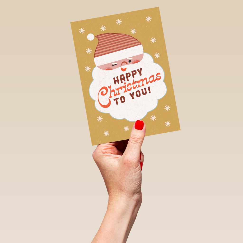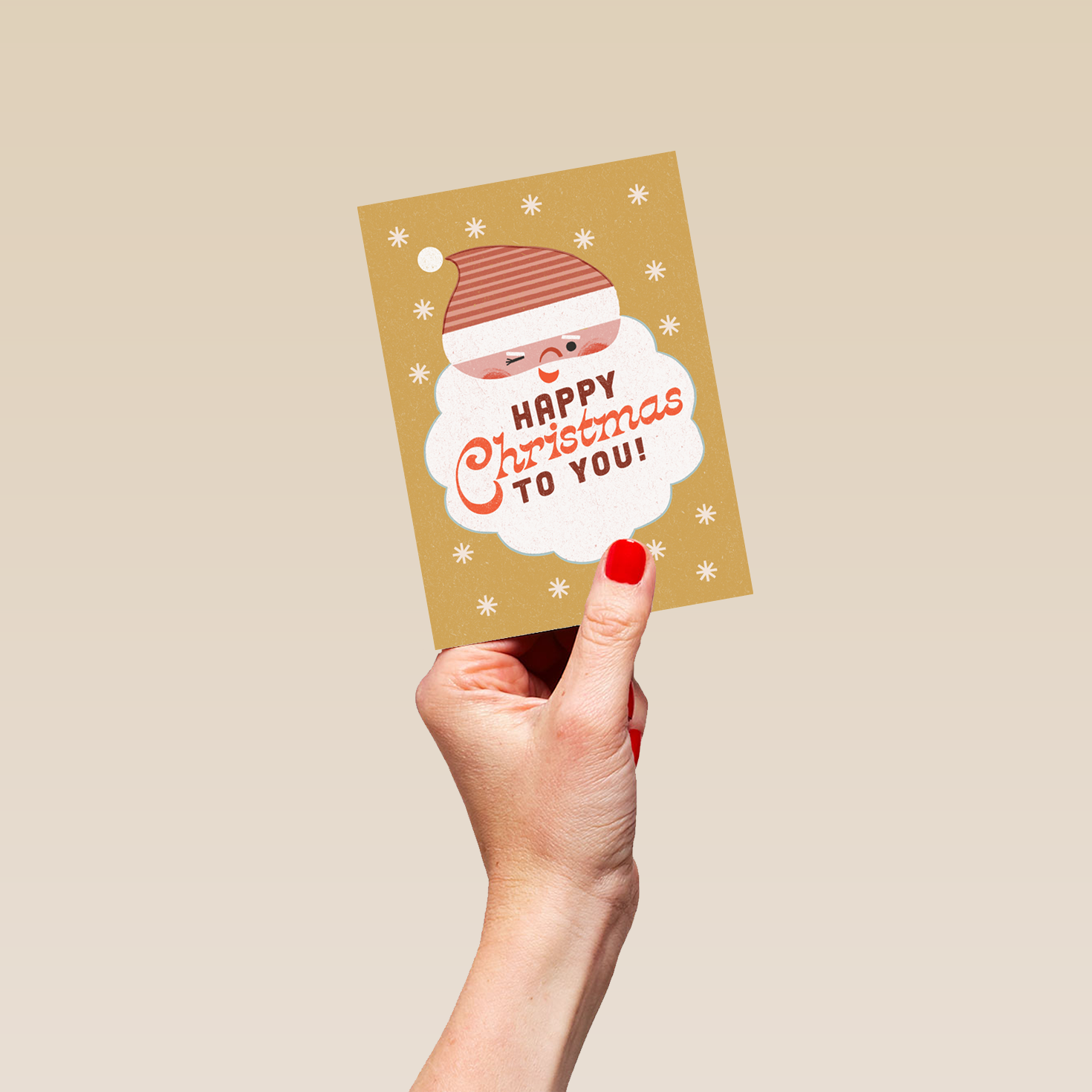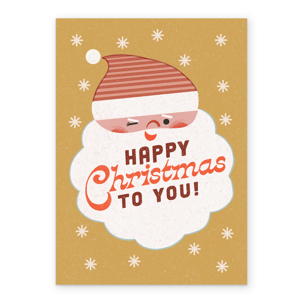 Printed on premium-quality board, this card features a cute Santa illustration, with the message 'Happy Christmas to you!', and comes complete with a co-ordinating white envelope.