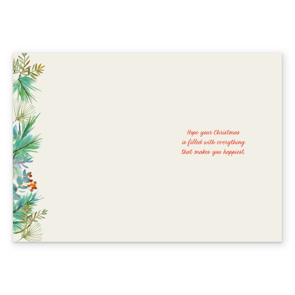 Message inside reads: Hope your Christmas is filled with everything that makes you happiest.