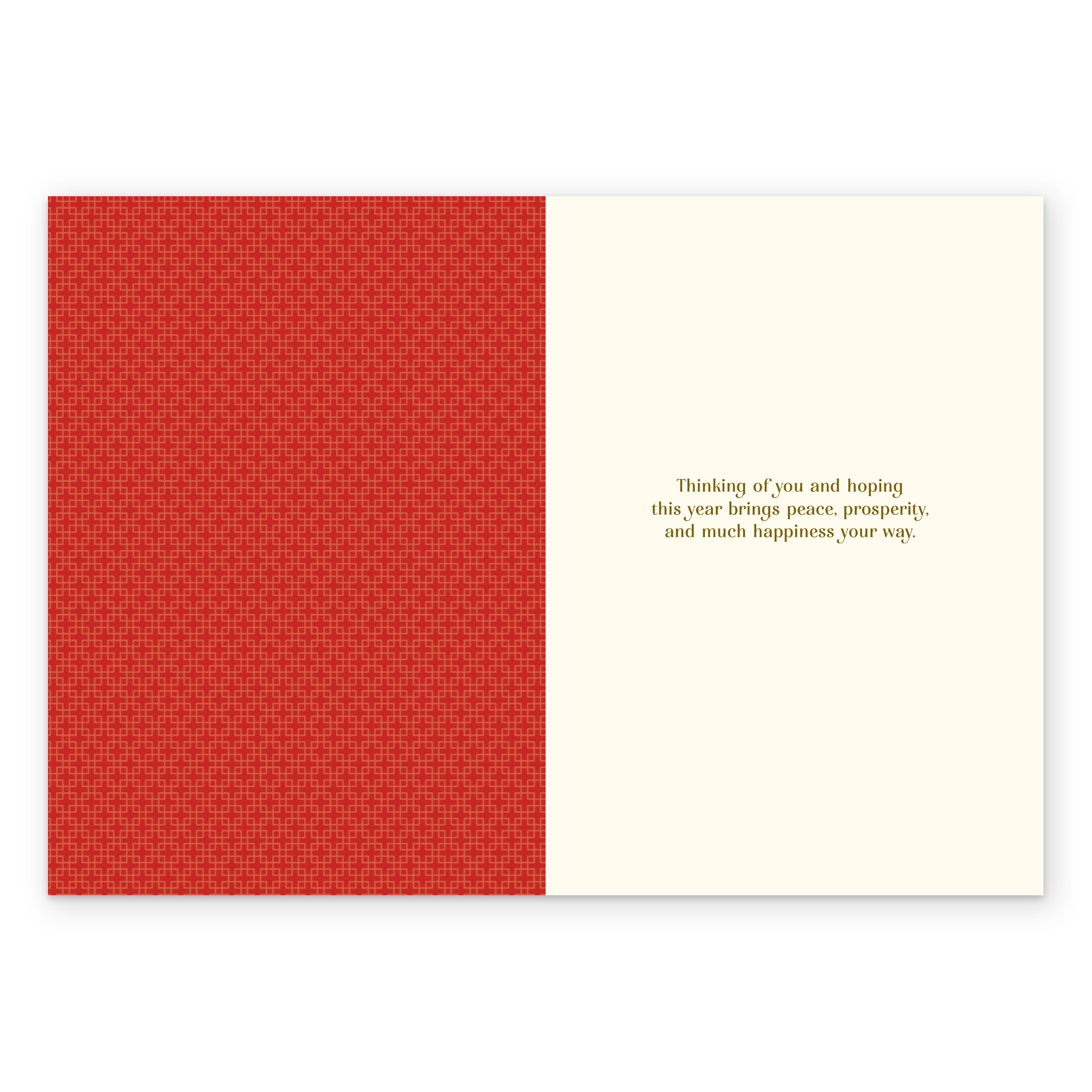 Message inside reads: Thinking of you and hoping this year brings peace, prosperity, and much happiness your way.