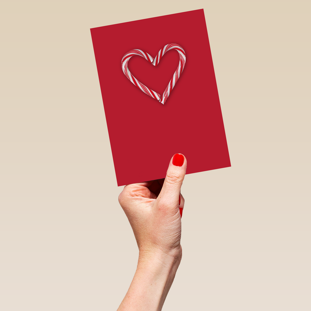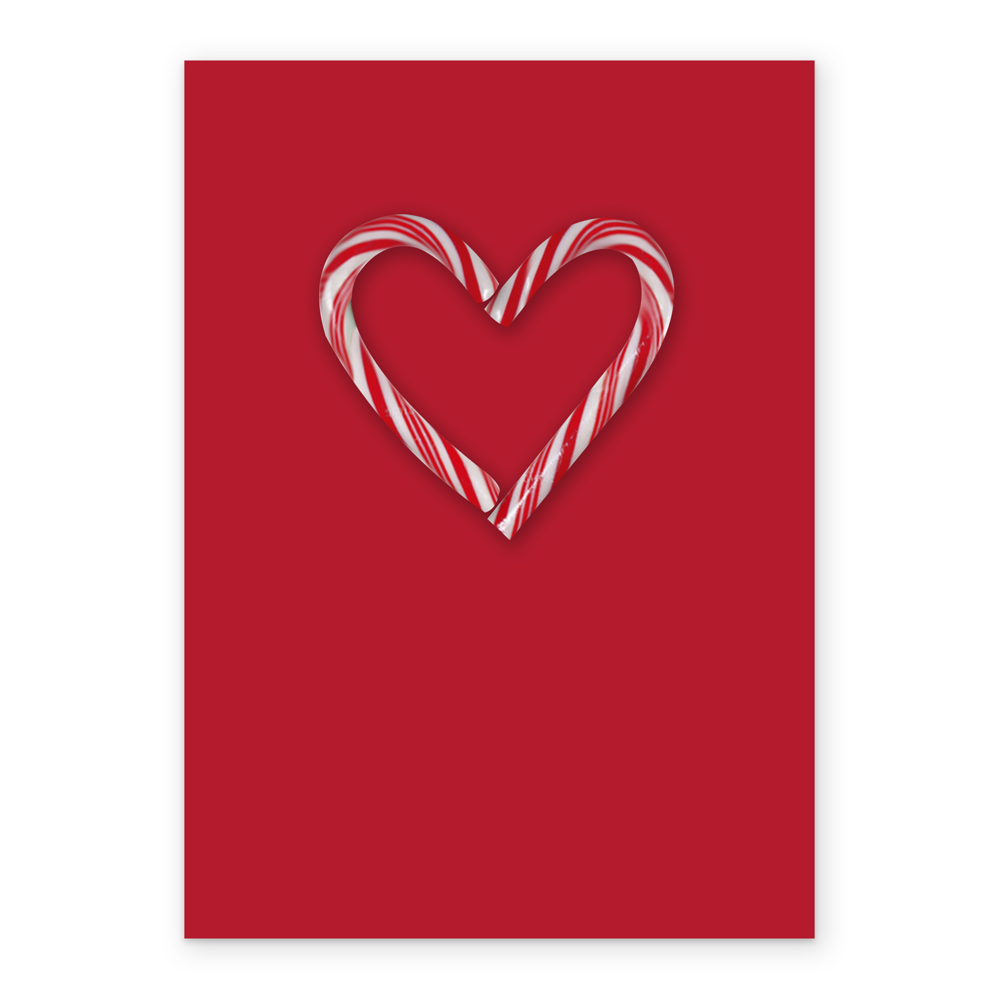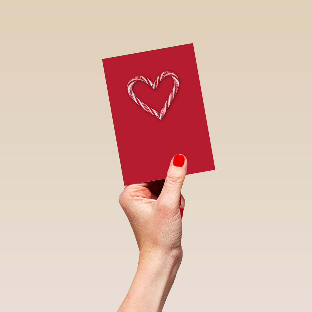 Printed on premium-quality board, this card features a heart made from two candy canes on a red background, and comes complete with a co-ordinating white envelope.