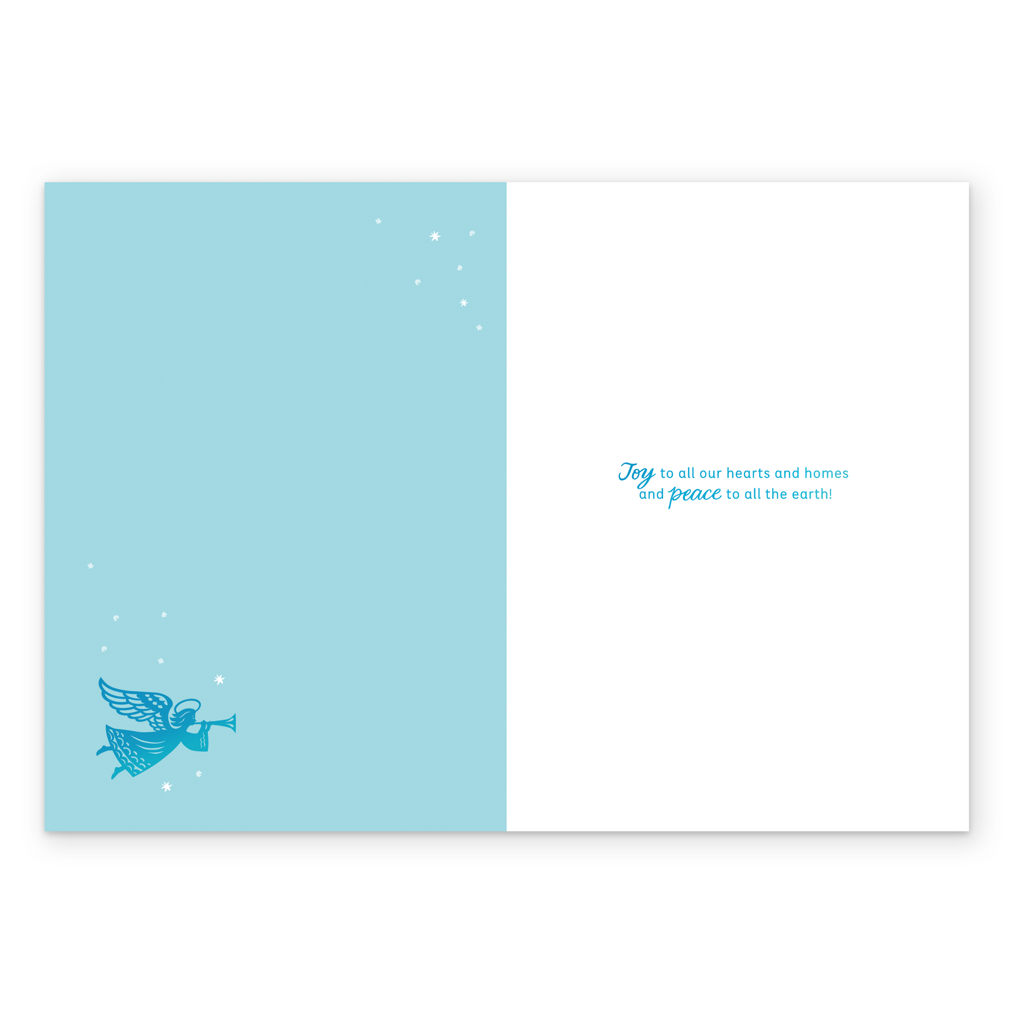 Message inside reads: Joy to all our hearts and homes and peace to all the earth!