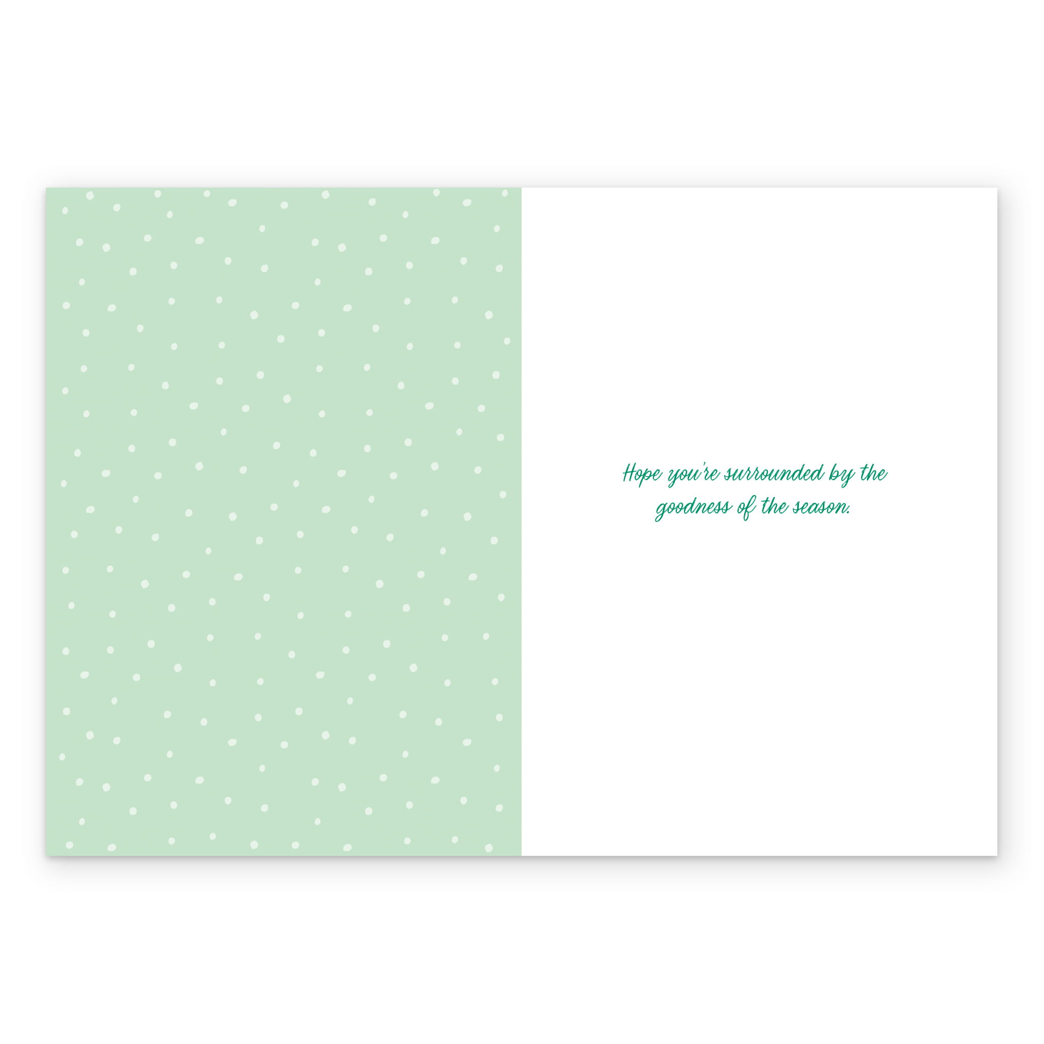 Message inside reads: Hope you're surrounded by the goodness of the season.