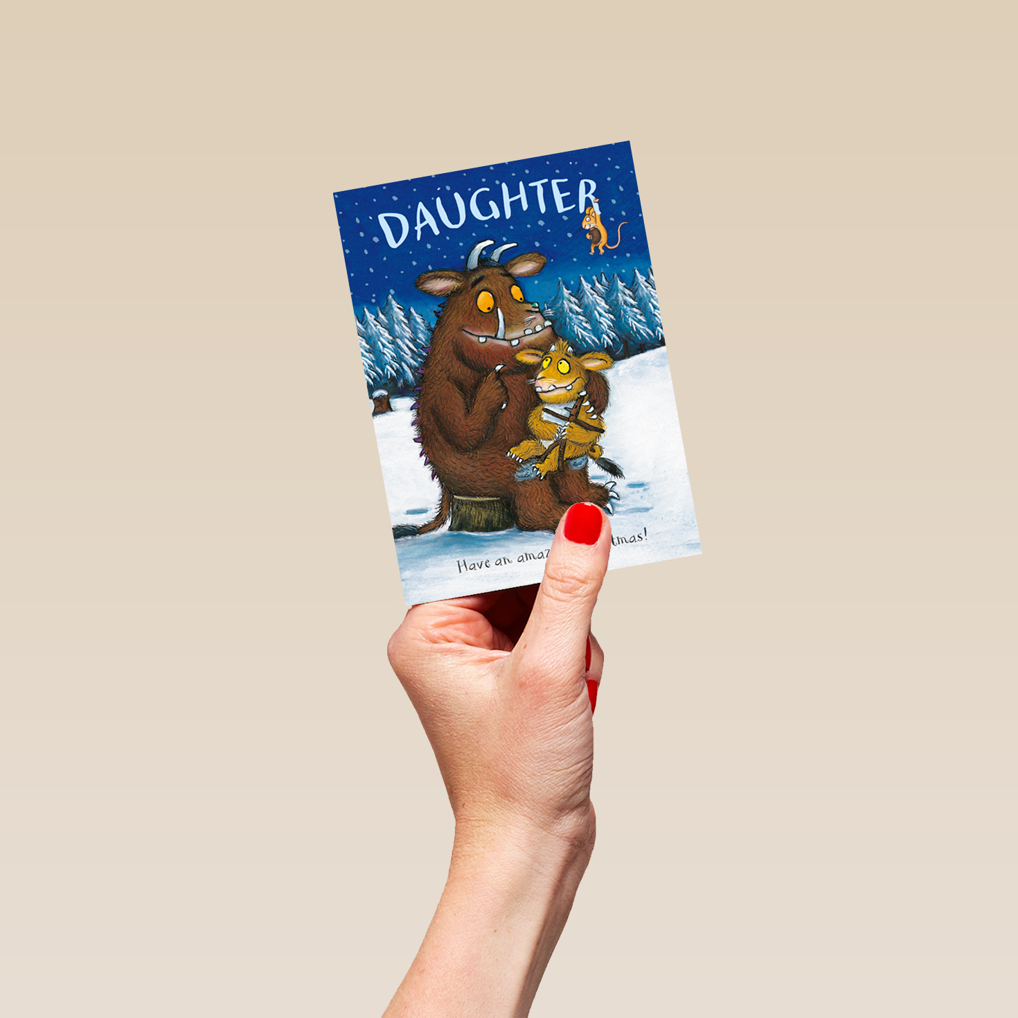Let your darling daughter know just how much she's loved, at Christmas time and always, with this adorable Gruffalo's Child themed, personalised Christmas card.