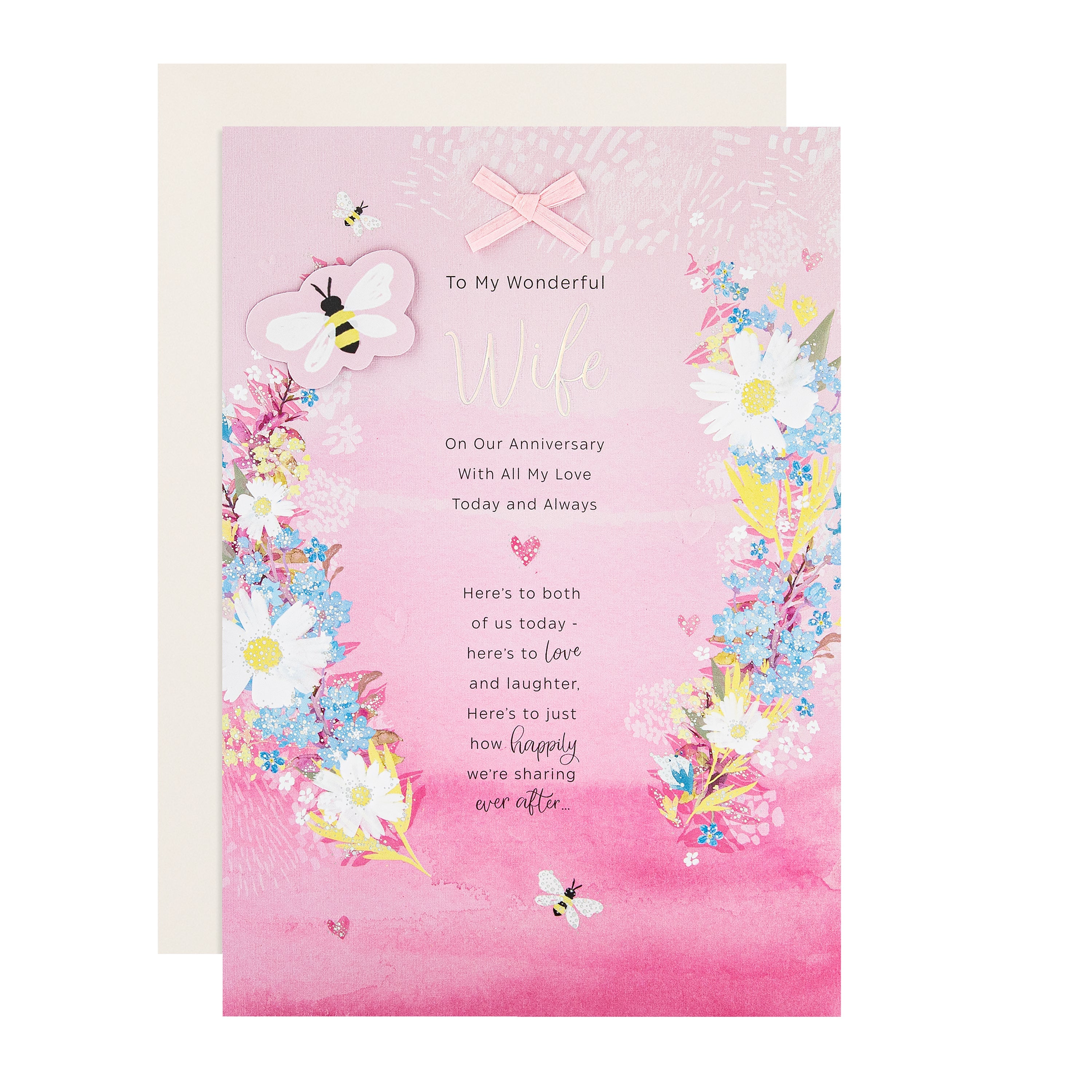 Anniversary Card for Wife - Pink Florals Design & Heartfelt Verse