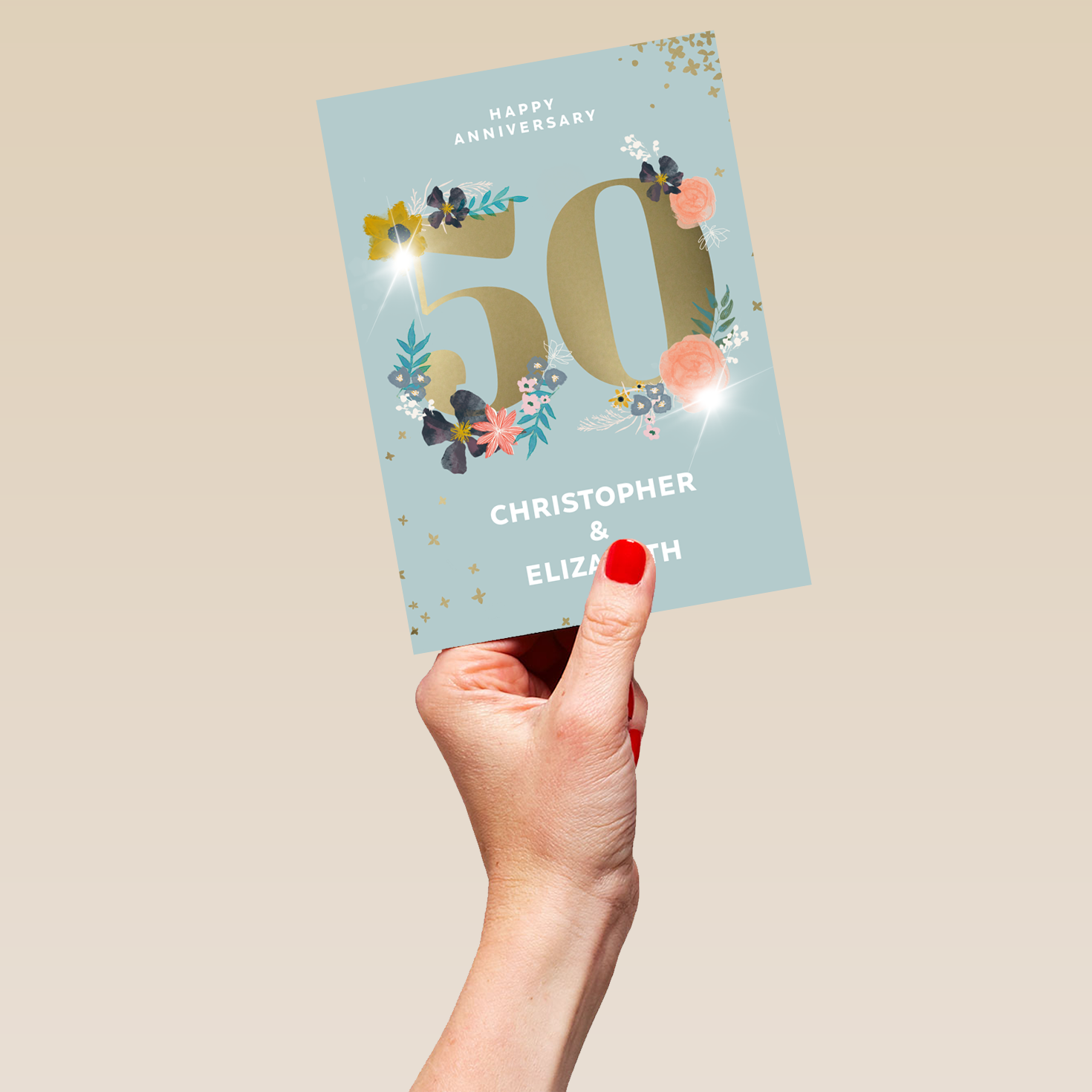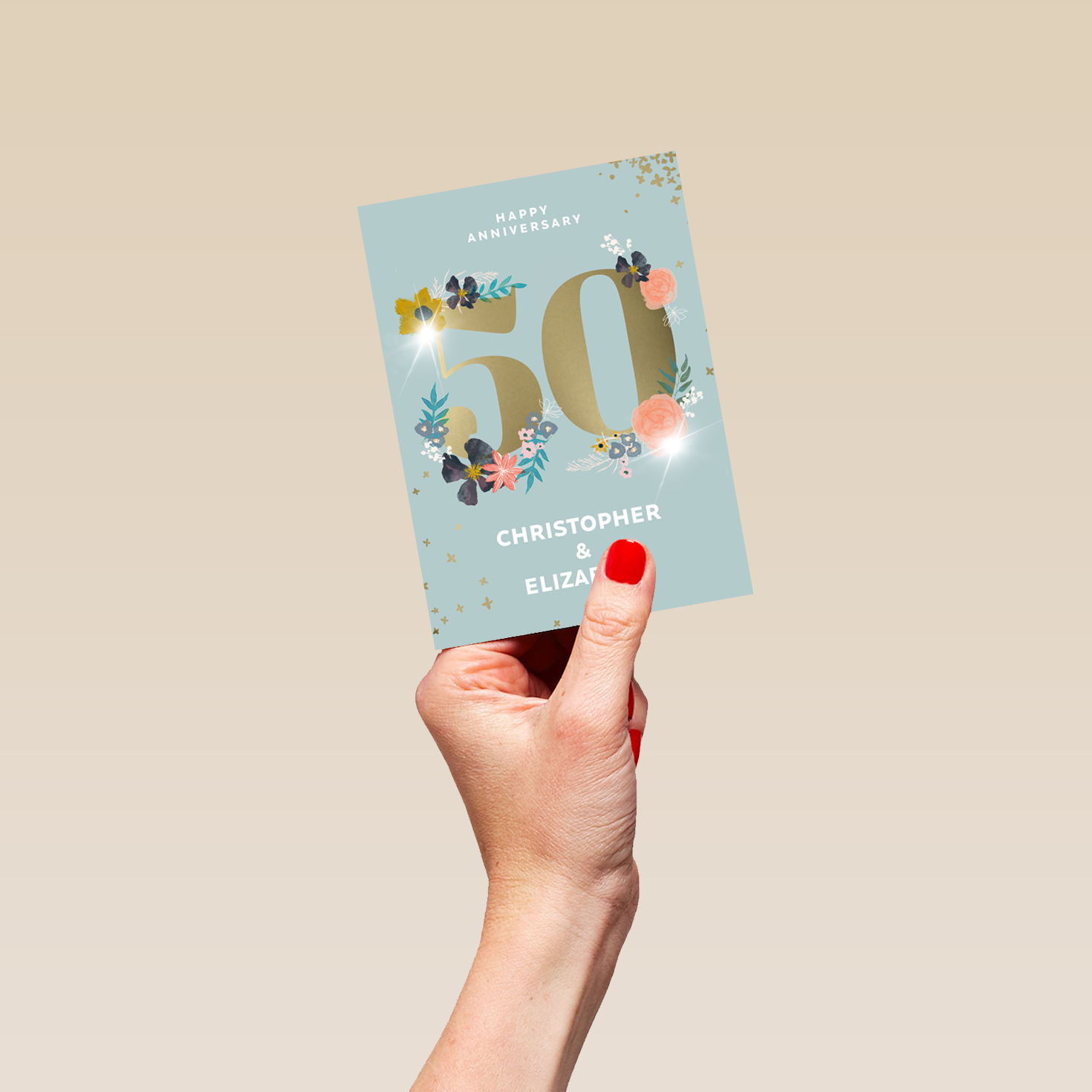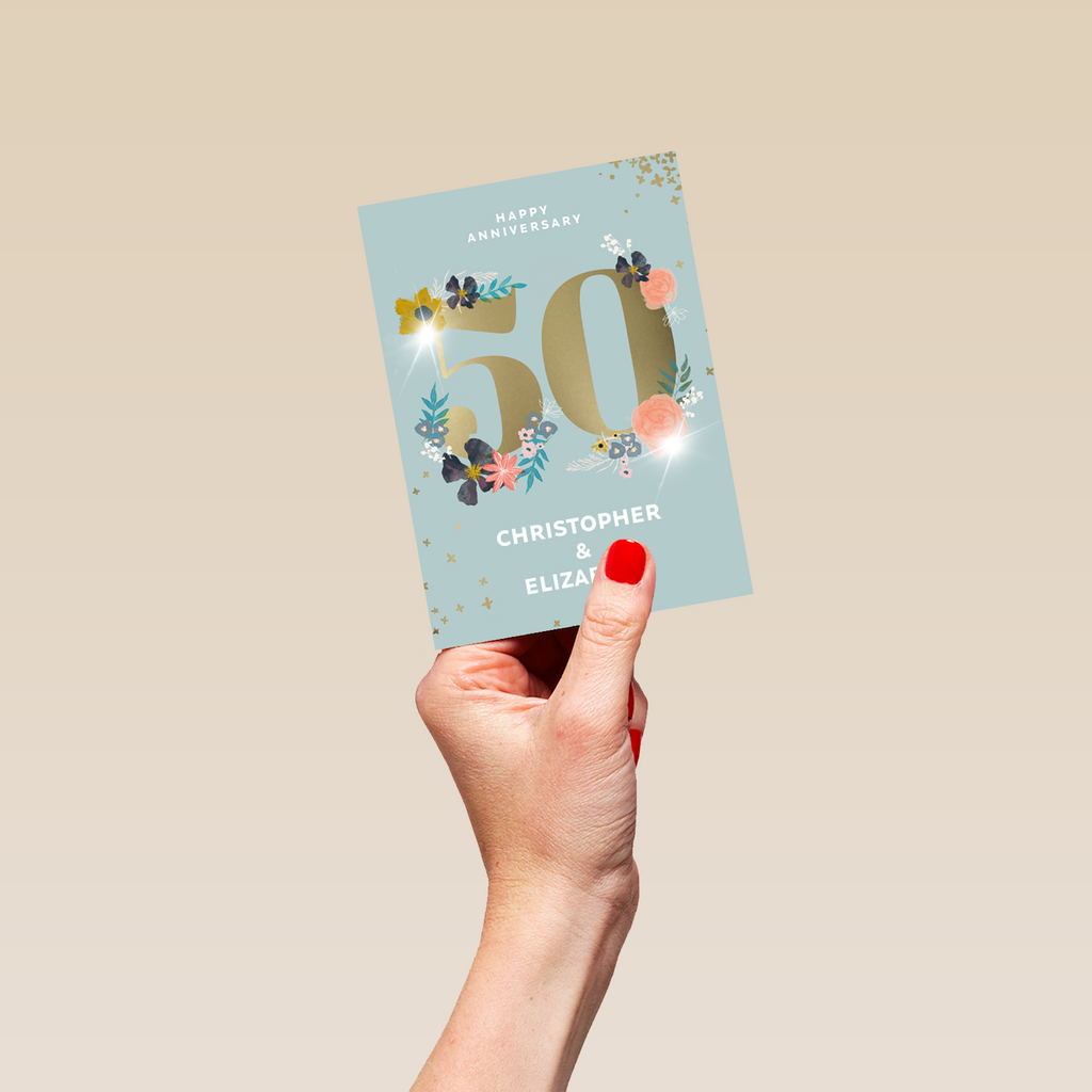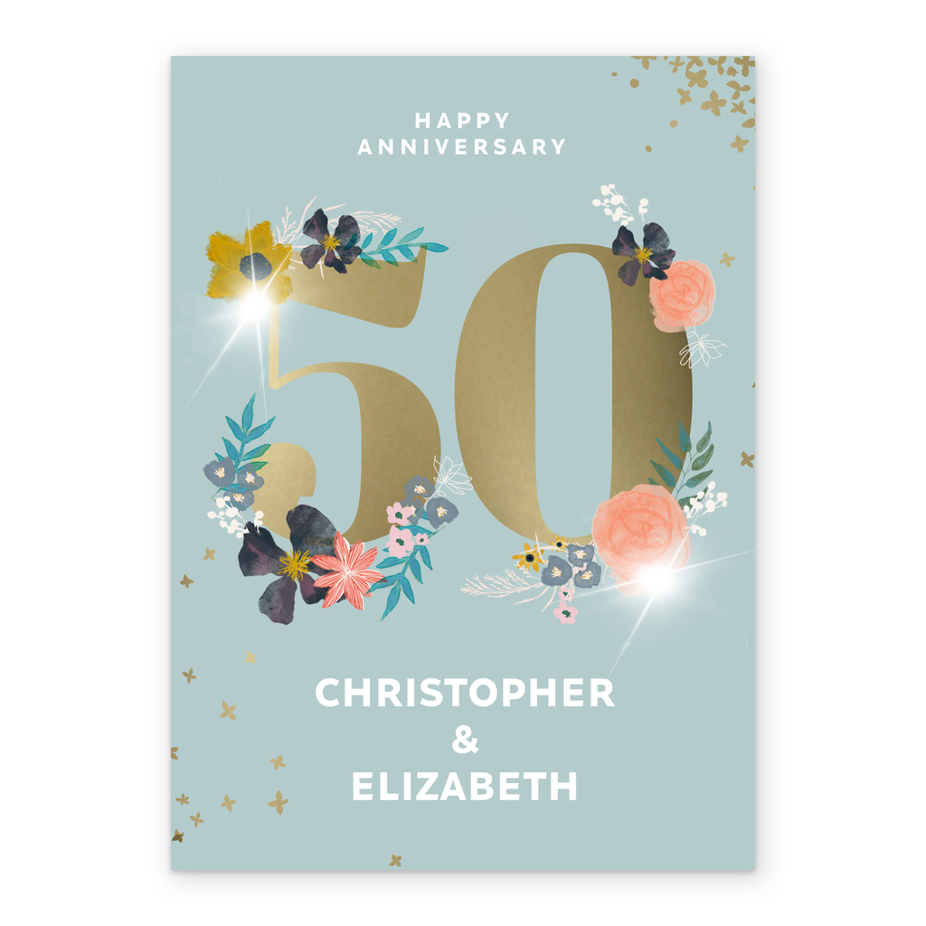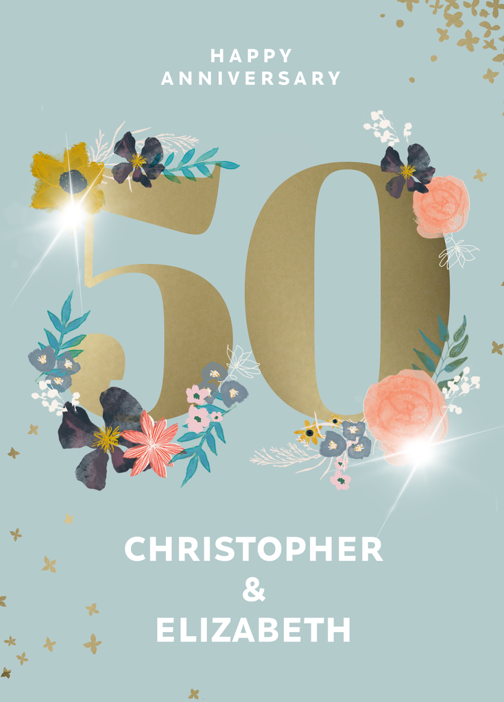 Personalised & Editable Stars & Florals 50th Anniversary Card