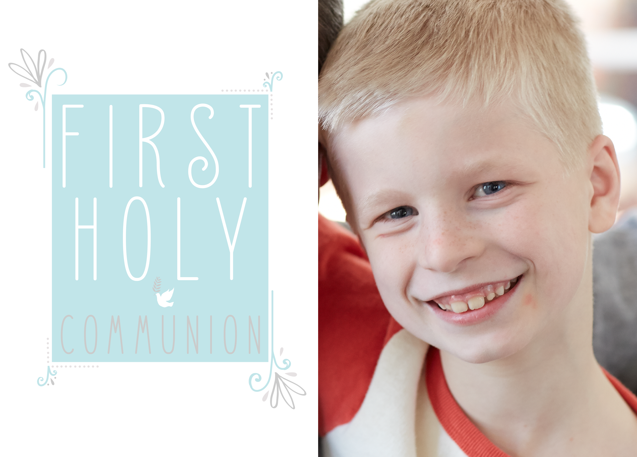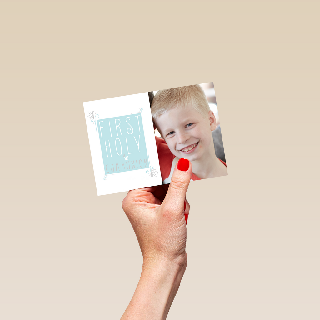 Enjoy their First Holy Communion and congratulate them on their milestone with this personalised First Communion card, and upload a photo to commemorate their special day.
