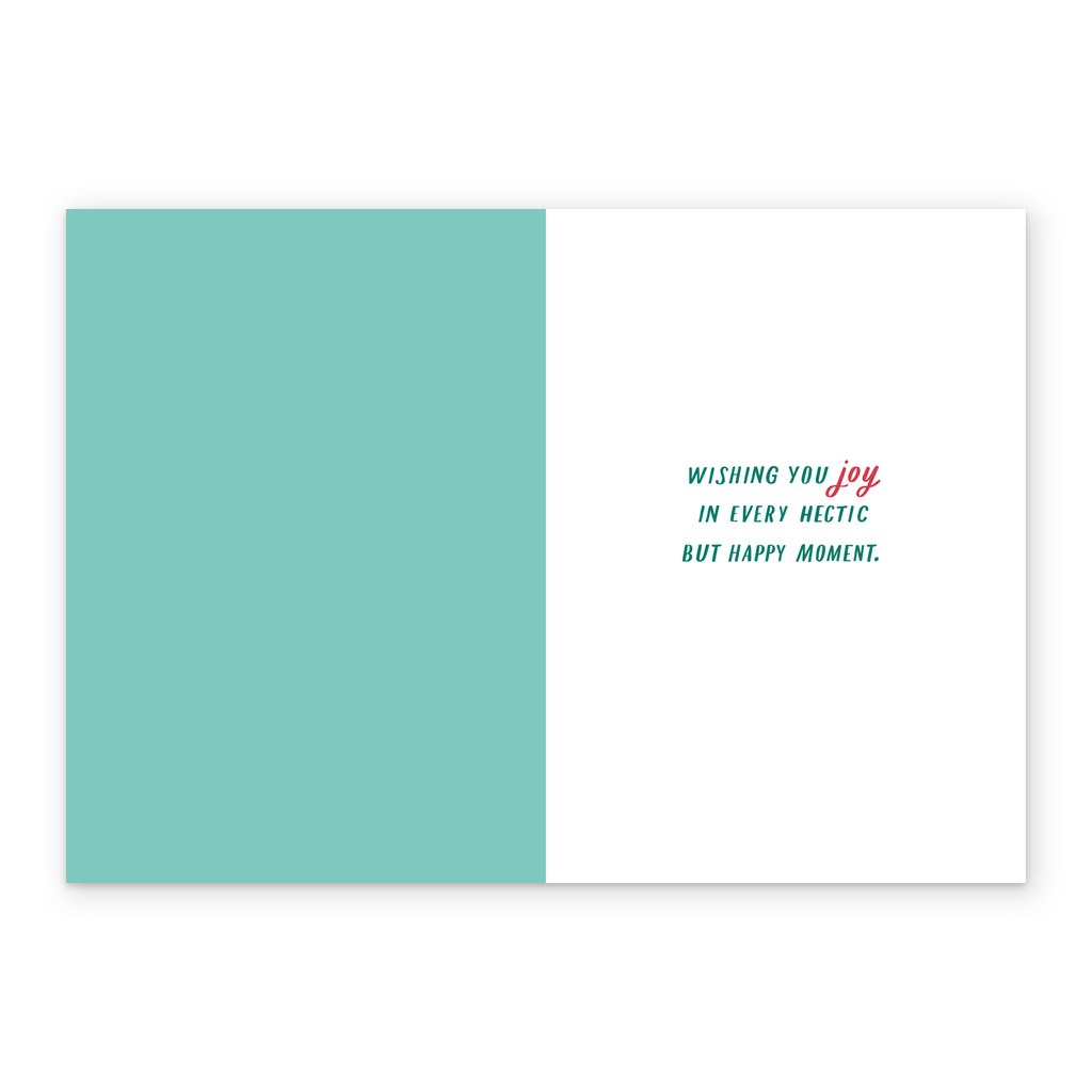 Message inside reads: Wishing you joy in every hectic but happy moment
