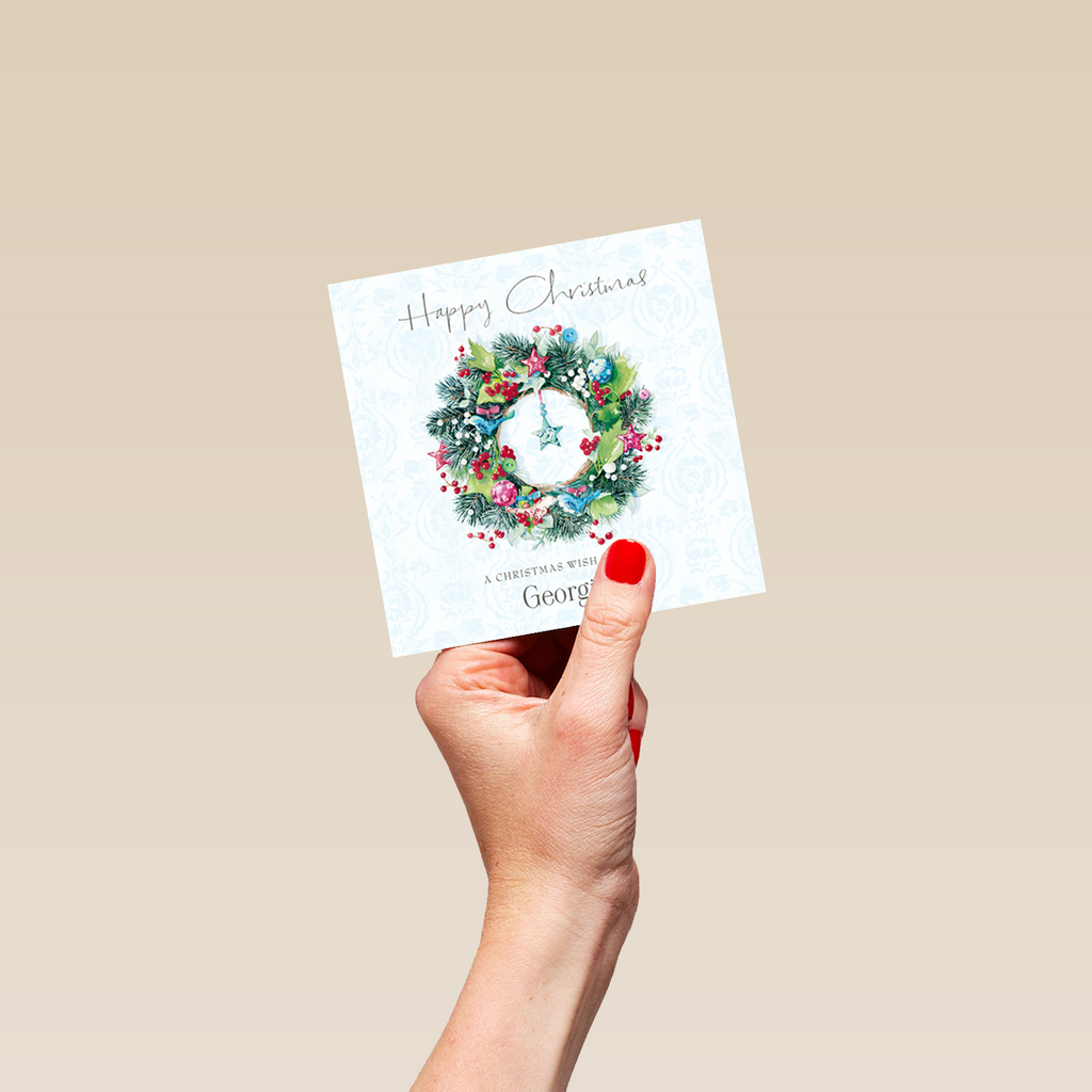 Personalised Traditional Christmas Lucy Cromwell Wreath Card