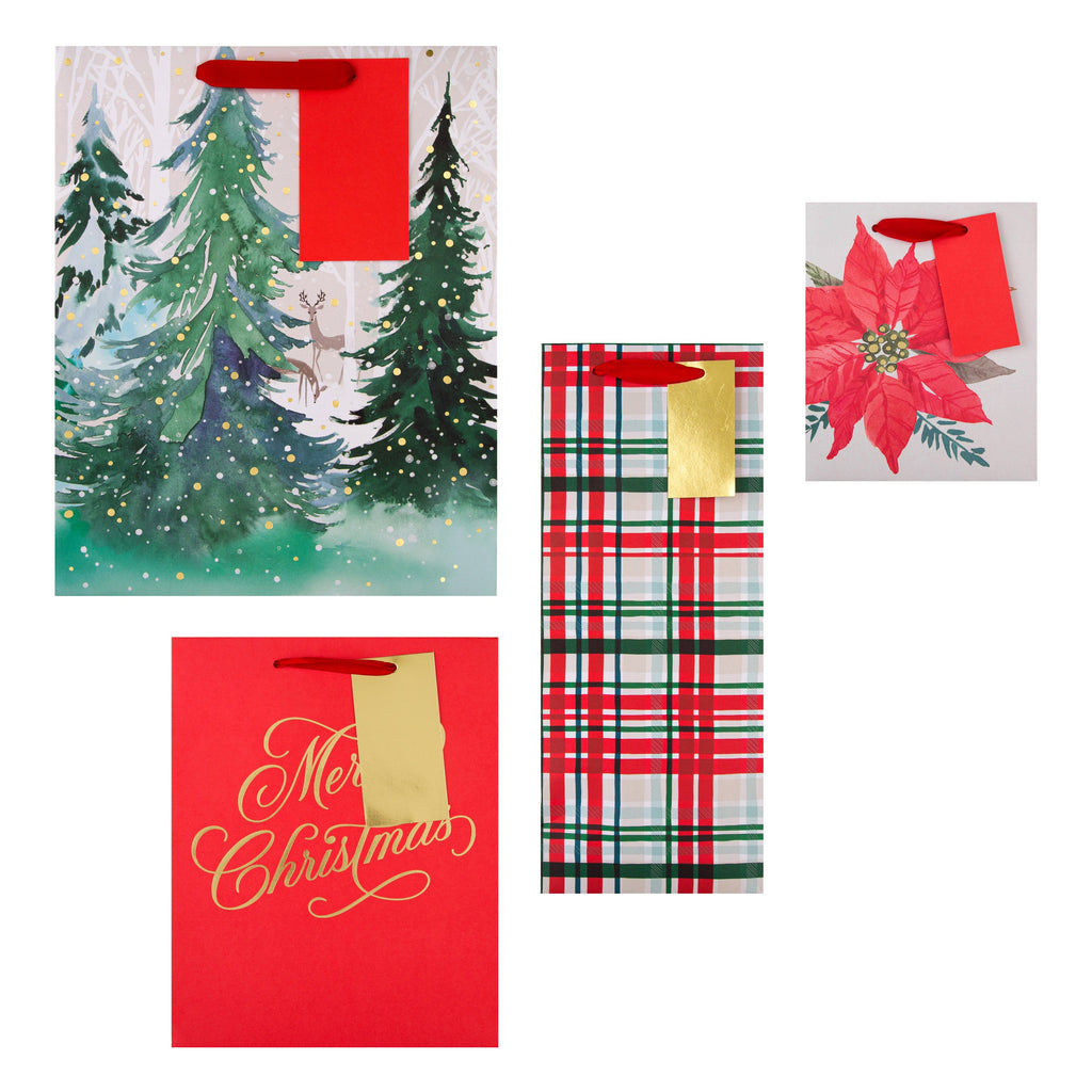 Christmas Gift and Bottle Bag Pack - 4 Bags in 4 Classic Designs
