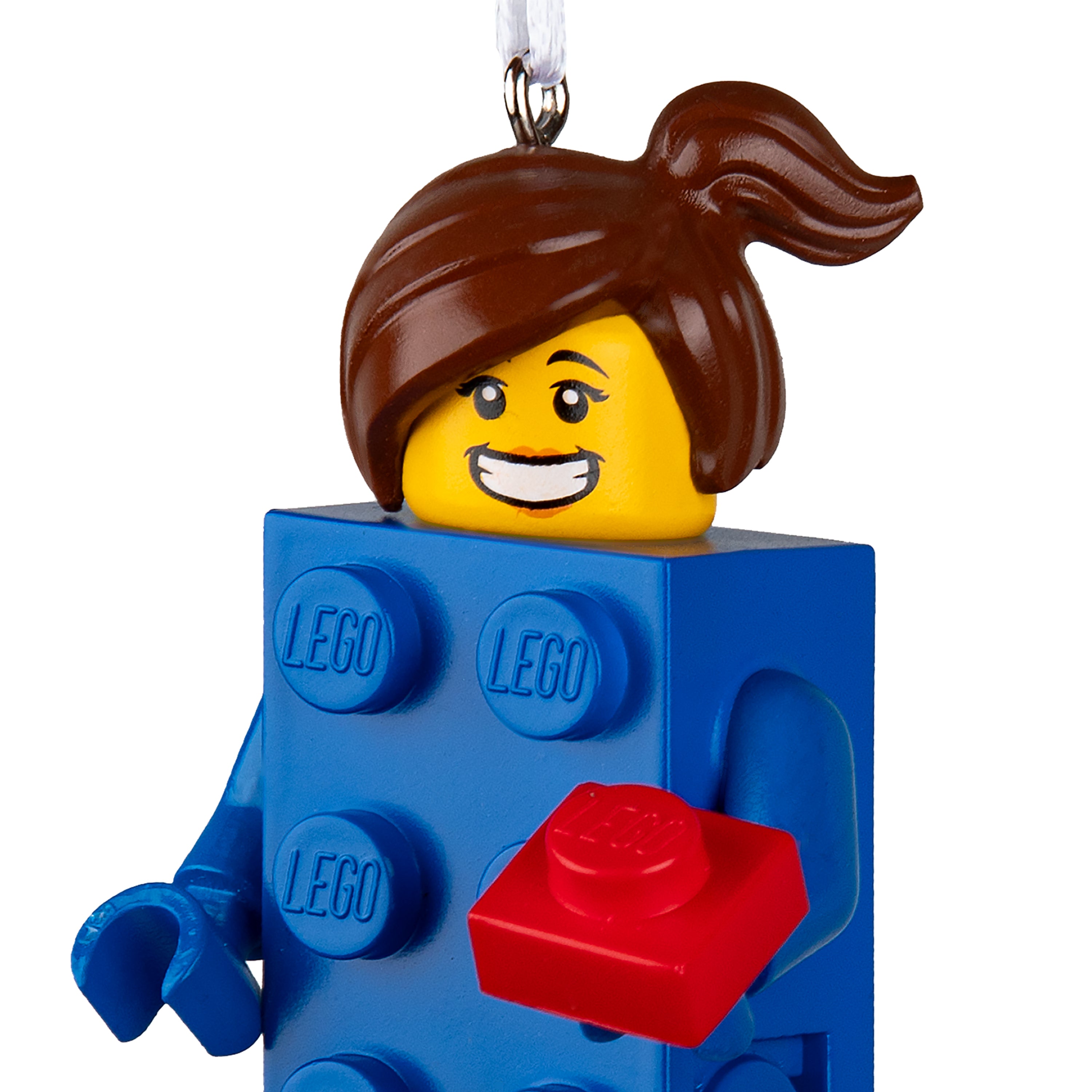 This Hanging Ornament Keepsake is made out of hardwearing resin and features the Blue LEGO Brick Suit Girl and a hanging loop. Includes a white ribbon ready to hang and display the keepsake in your home.