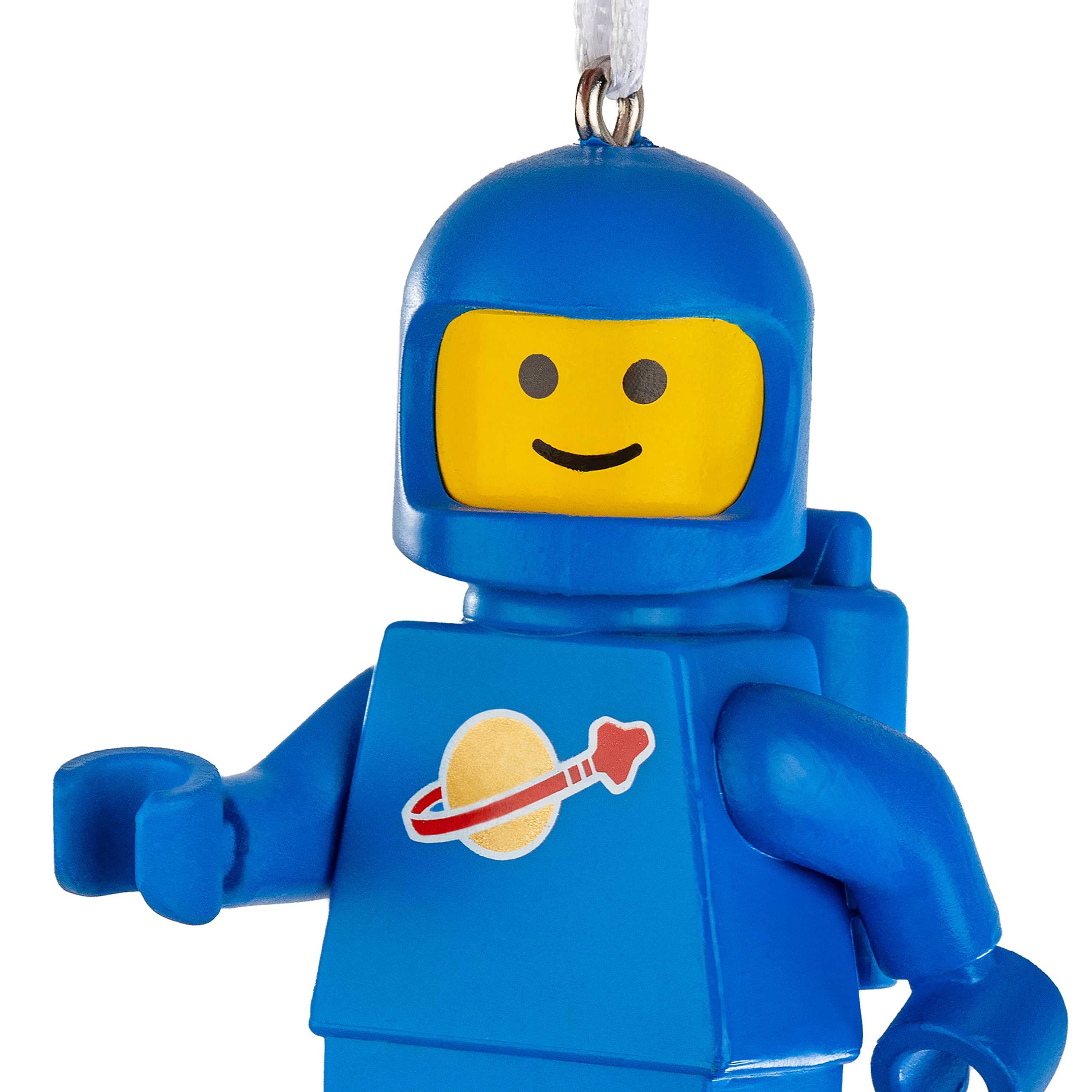 This ornament features Benny the Spaceman from the LEGO universe in his iconic blue astronaut suit and a smile on his face. Includes a white ribbon ready to hang and display the keepsake in your home.