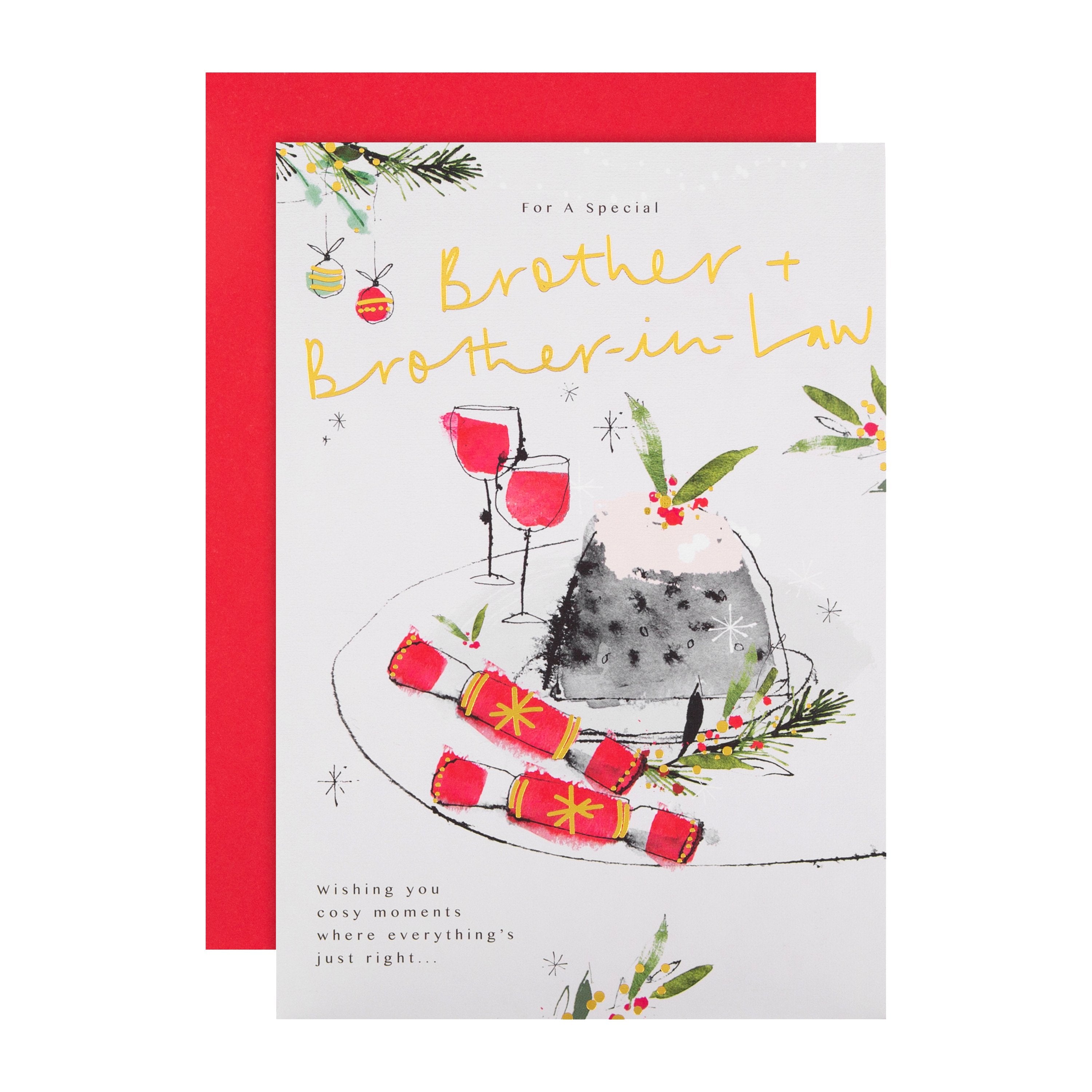Raise a glass of mulled wine and pull a cracker with your Brother and your Brother In Law, by sending them this traditional, festive Christmas Card.