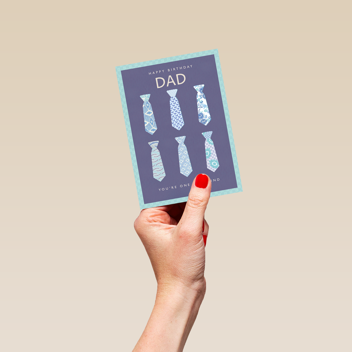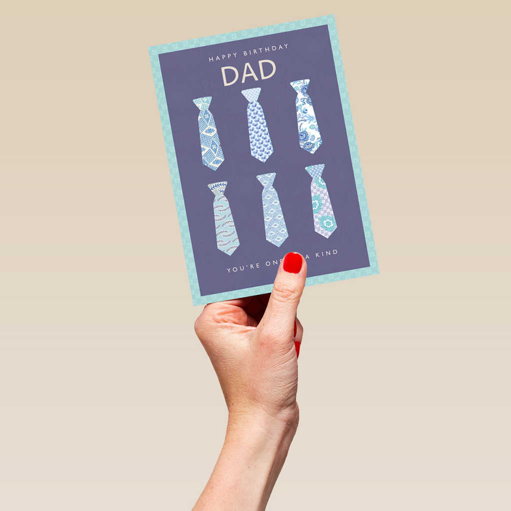Show them you care with a personalised suit and tie pattern dad card from Hallmark. Our birthday cards are printed on premium quality, FSC®-certified card & delivered nationwide. This card is available as standard 12cm by 16.7cm and large 15.5cm by 21.6cm.