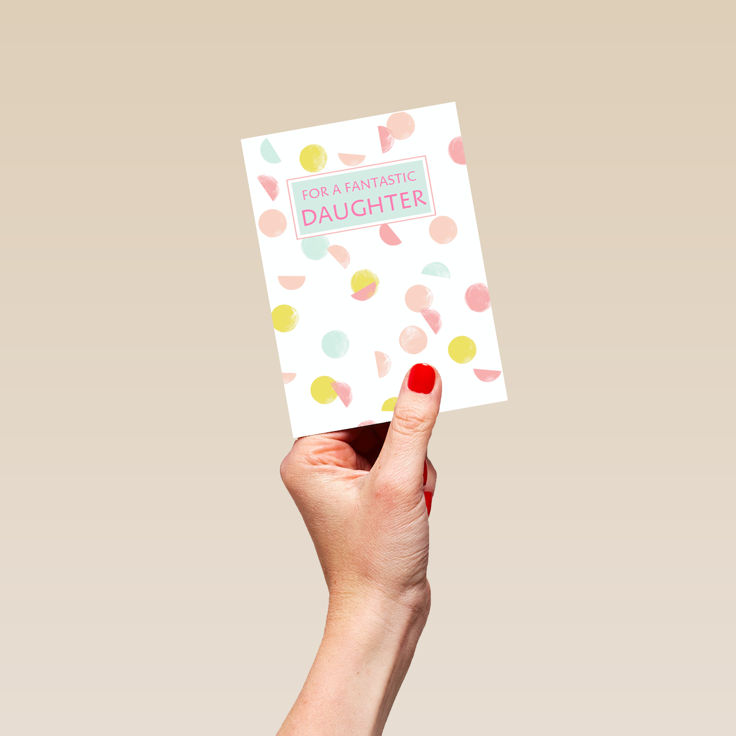 Show them you care with a personalised contemporary pattern card for daughter from Hallmark. Our birthday cards are printed on premium quality, FSC®-certified card & delivered nationwide. This card is available as standard 12cm by 16.7cm and large 15.5cm by 21.6cm.