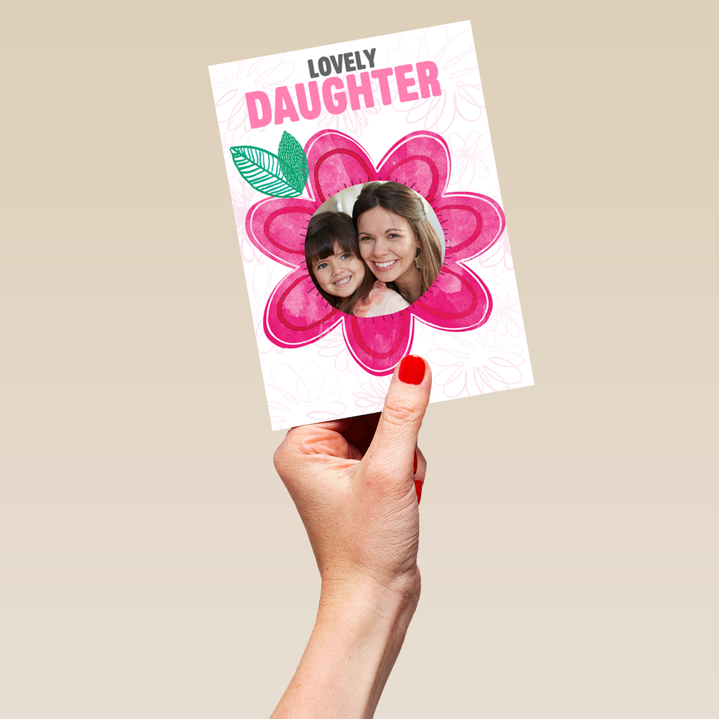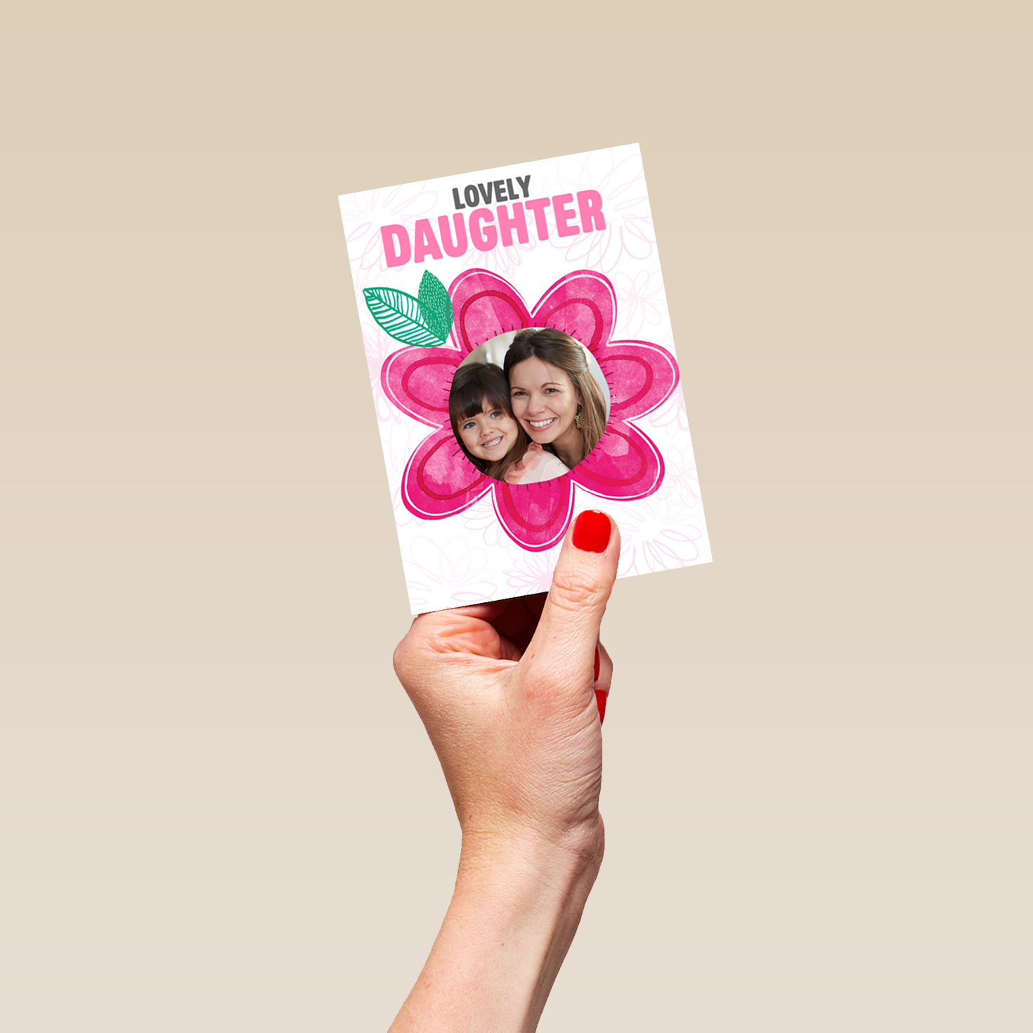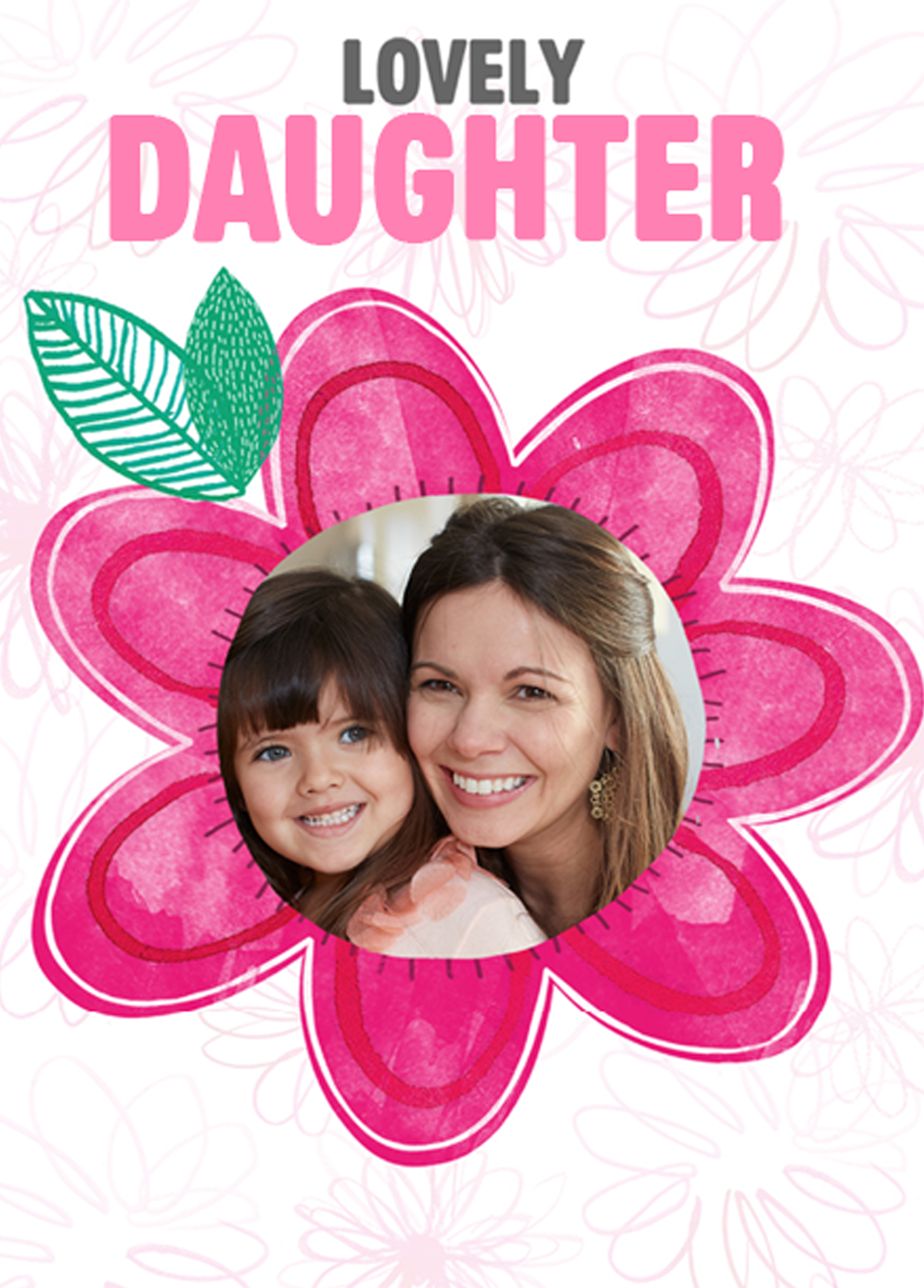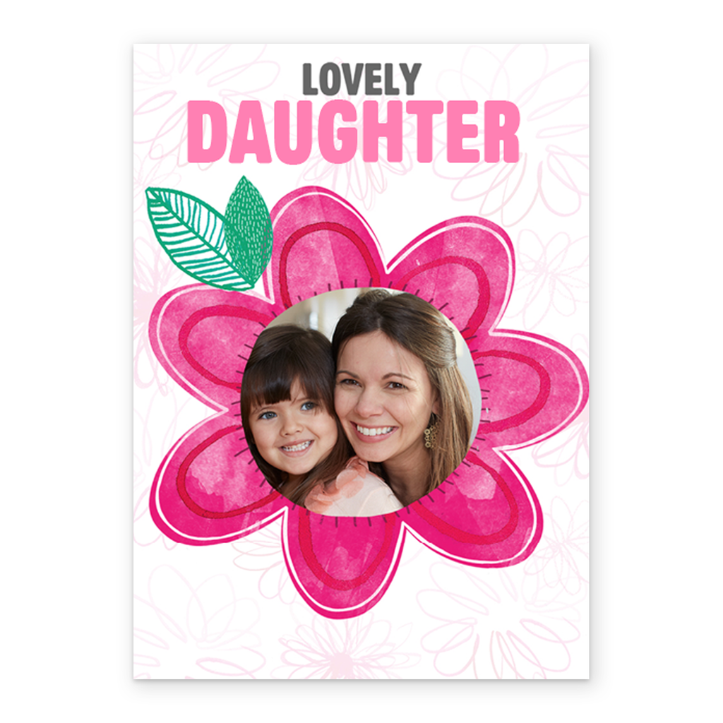 Show them you care with a personalised flowers photo card for daughter from Hallmark. Our birthday cards are printed on premium quality, FSC®-certified card & delivered nationwide. This card is available as standard 12cm by 16.7cm and large 15.5cm by 21.6cm.