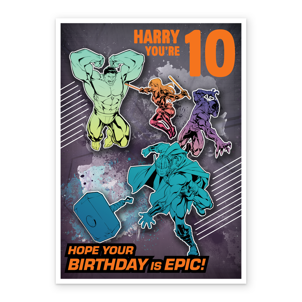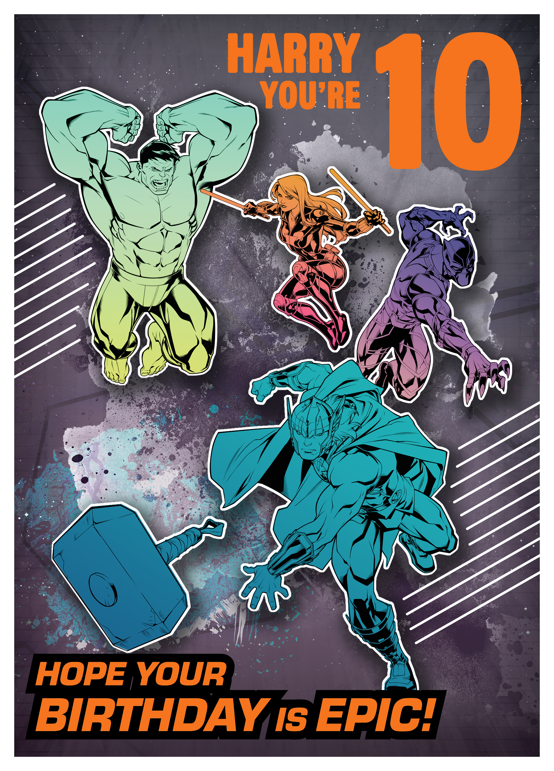 Personalised MARVEL Avengers Age 10th Birthday Card