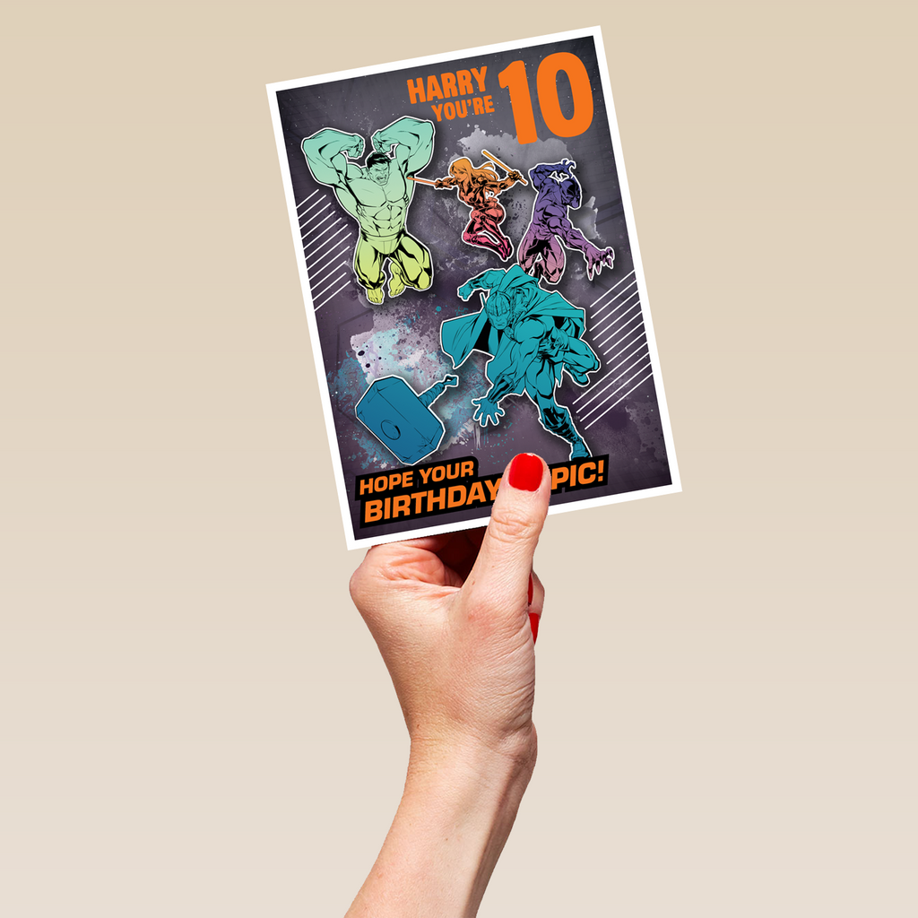 Show them you care with a personalised MARVEL Avengers Age 10th Birthday Card from Hallmark. View more details