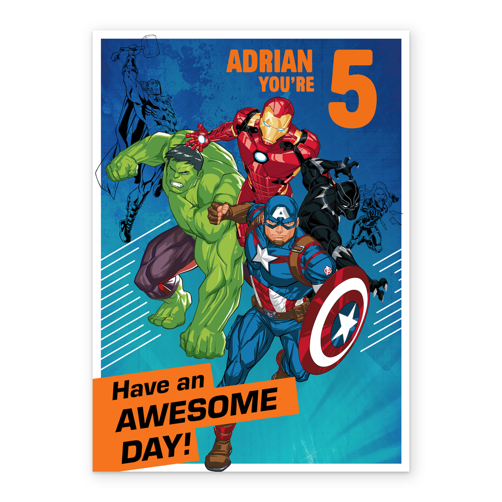 Personalised MARVEL Avengers Age 5th Birthday Card
