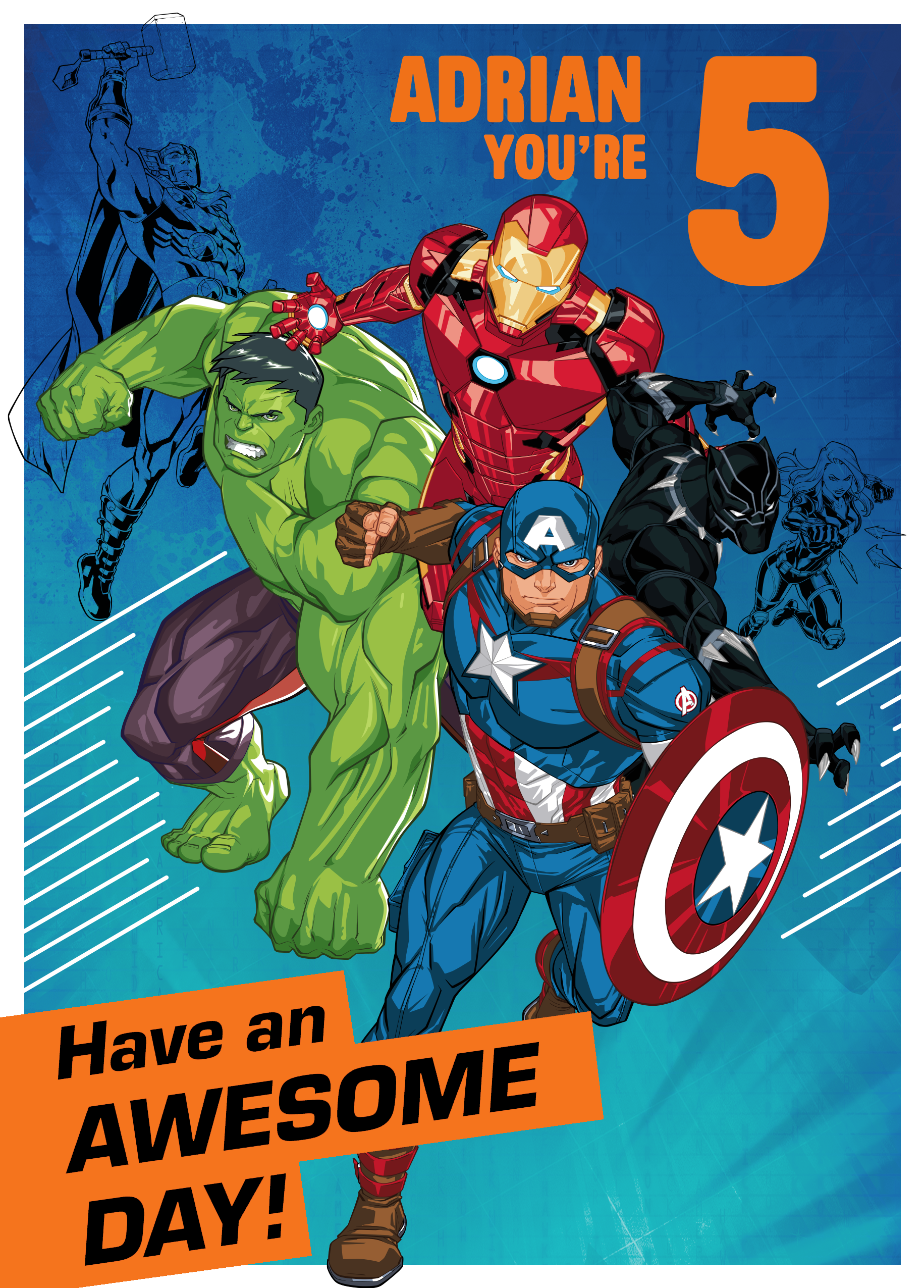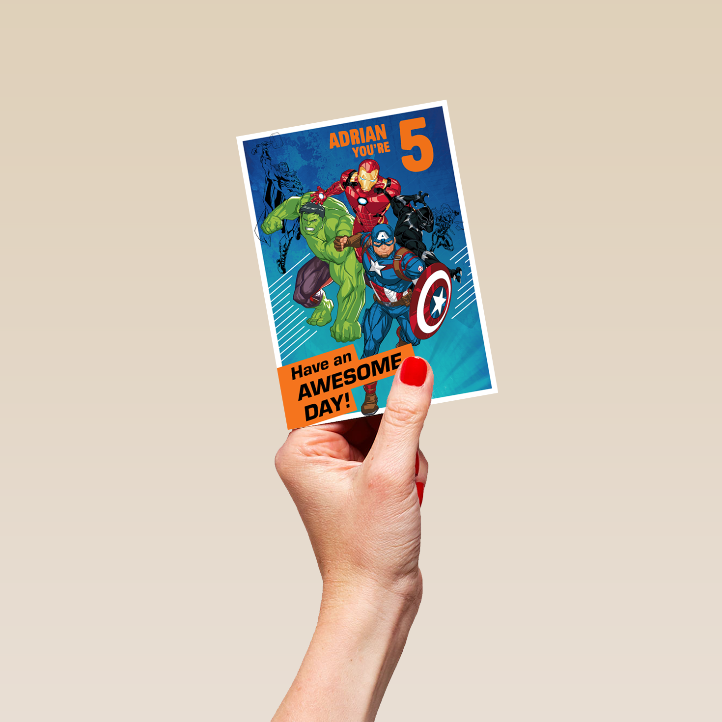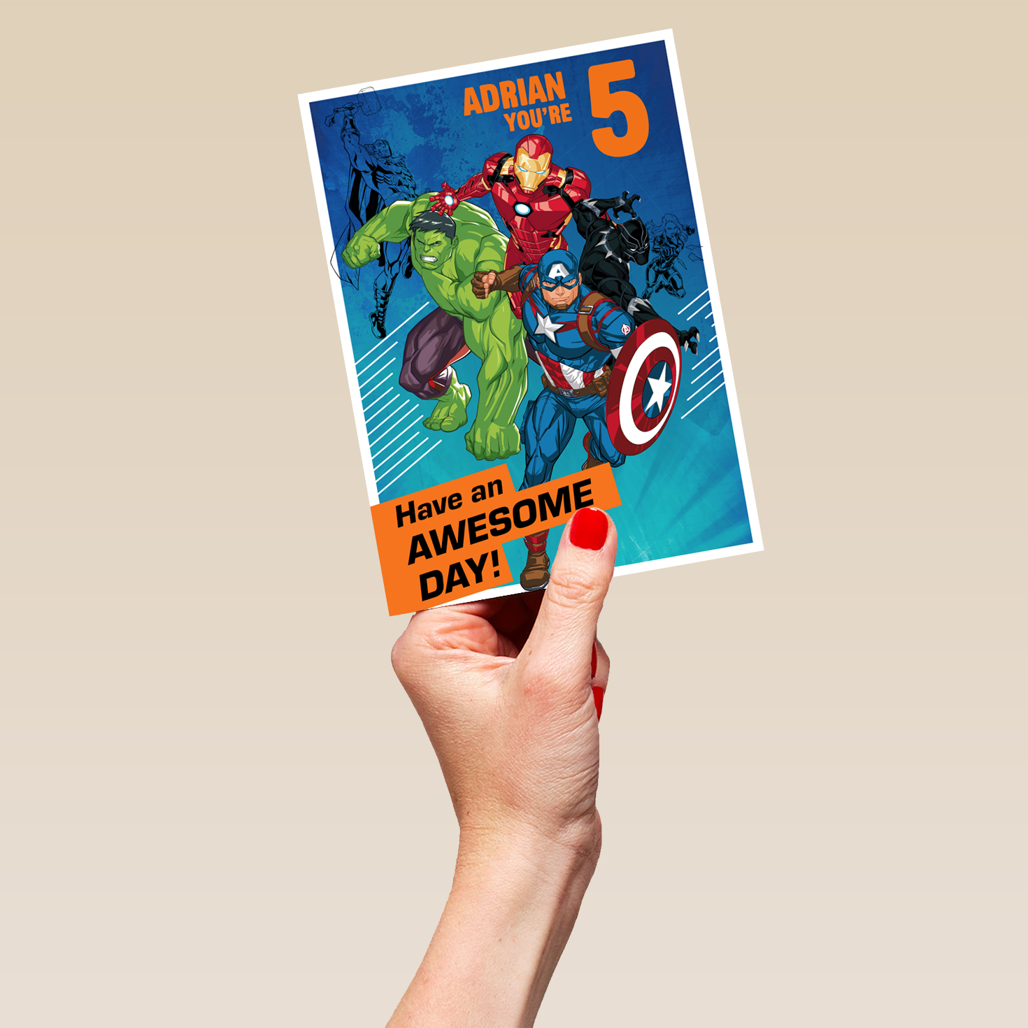 Show them you care with a personalised MARVEL Avengers Age 5th Birthday Card from Hallmark.