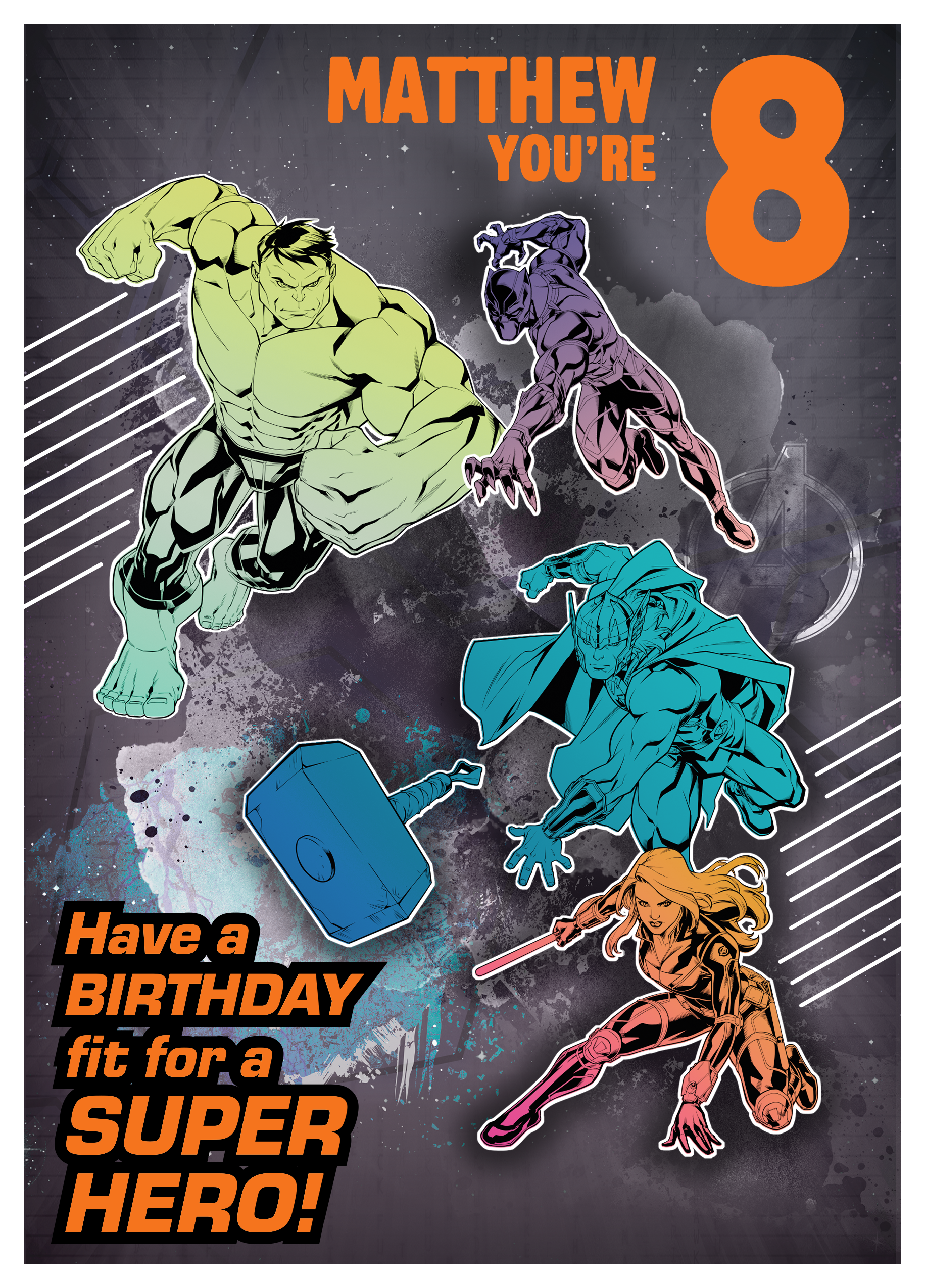 Personalised MARVEL Avengers Age 8th Birthday Card