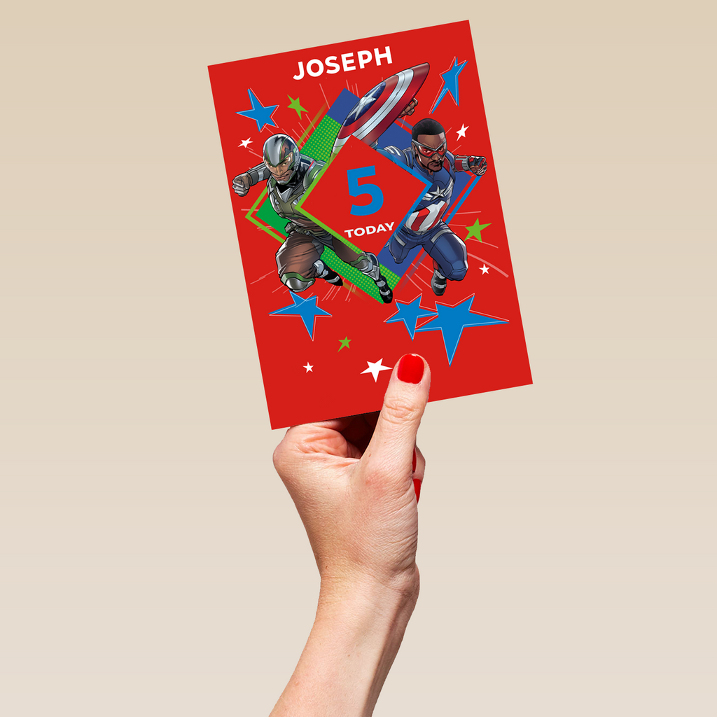 Personalised MARVEL Captain America & Falcon Birthday Card