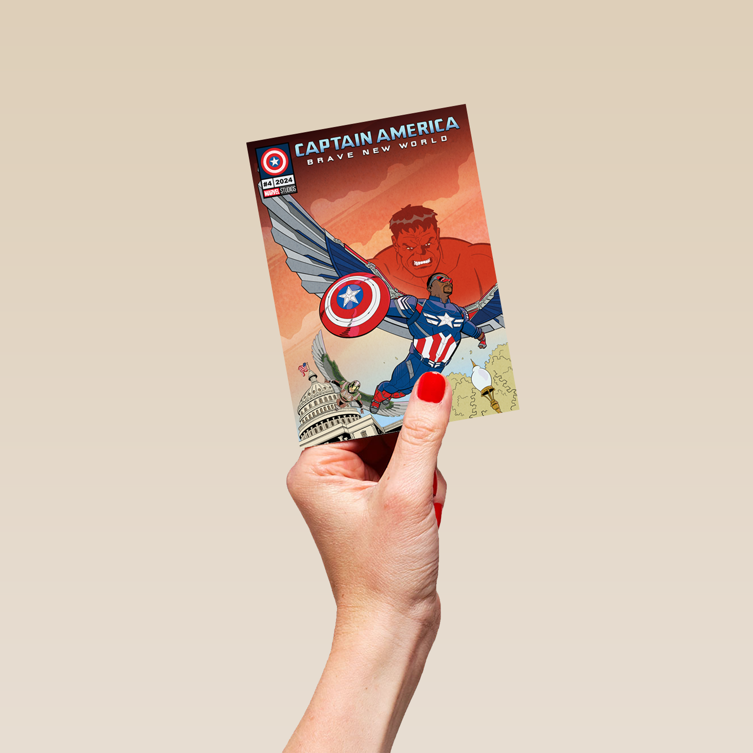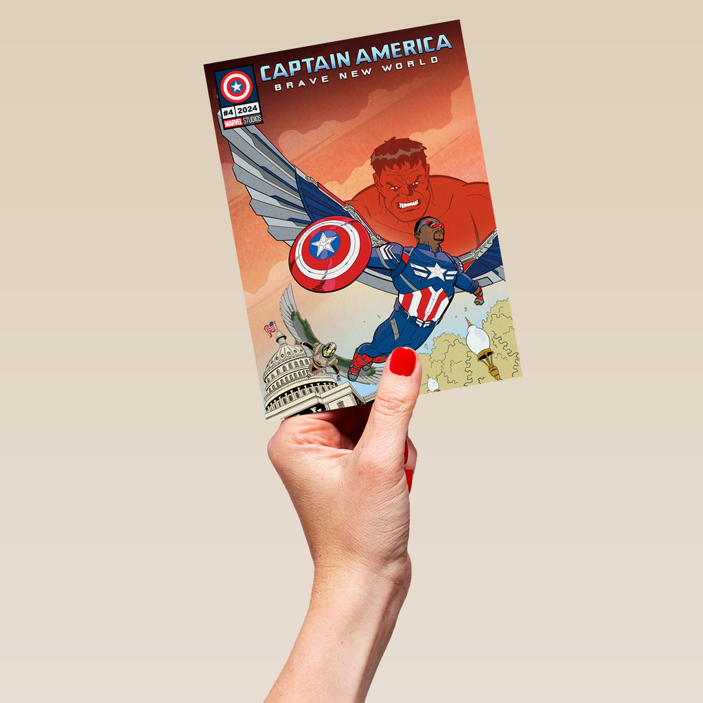 Printed on premium-quality board, this card features the Red Hulk and Sam Wilson's Captain America from MARVEL's Captain America: Brave New World, and comes complete with a co-ordinating white envelope.