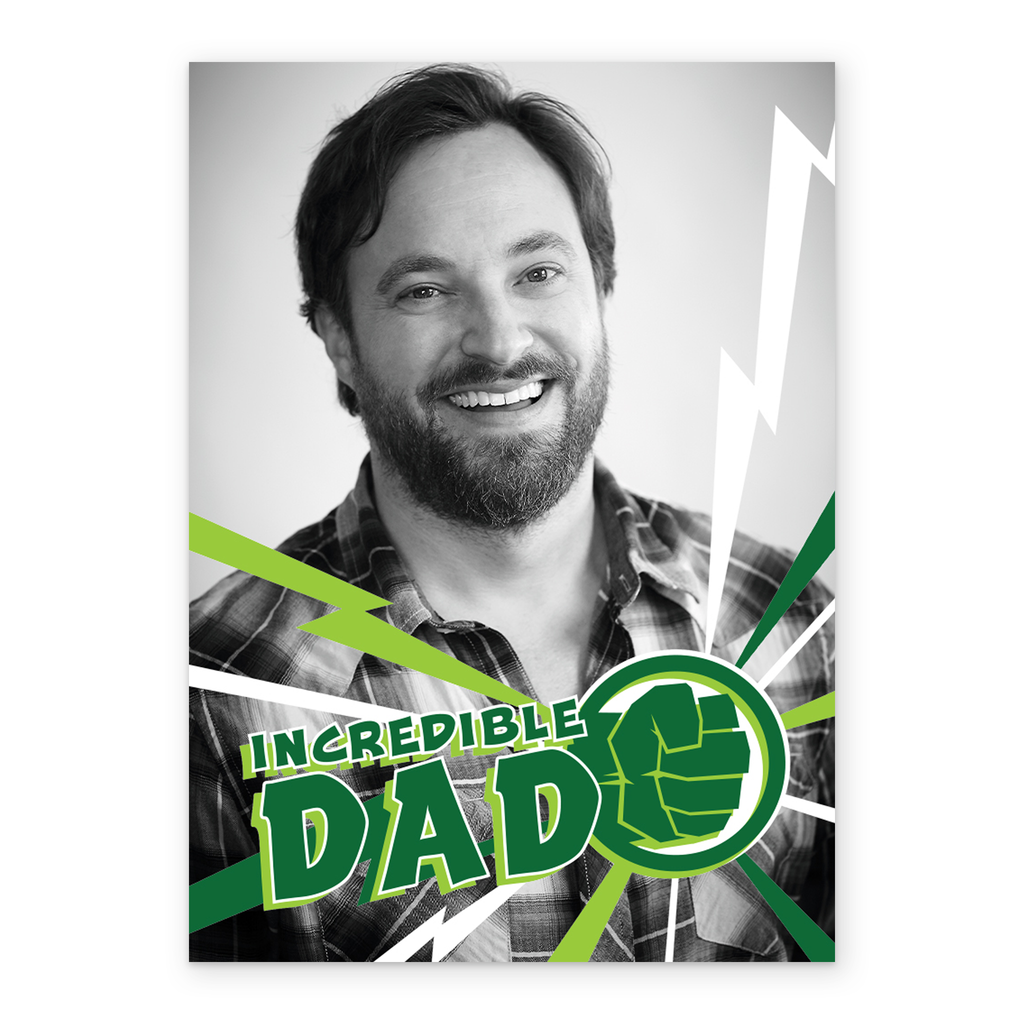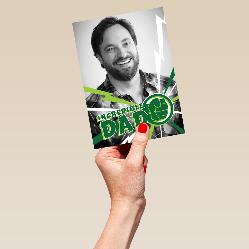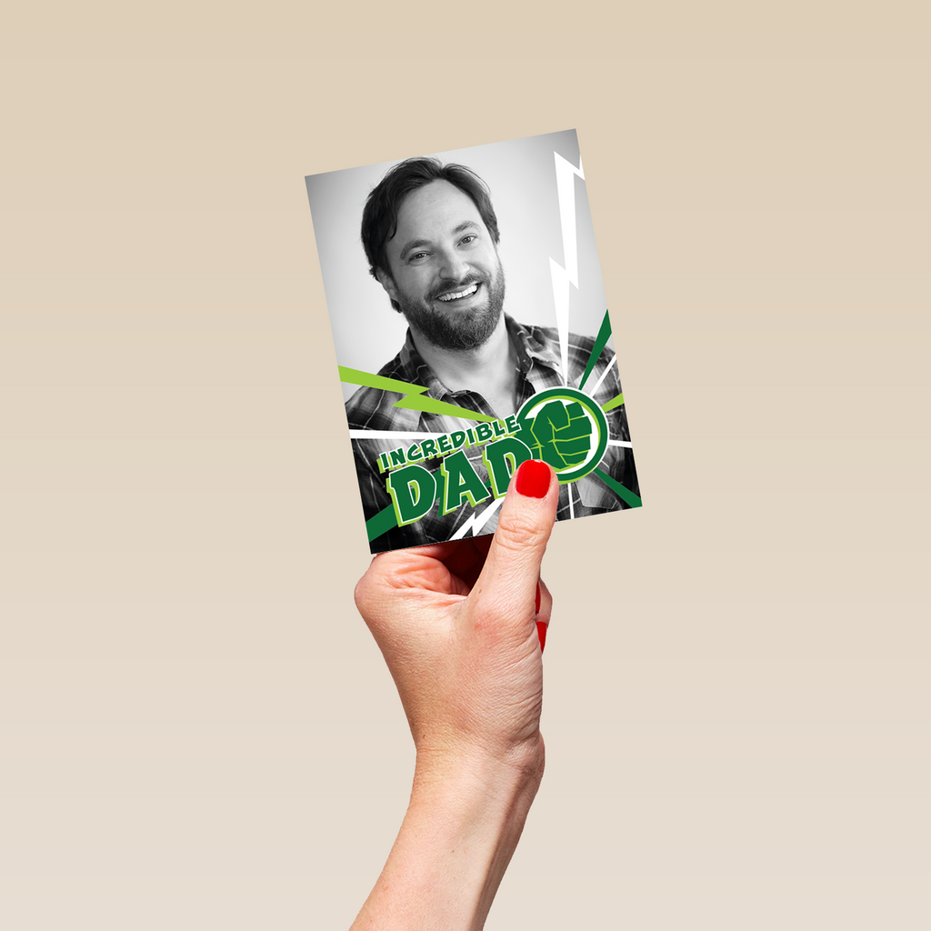 Show them you care with a personalised MARVEL Avengers photo father's day card for dad from Hallmark. Our Father's Day cards are printed on premium quality, FSC®-certified card & delivered nationwide.This card is available as standard 12cm by 16.7cm and large 15.5cm by 21.6cm.