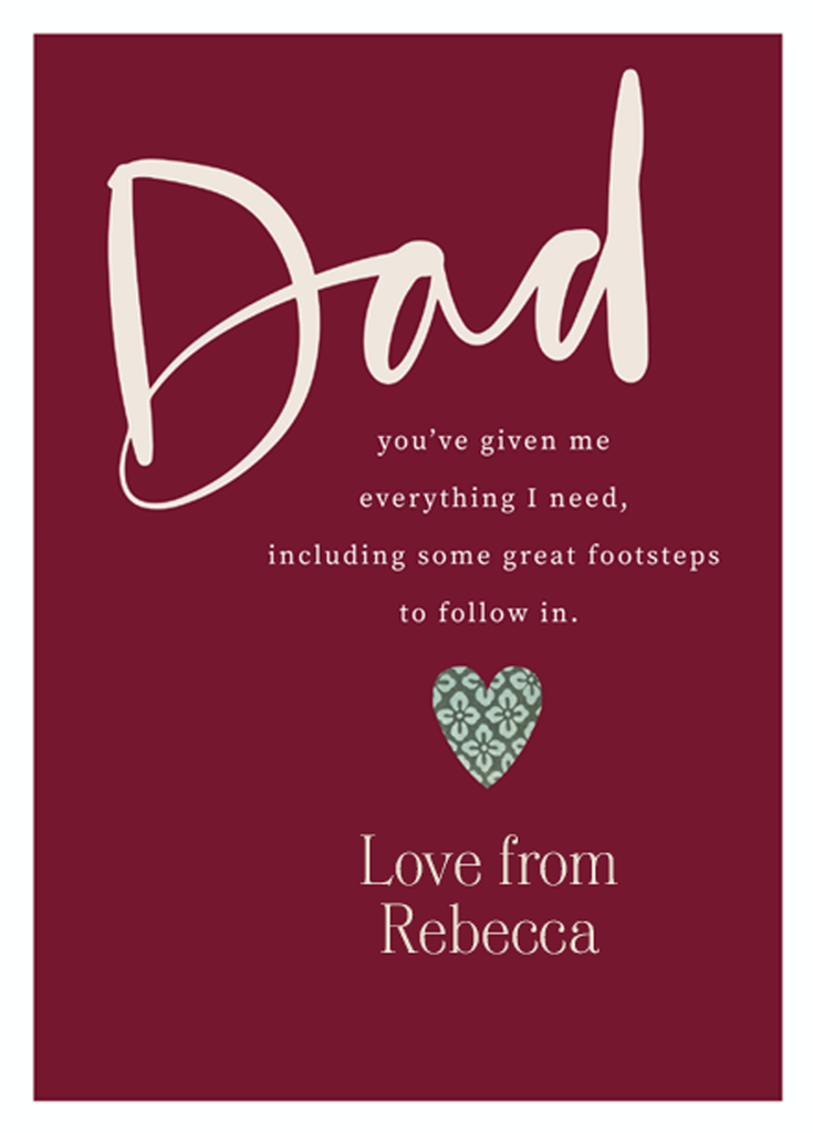 Whether you’re celebrating the best dad, super dad or a living legend, our range of personalised cards are the perfect opportunity to let the father figure in your life know exactly how loved he is. Send thanks to the man that stepped up, show your gratitude to the dad that never let you down or a Papa who’s been perfect through everything.